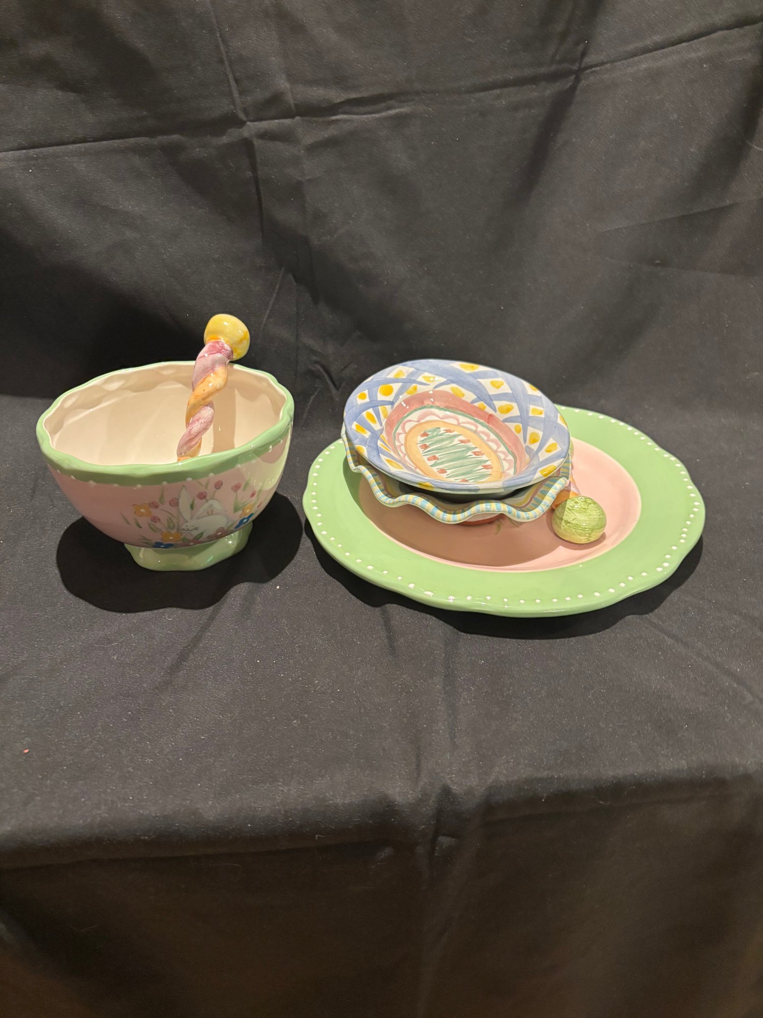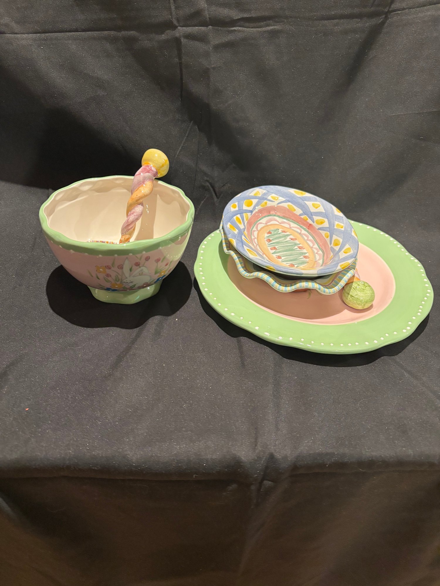 1 mesa home production bowl and plate with bunny decoration 8” and 4”