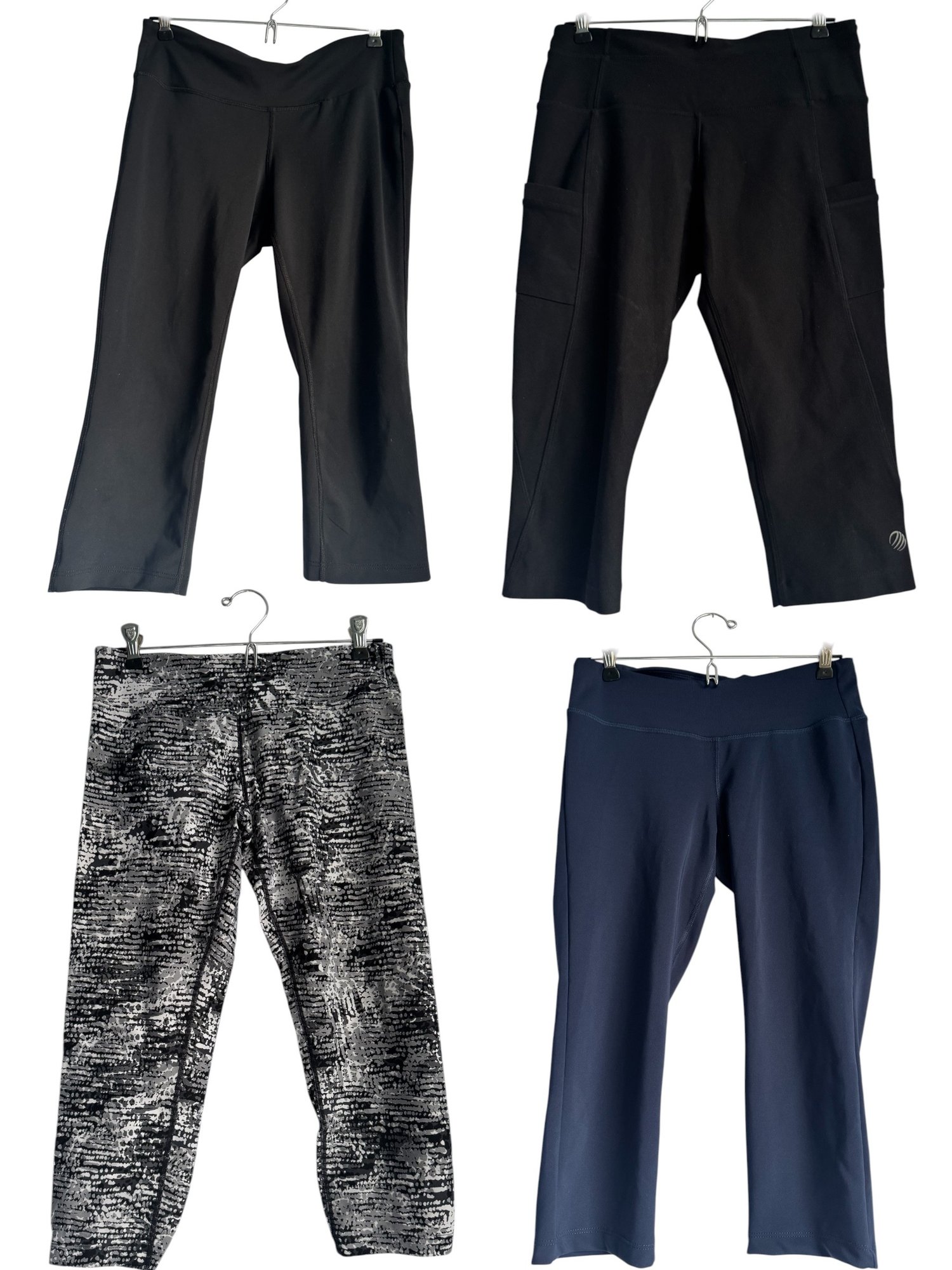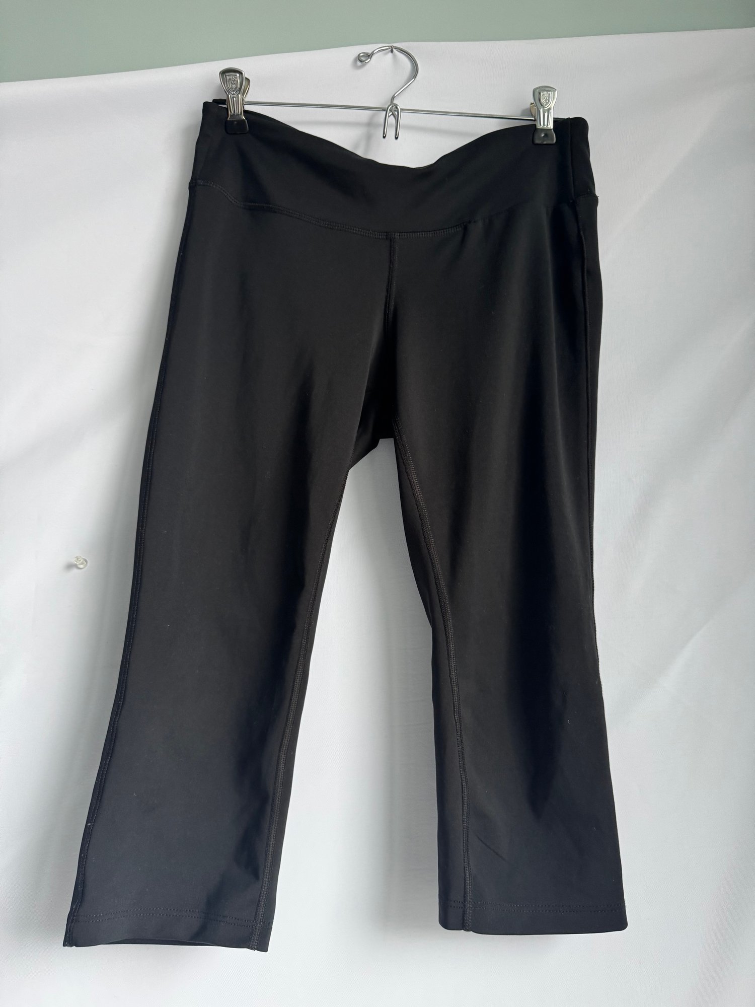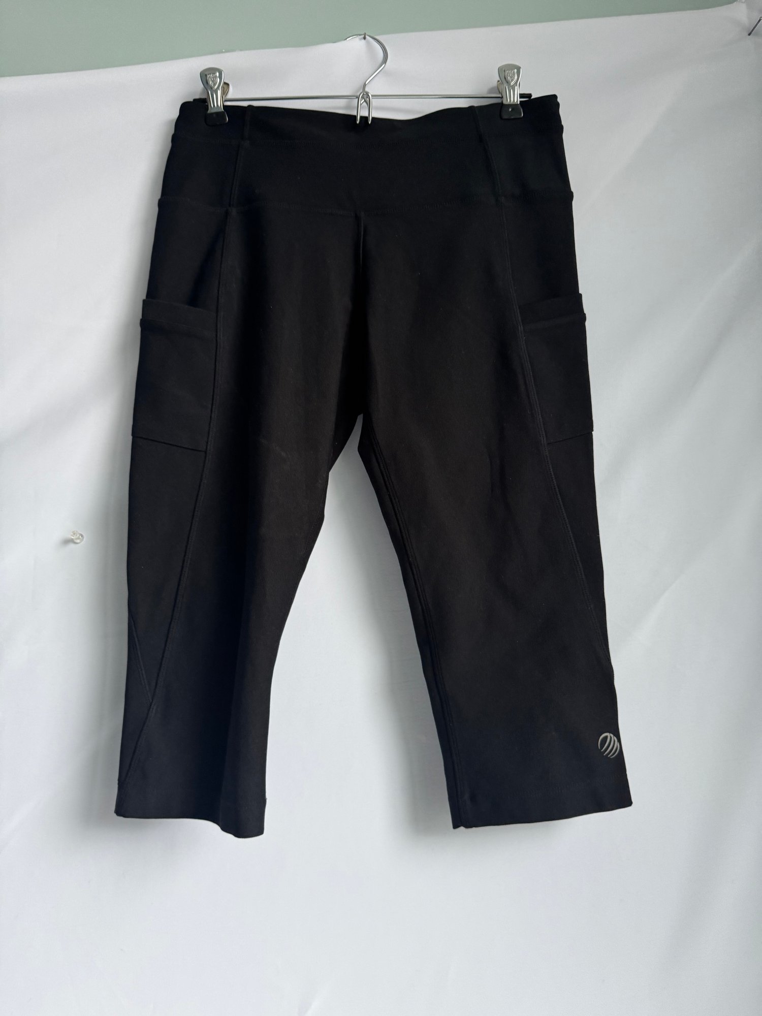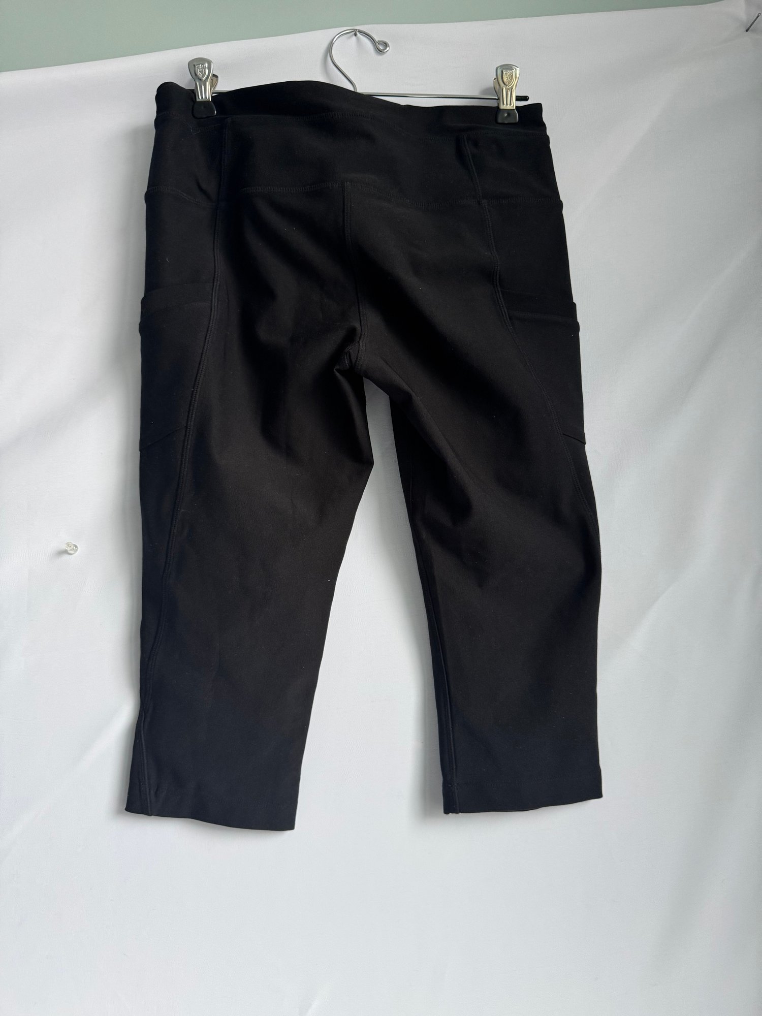 Style: Black, cropped athletic leggings with pockets