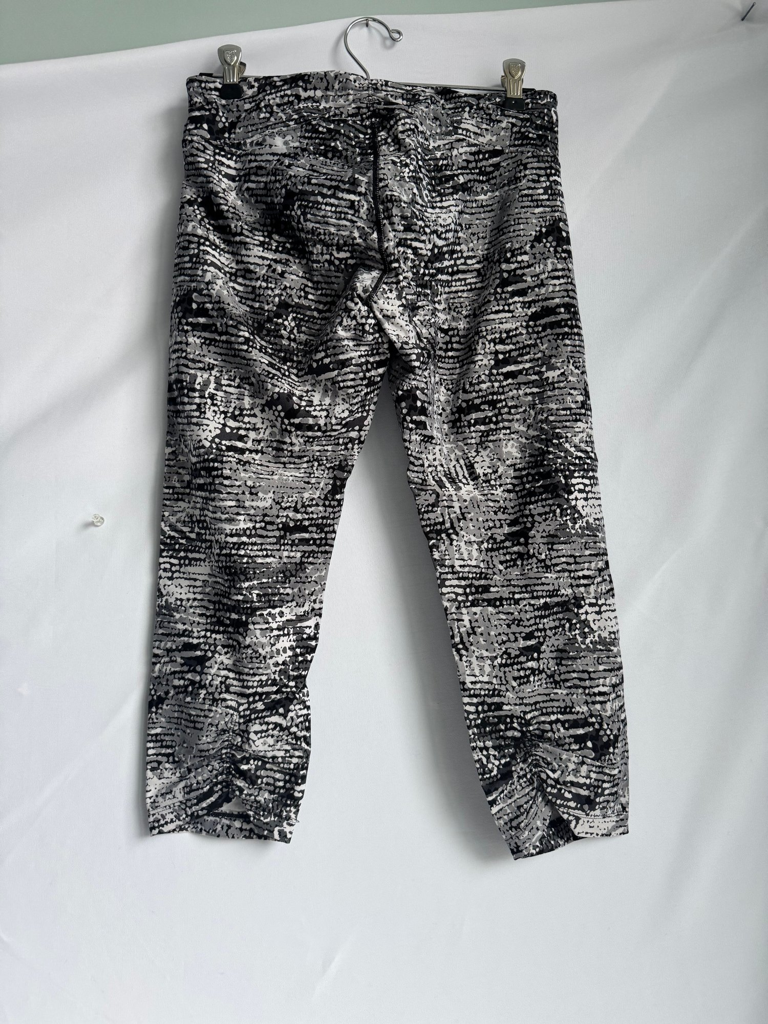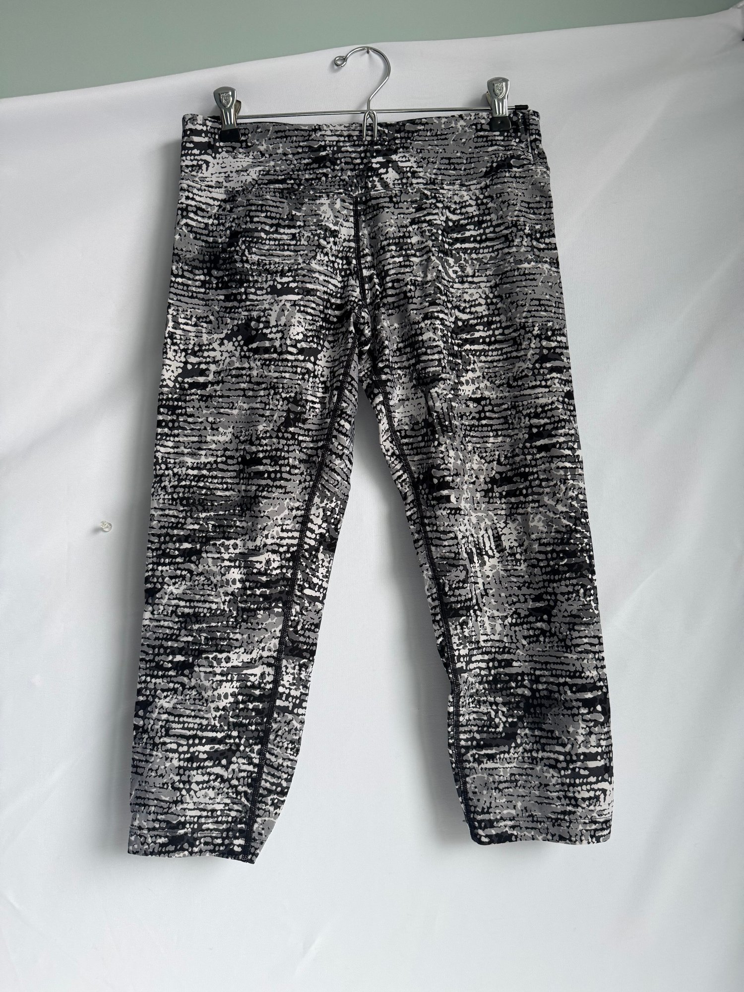 Style: B&W pattern, cropped athletic leggings