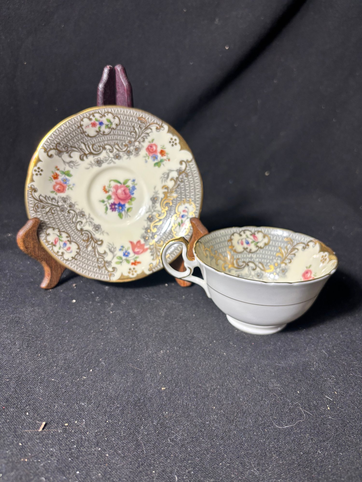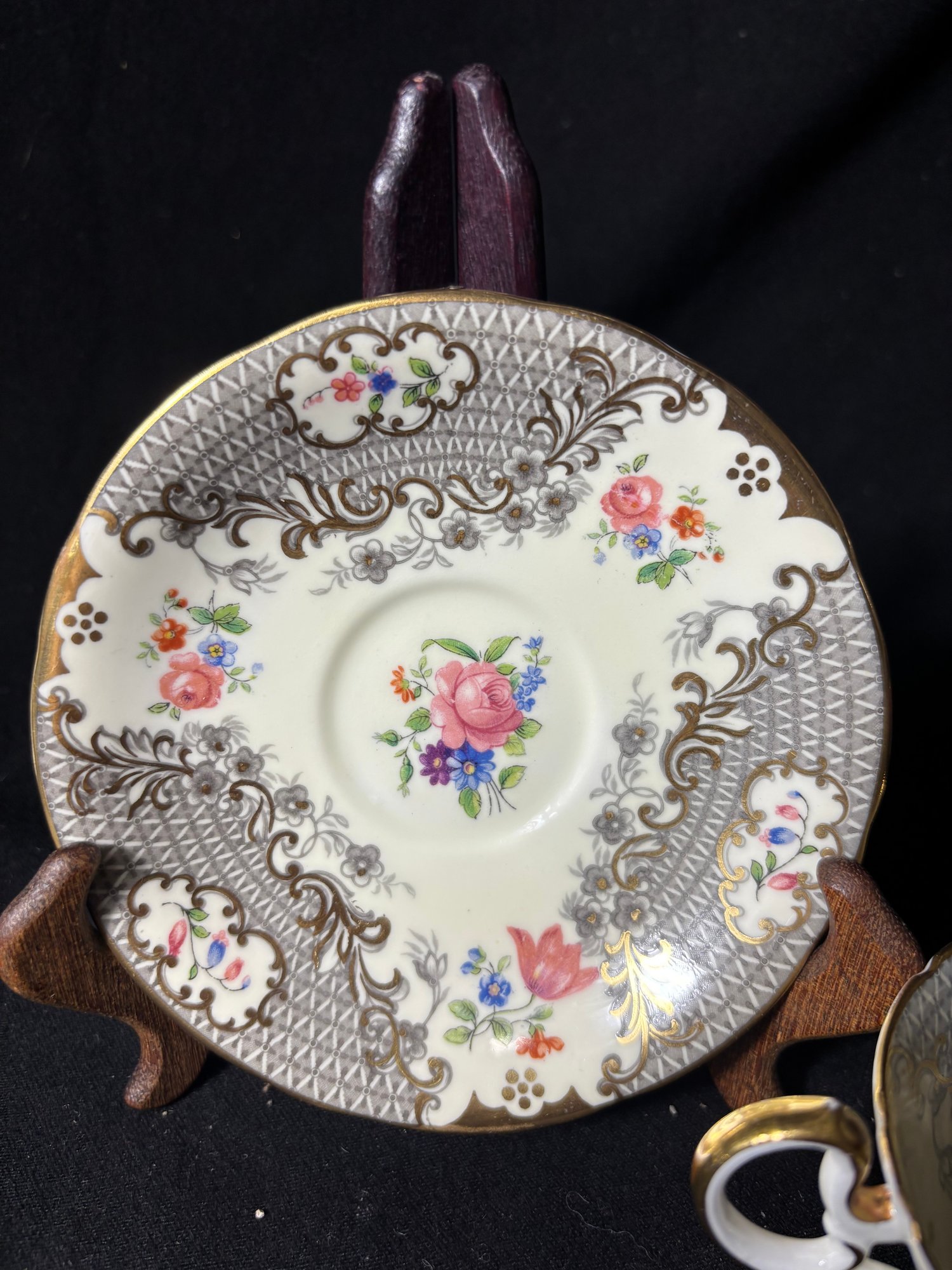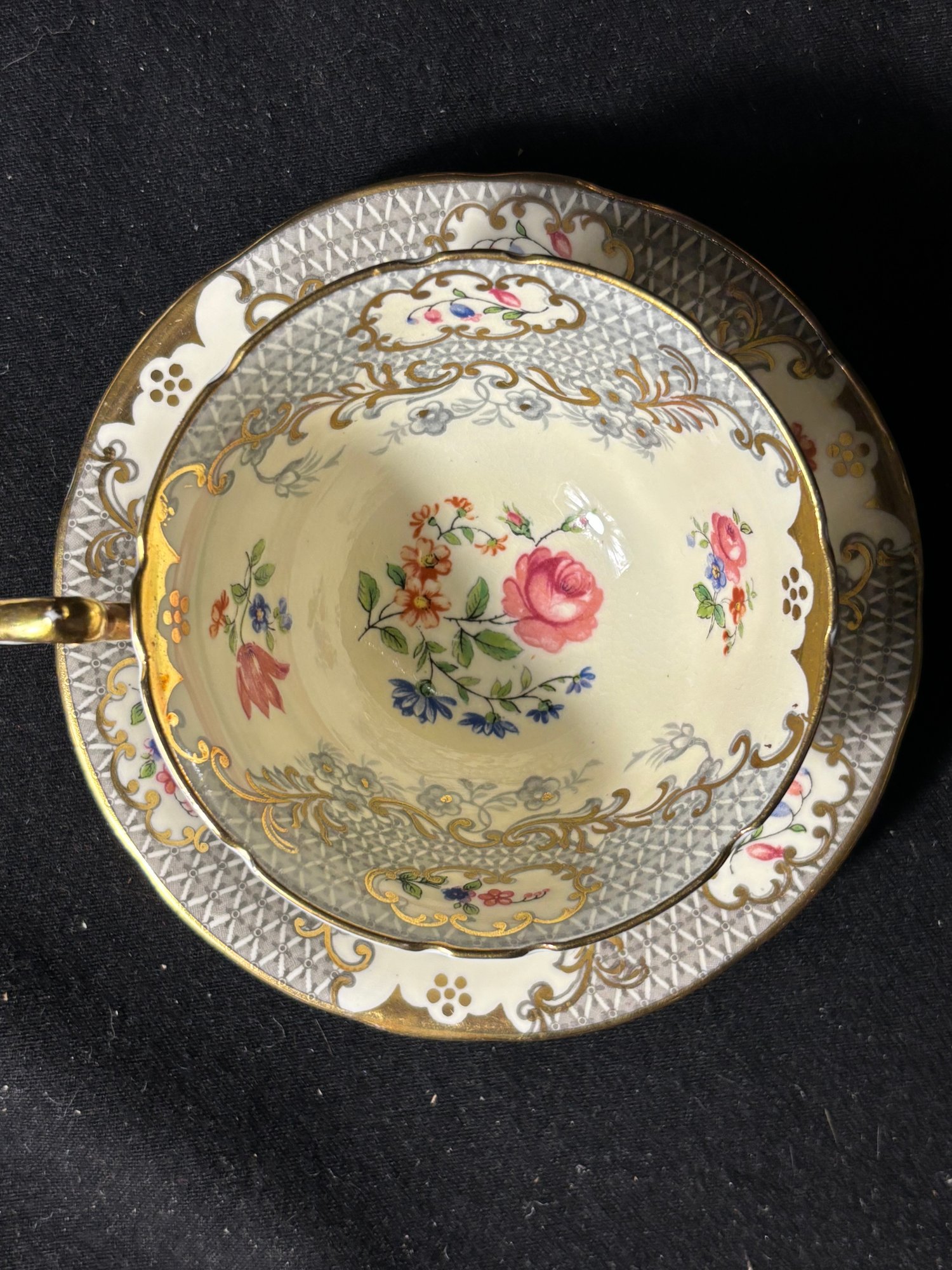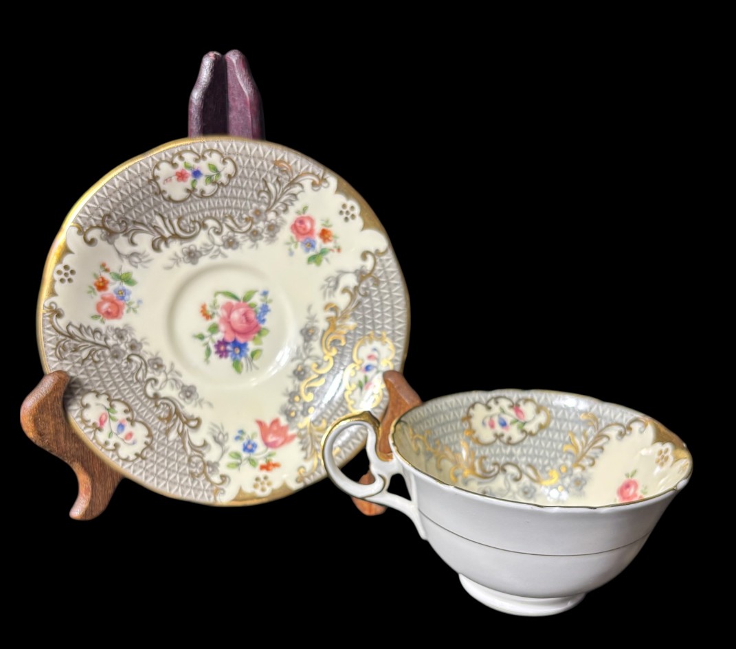 Aynsley Ornate Gilded Grey Tea Cup And Saucer