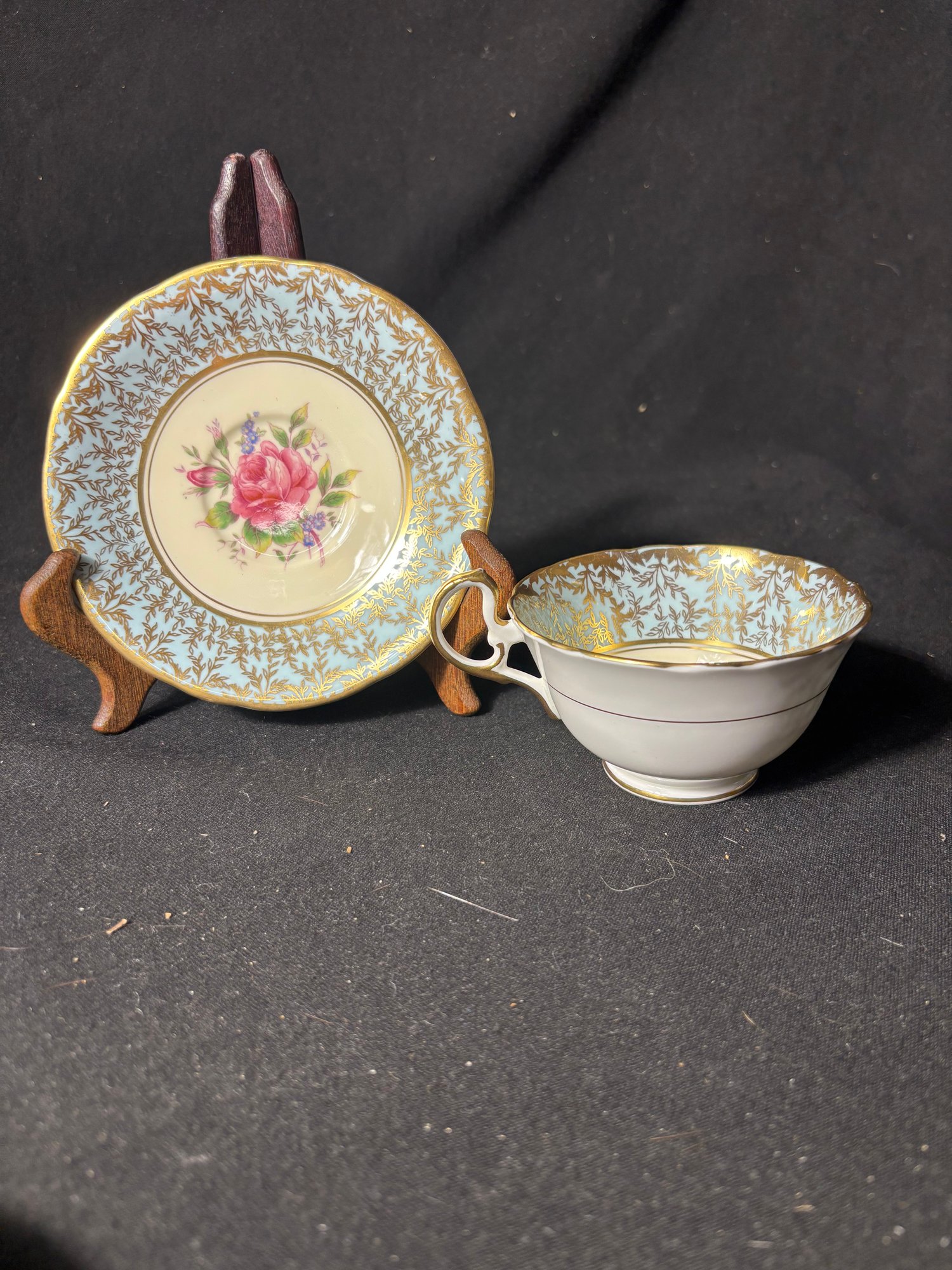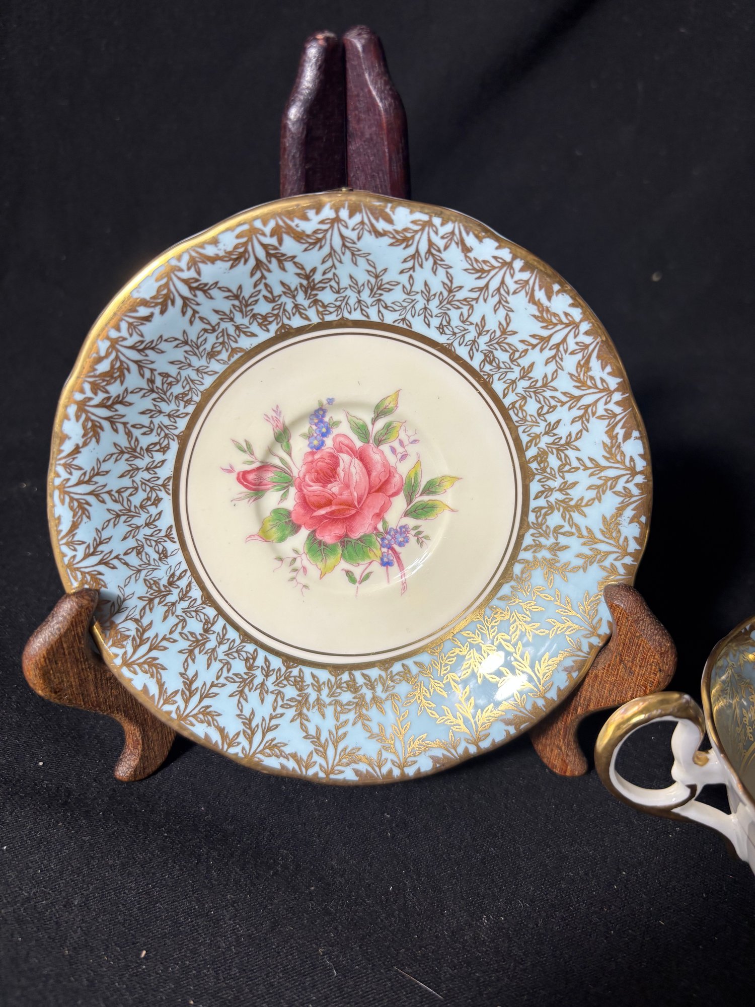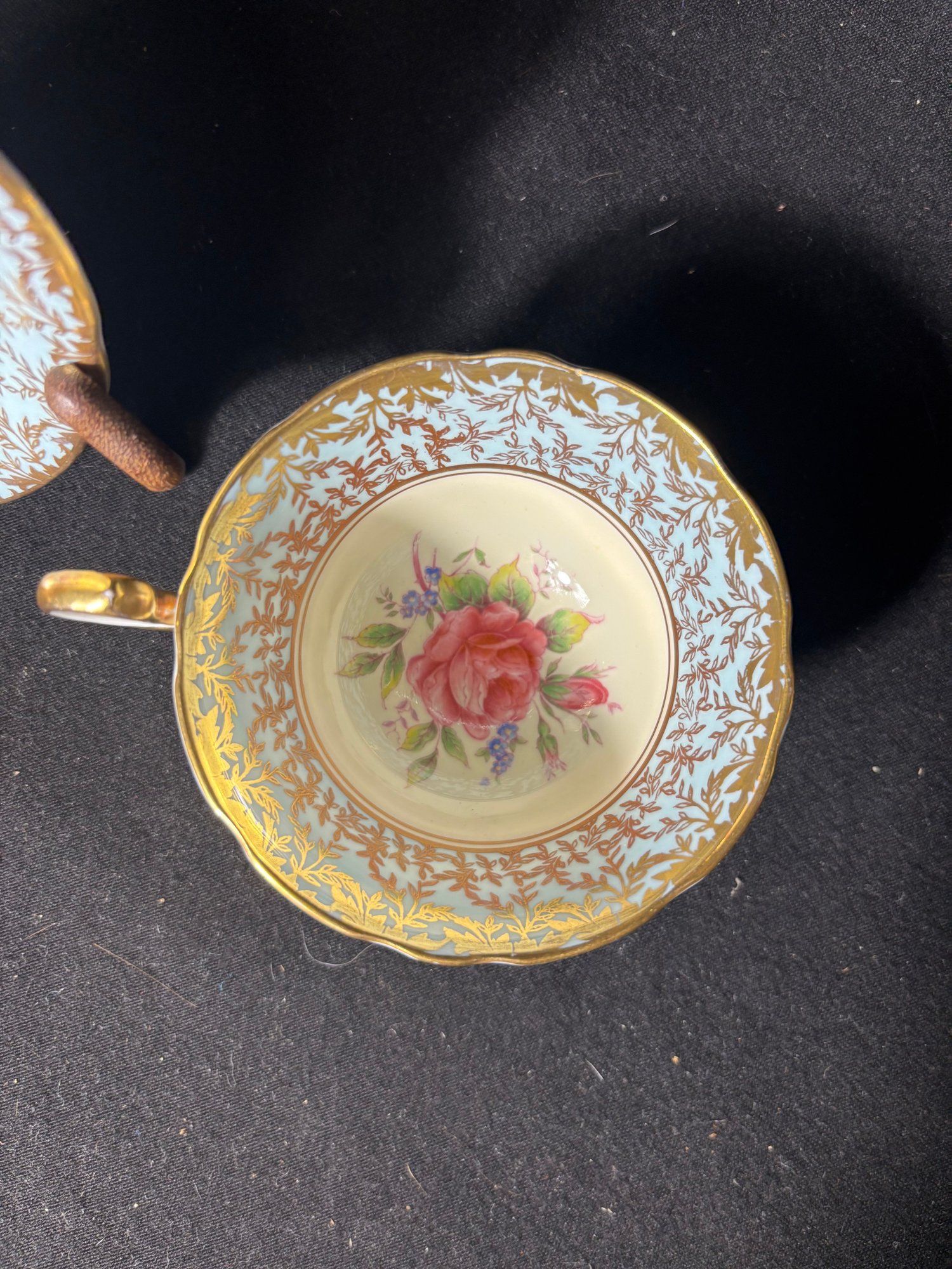 Aynsley Ornate Gilded Light Blue Tea Cup And Saucer