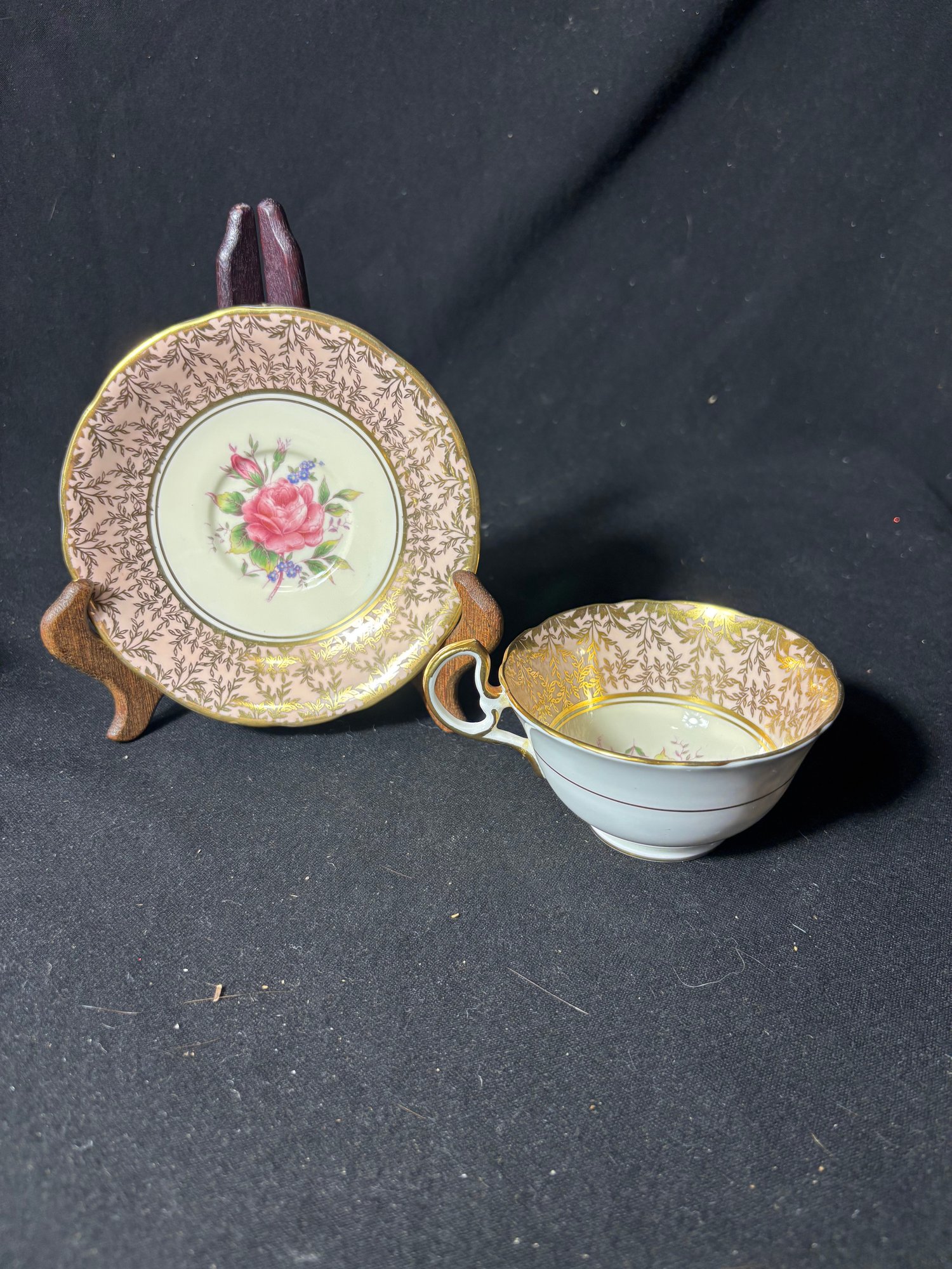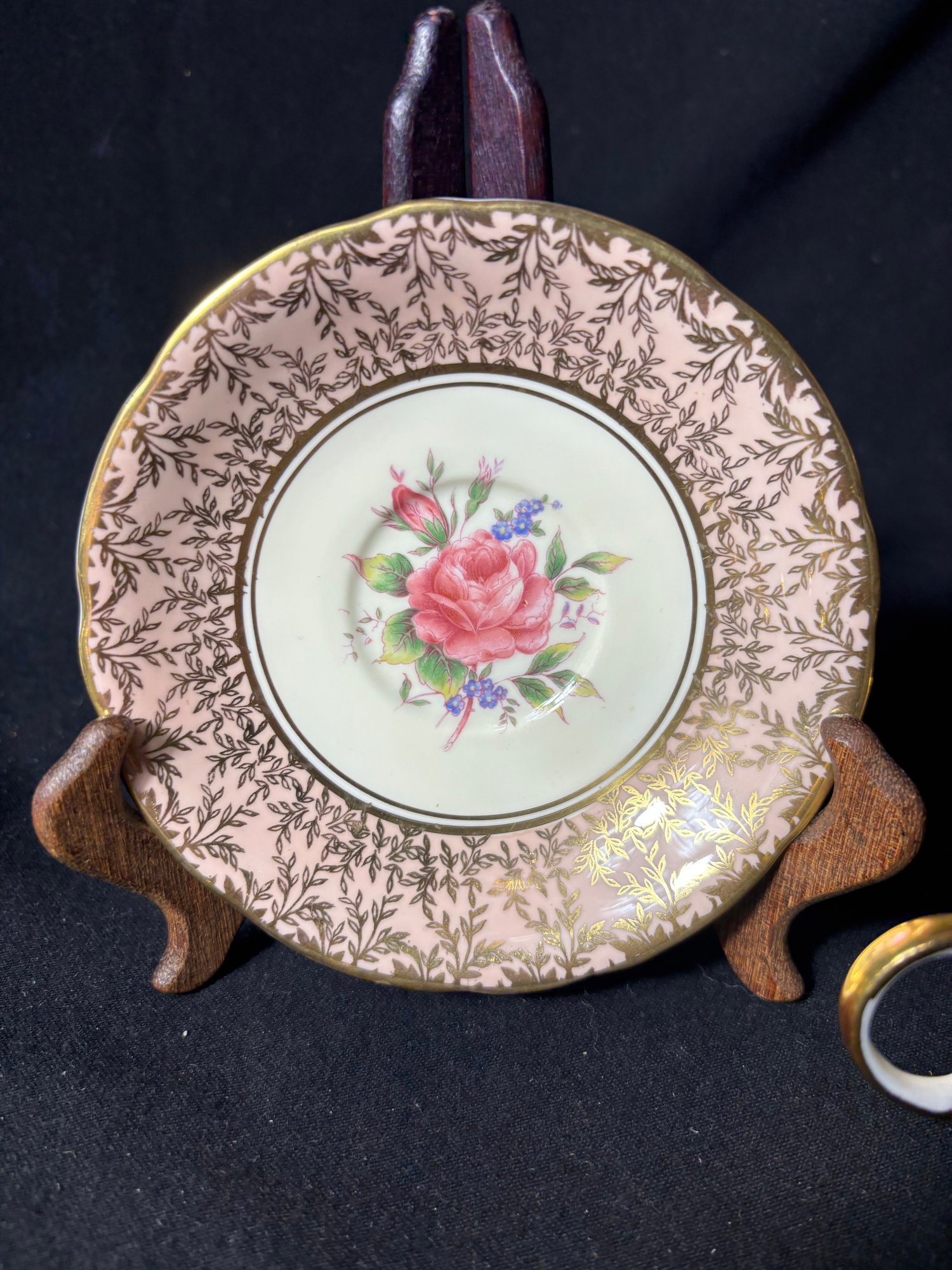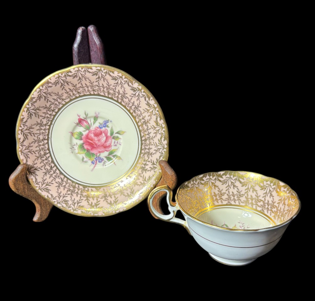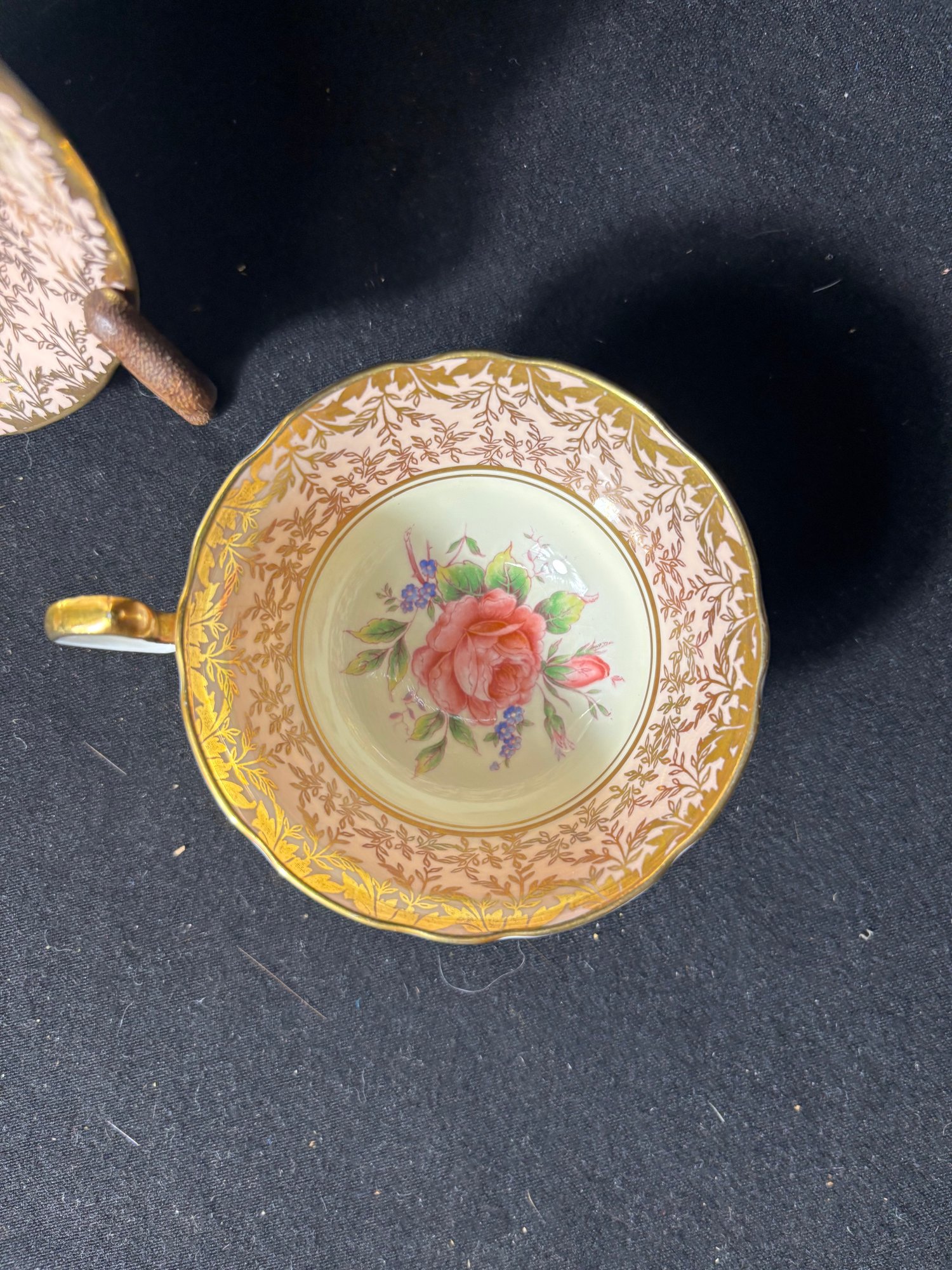 Aynsley Ornate Gilded Pink Tea Cup And Saucer