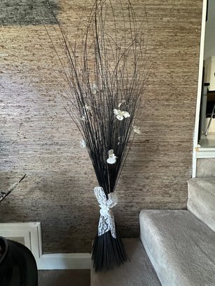 Back Stick Decor With Flowers And Lace Bow (SL)