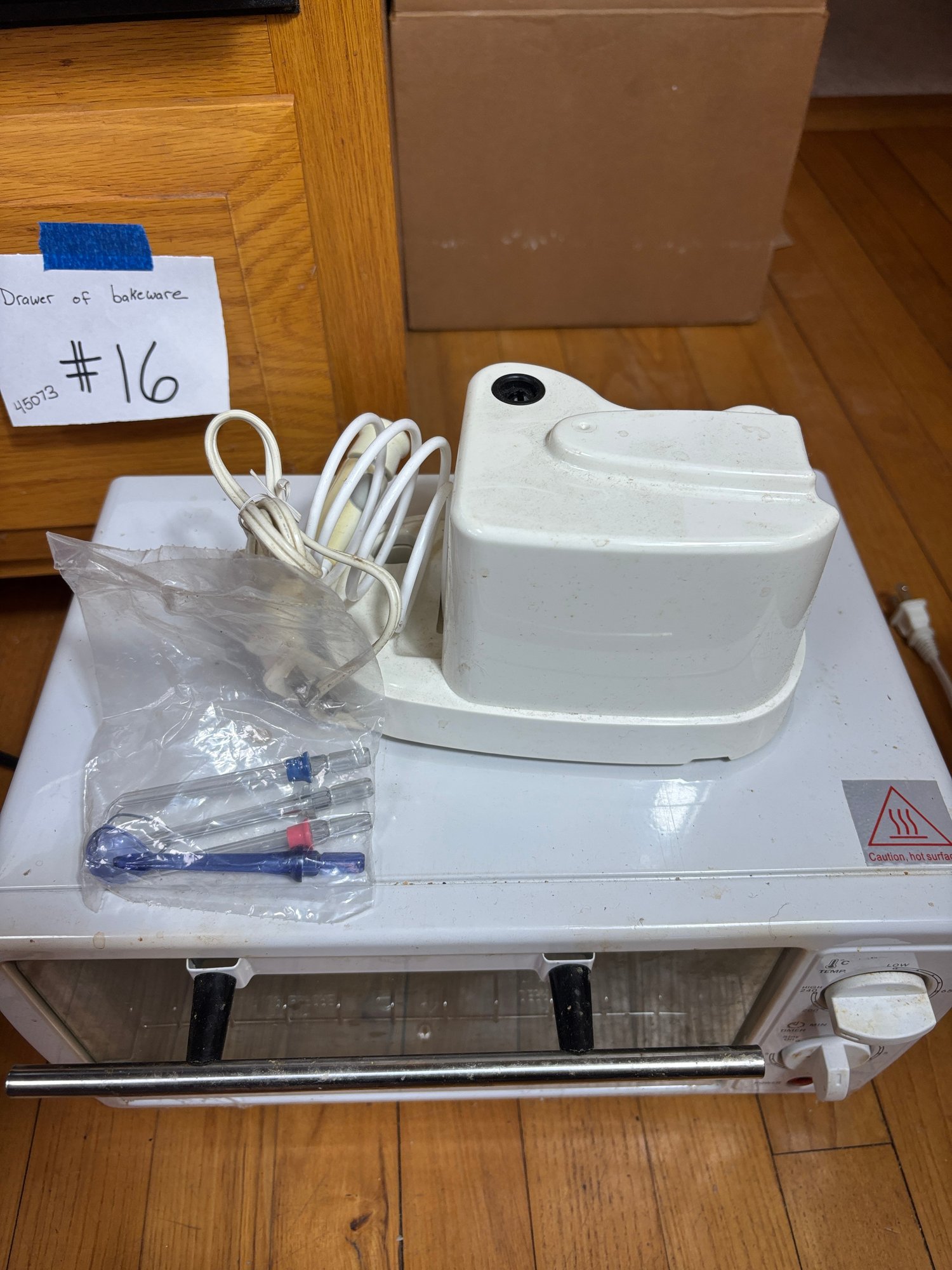 Includes a blender, toaster oven, rice cooker, and water pik.