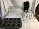 2 round , 2 rectangular cooling racks , muffin tin etc