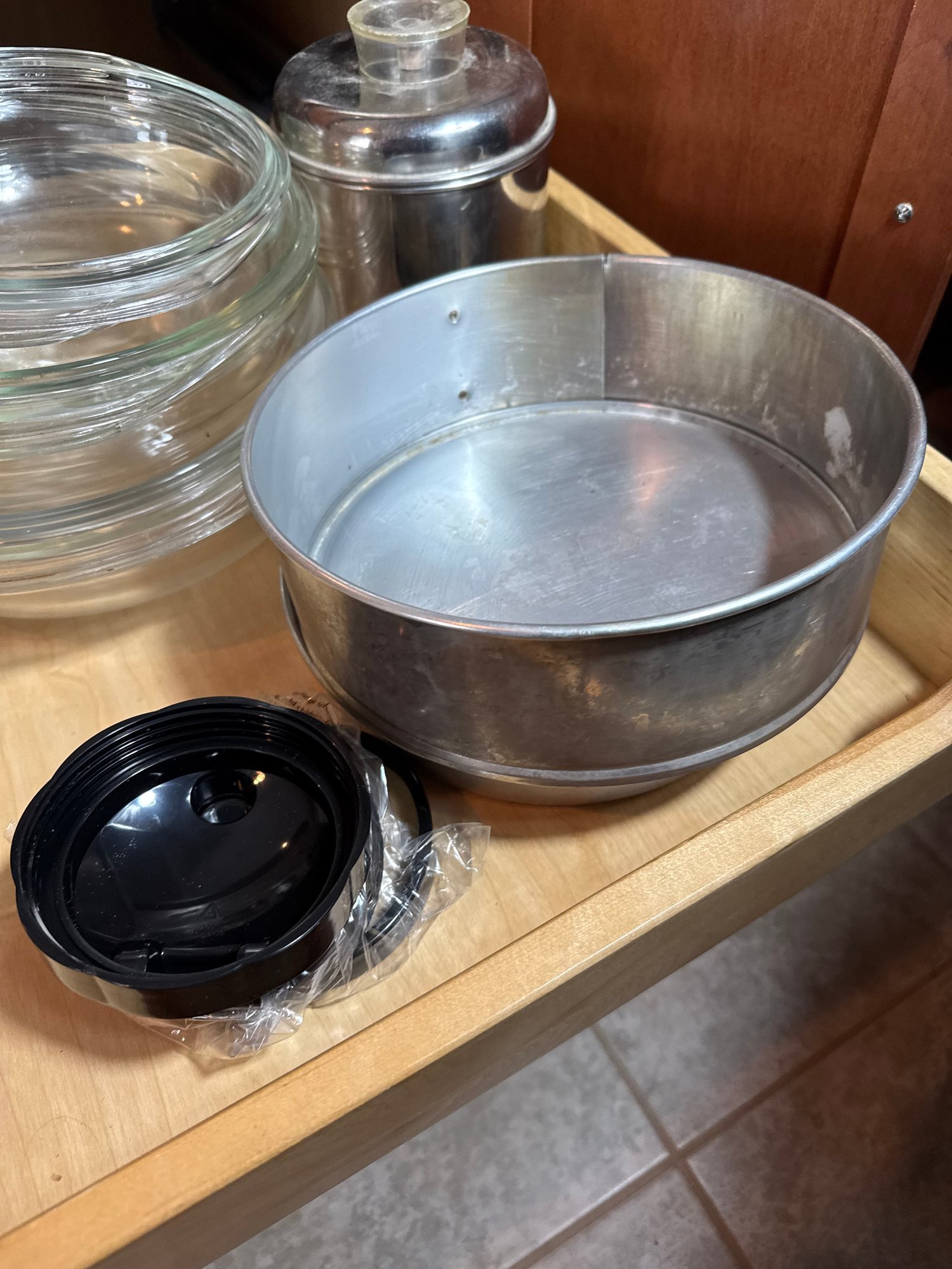 includes two shelves of assorted kitchenware