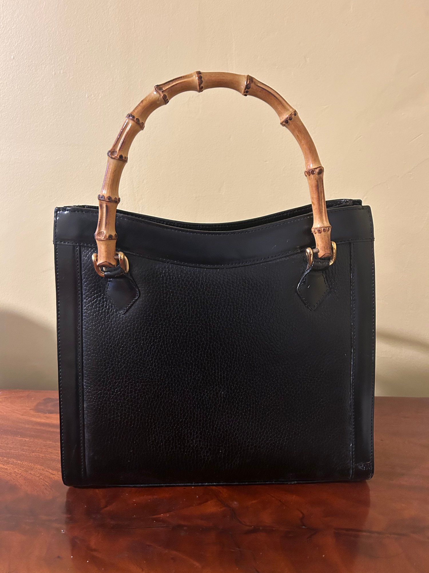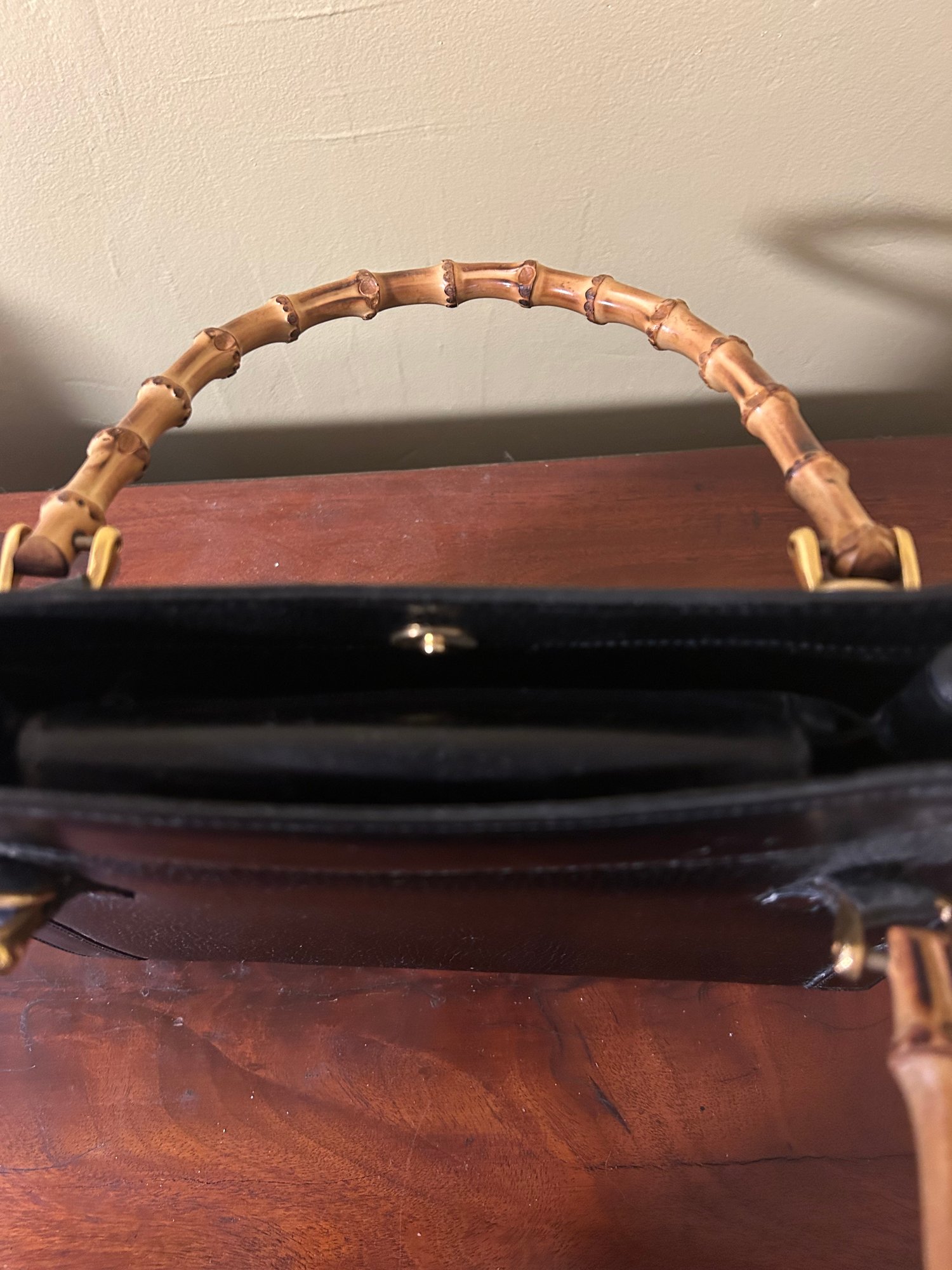 Bamboo Handle Purse - Genuine Leather, Made in Italy