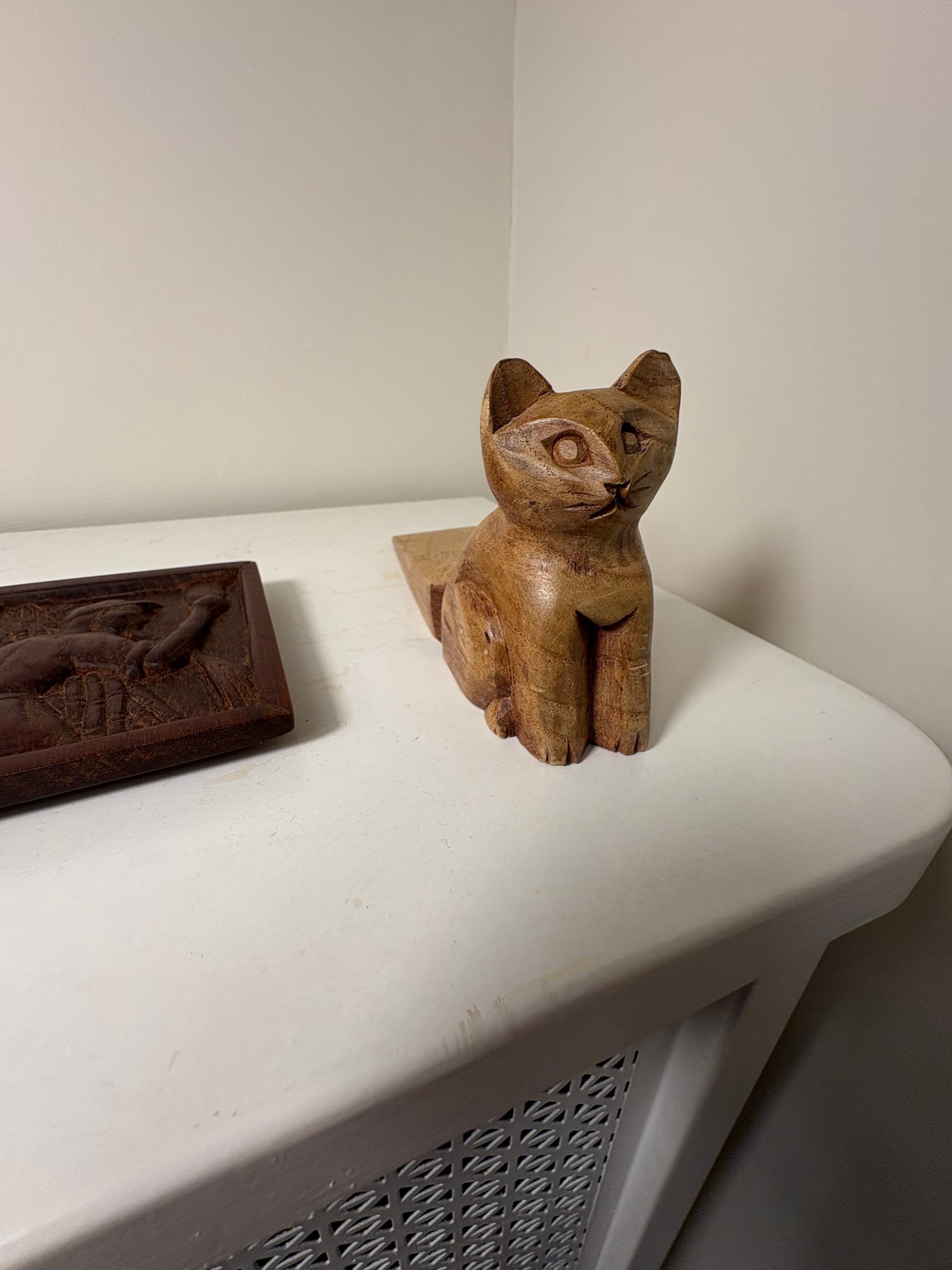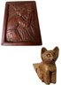 Dimensions approximately Barbados art 3.25 by 4.5. Cat Statue door stopper approximately 7.25 by 3.25