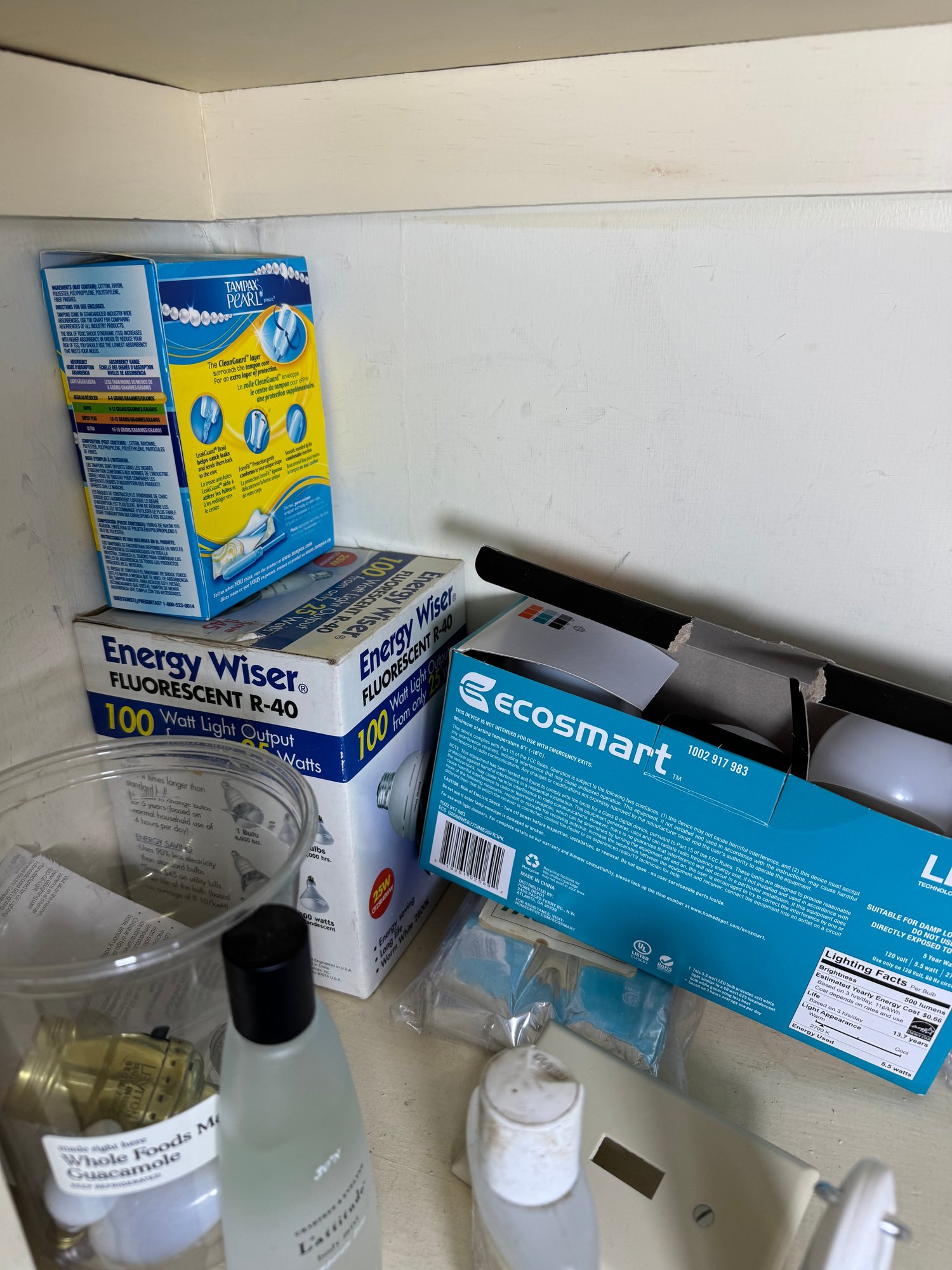 includes the contents of the top two shelves in the upstairs closet hallway
