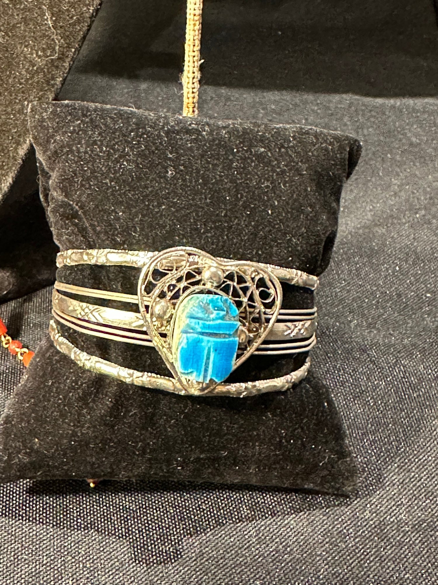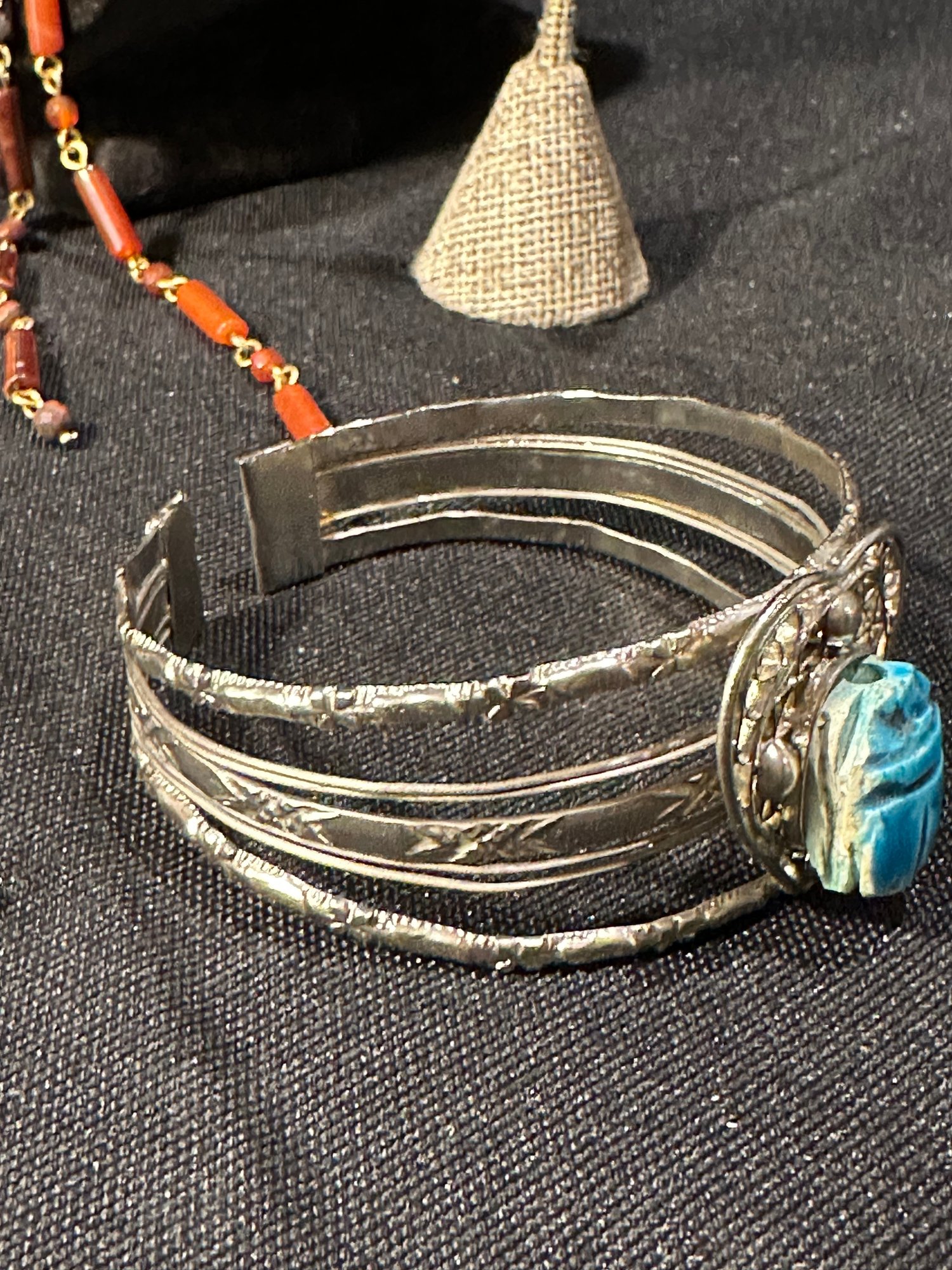 Scarab and metal cuff bracelet