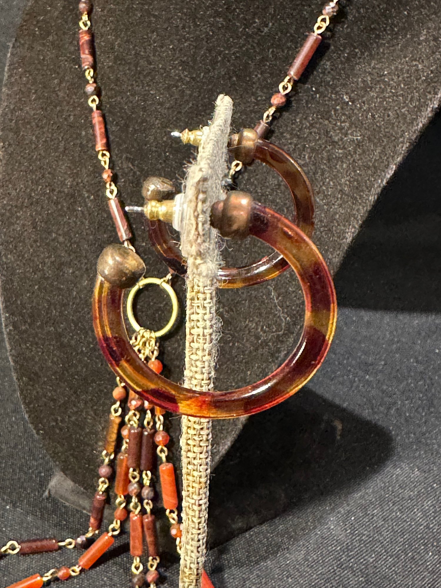Bakelite reminiscent earrings with brass/bronze accents