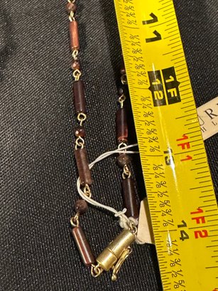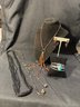 colored crystals/glass necklace with metal links marked LC
