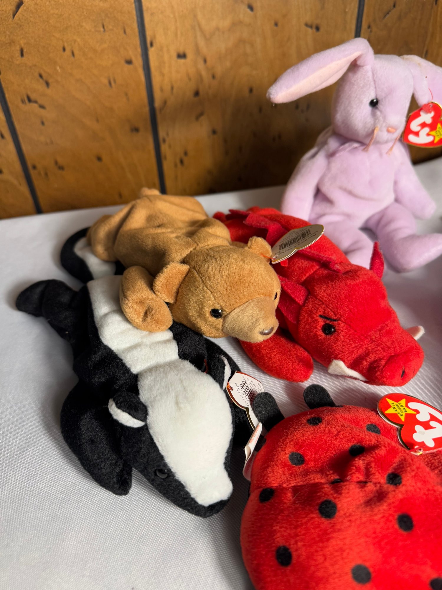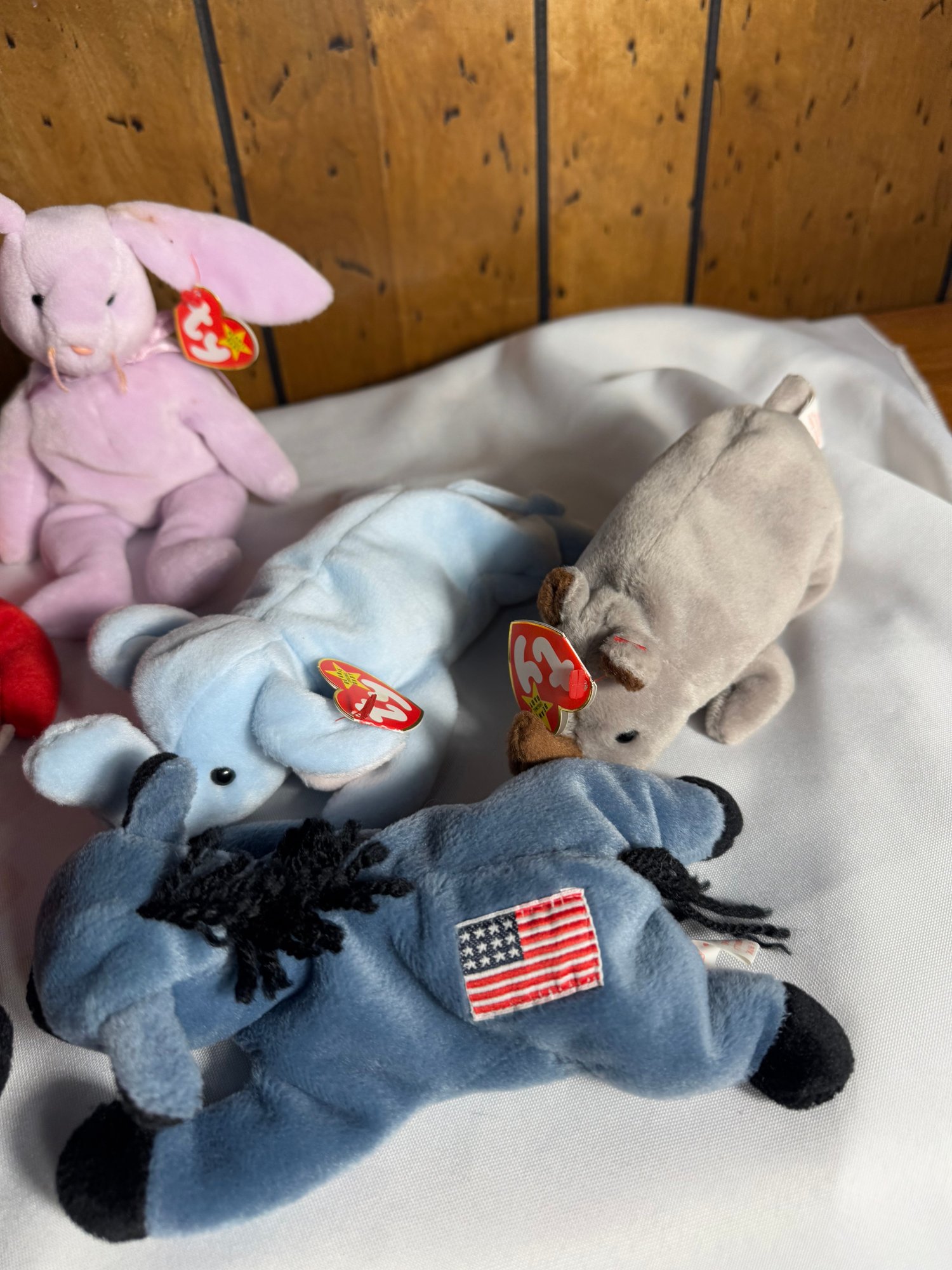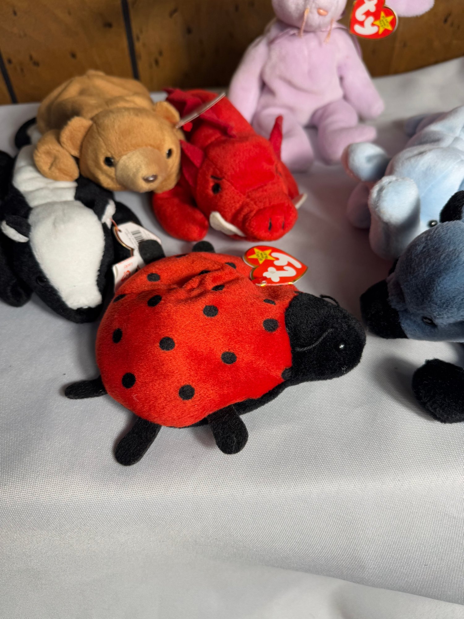 includes eight assorted beanie baby’s