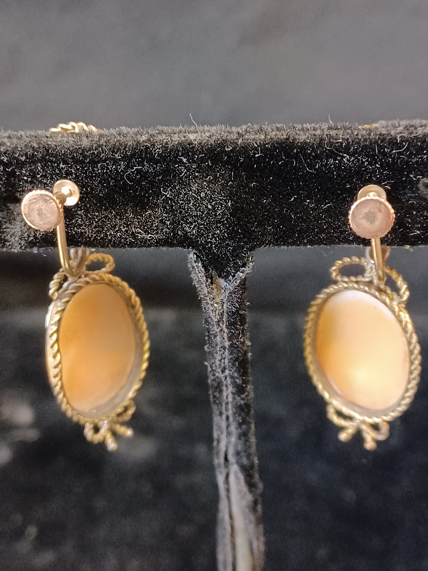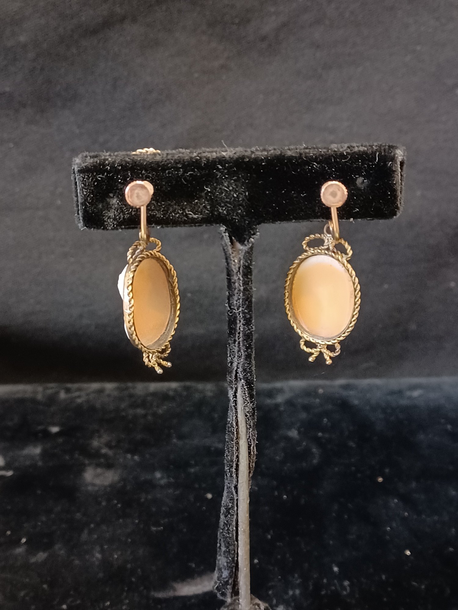 Cameos are set in yellow, gold fill; 19c pieces