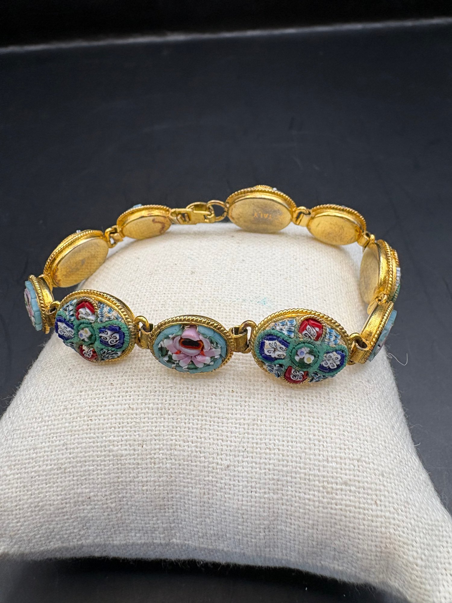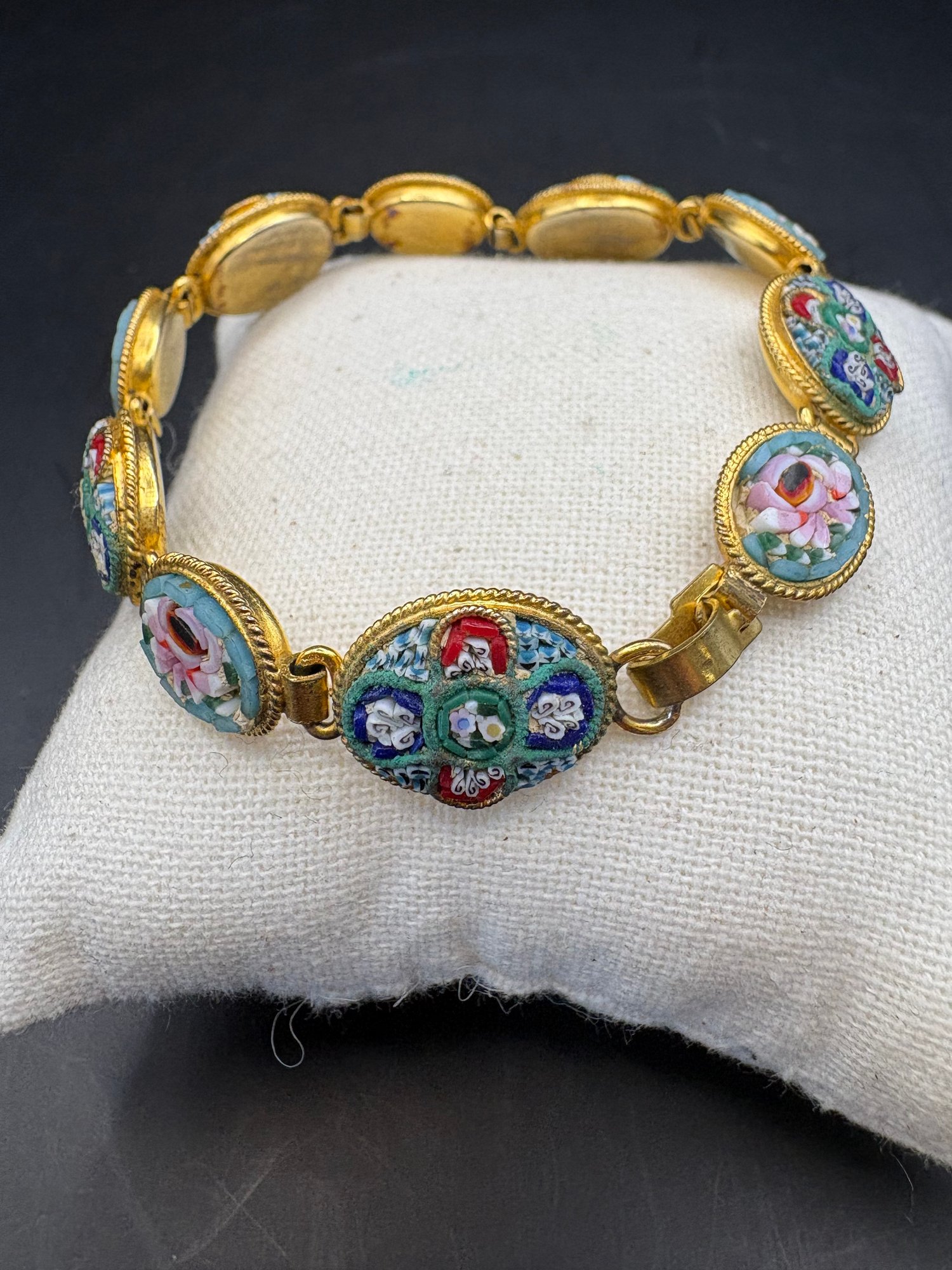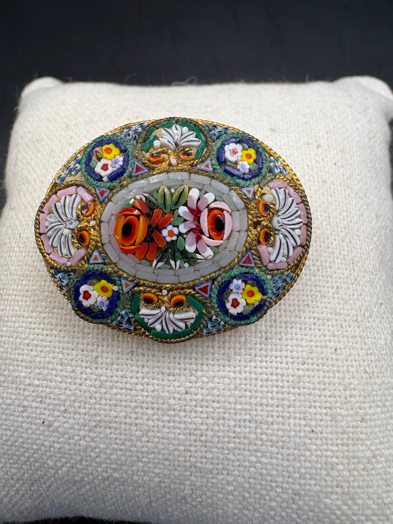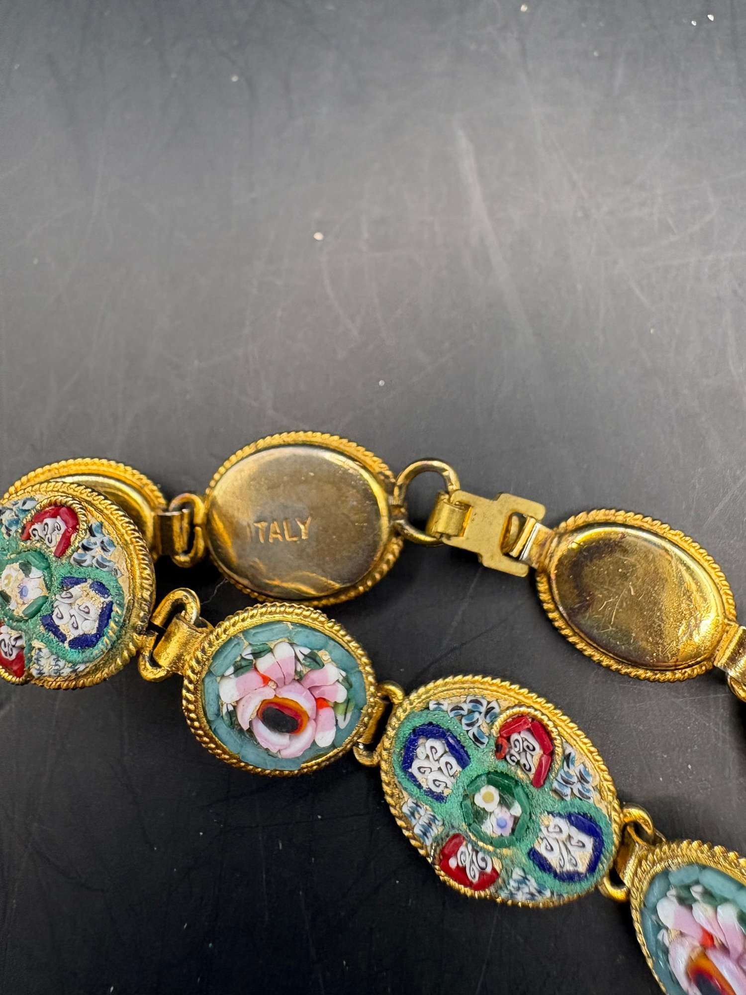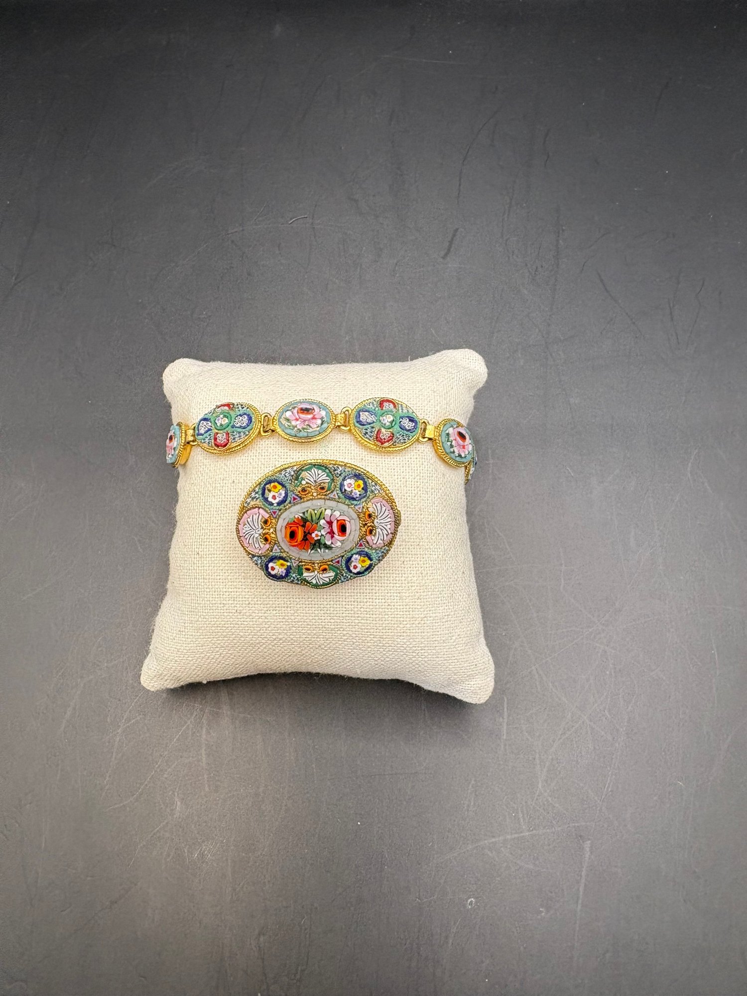 Beautiful Floral Italian Micro Mosaic Brooch and bracelet. Italy marked on jewelry
