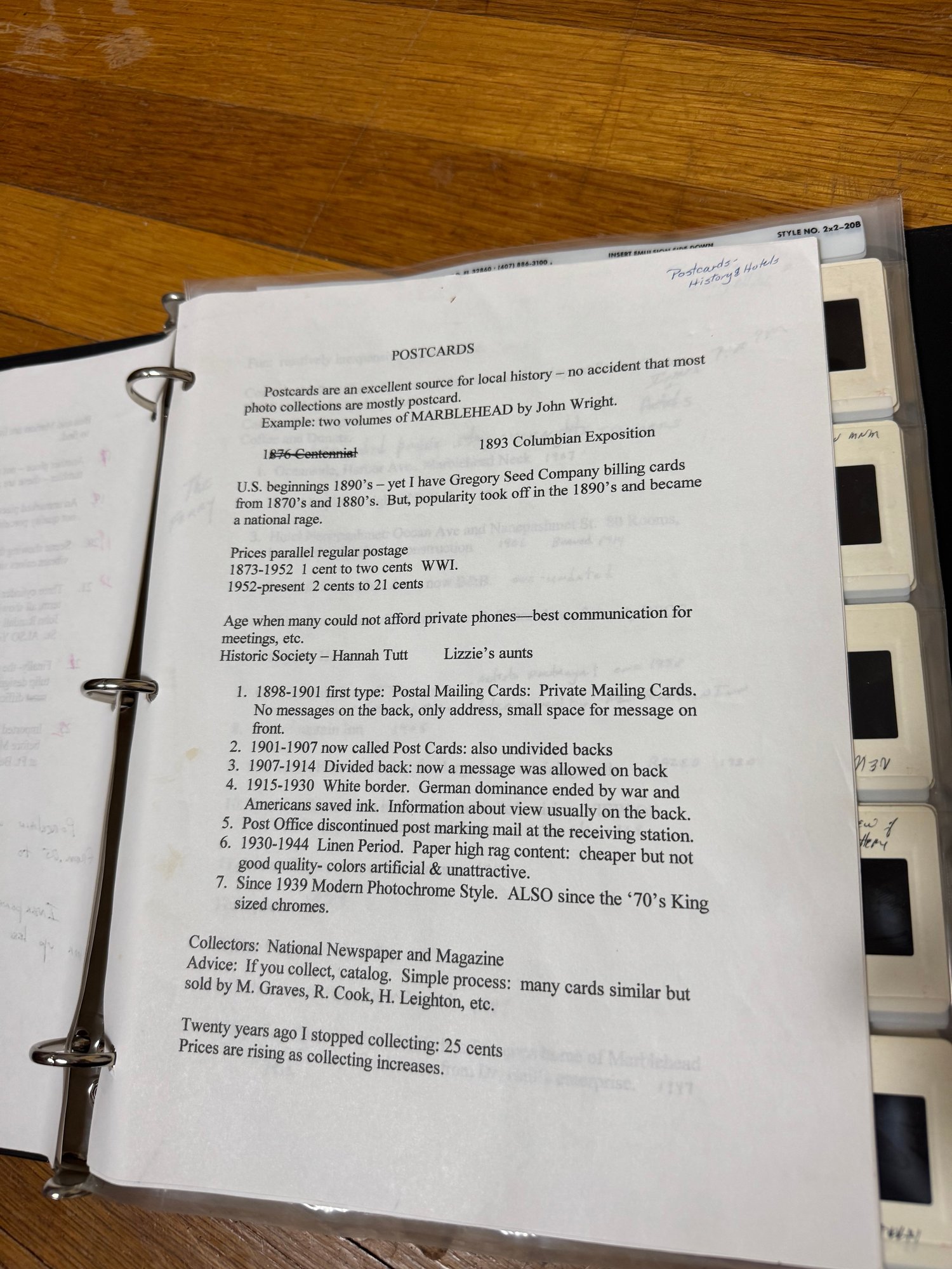 includes an entire binder full of kodak slide photos relating to Marblehead Massachusetts
