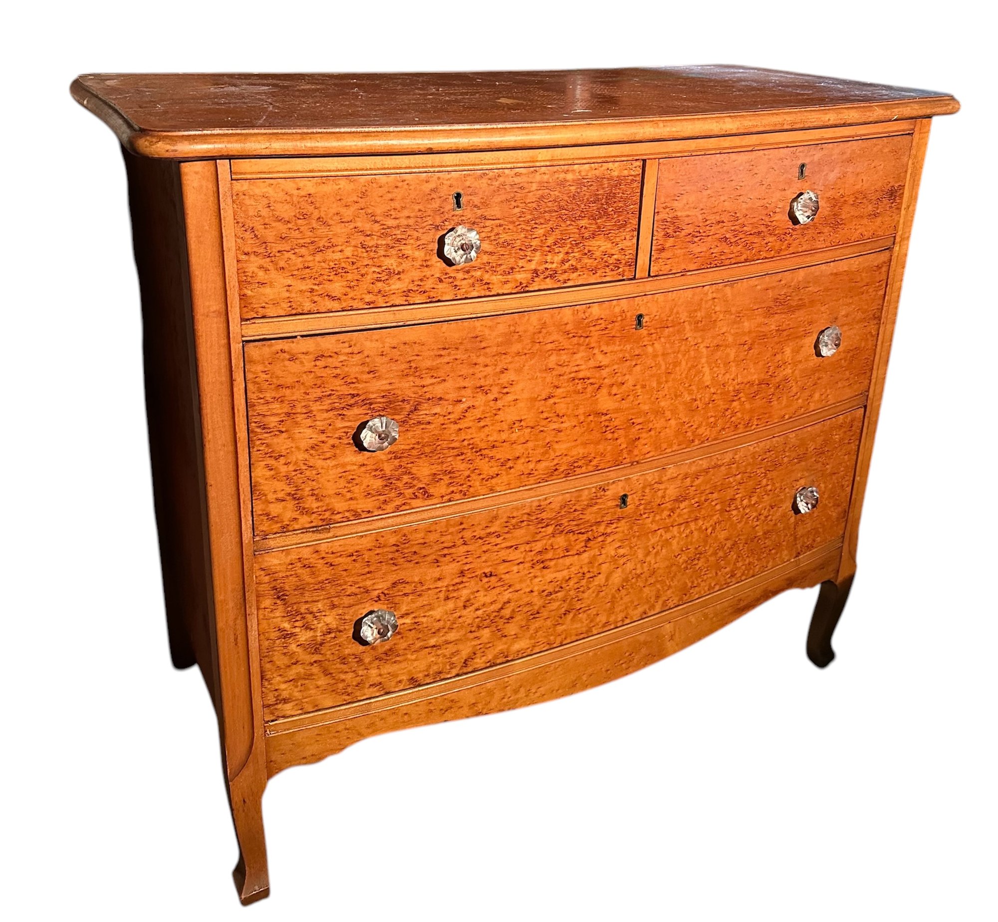 Top has lots of scratches and sticky residue but overall good condition. Drawers open and close smoothly.