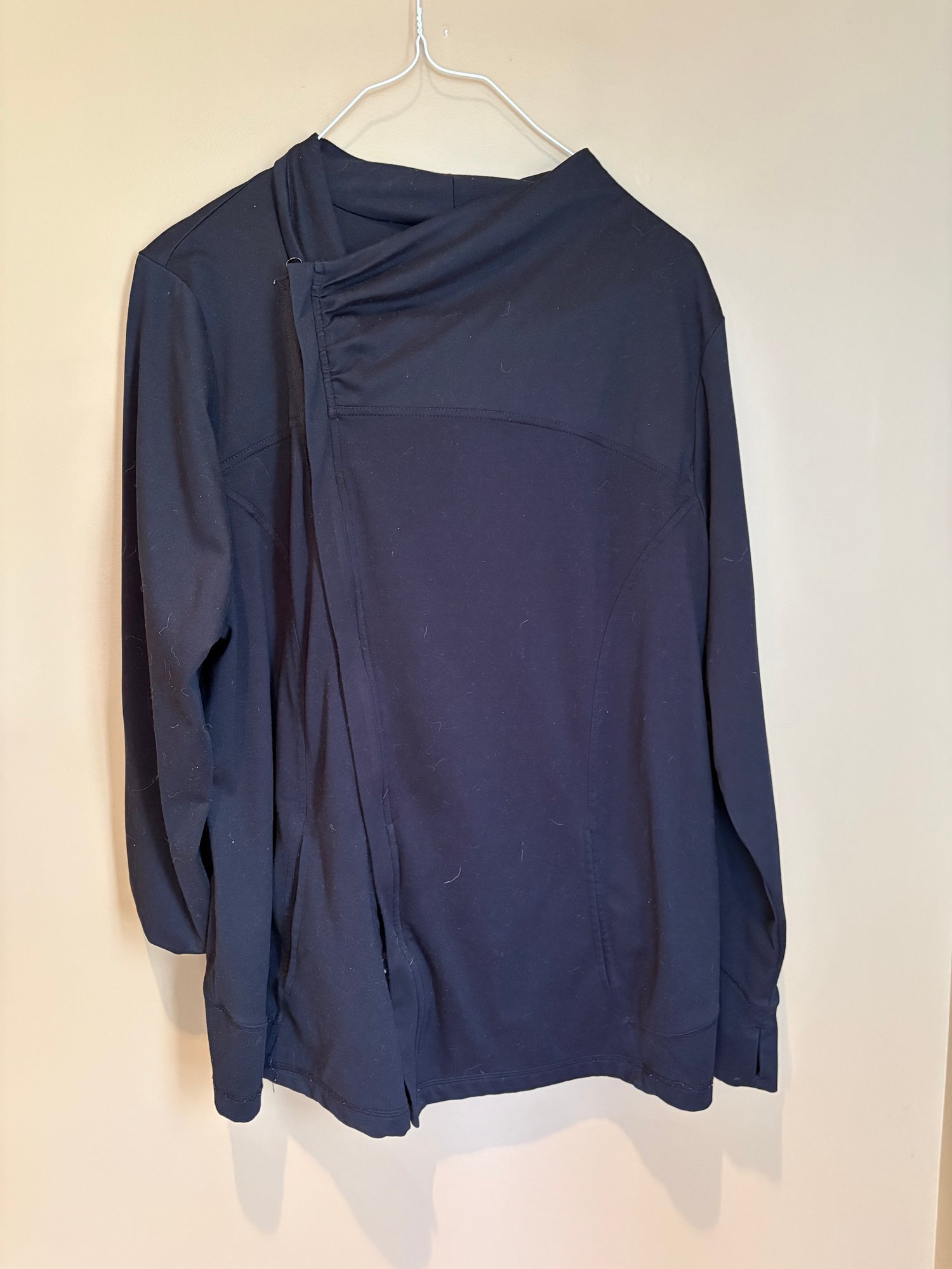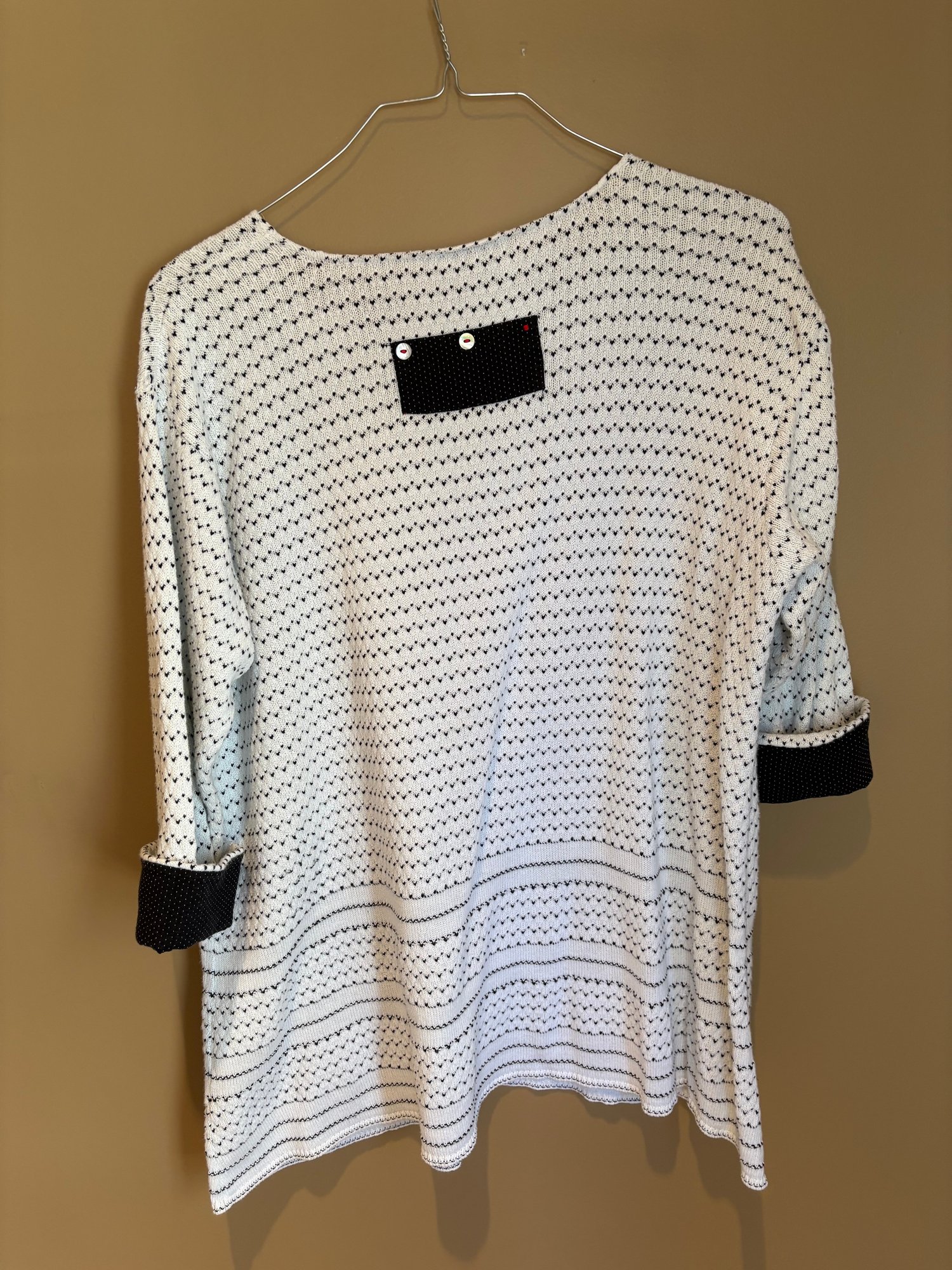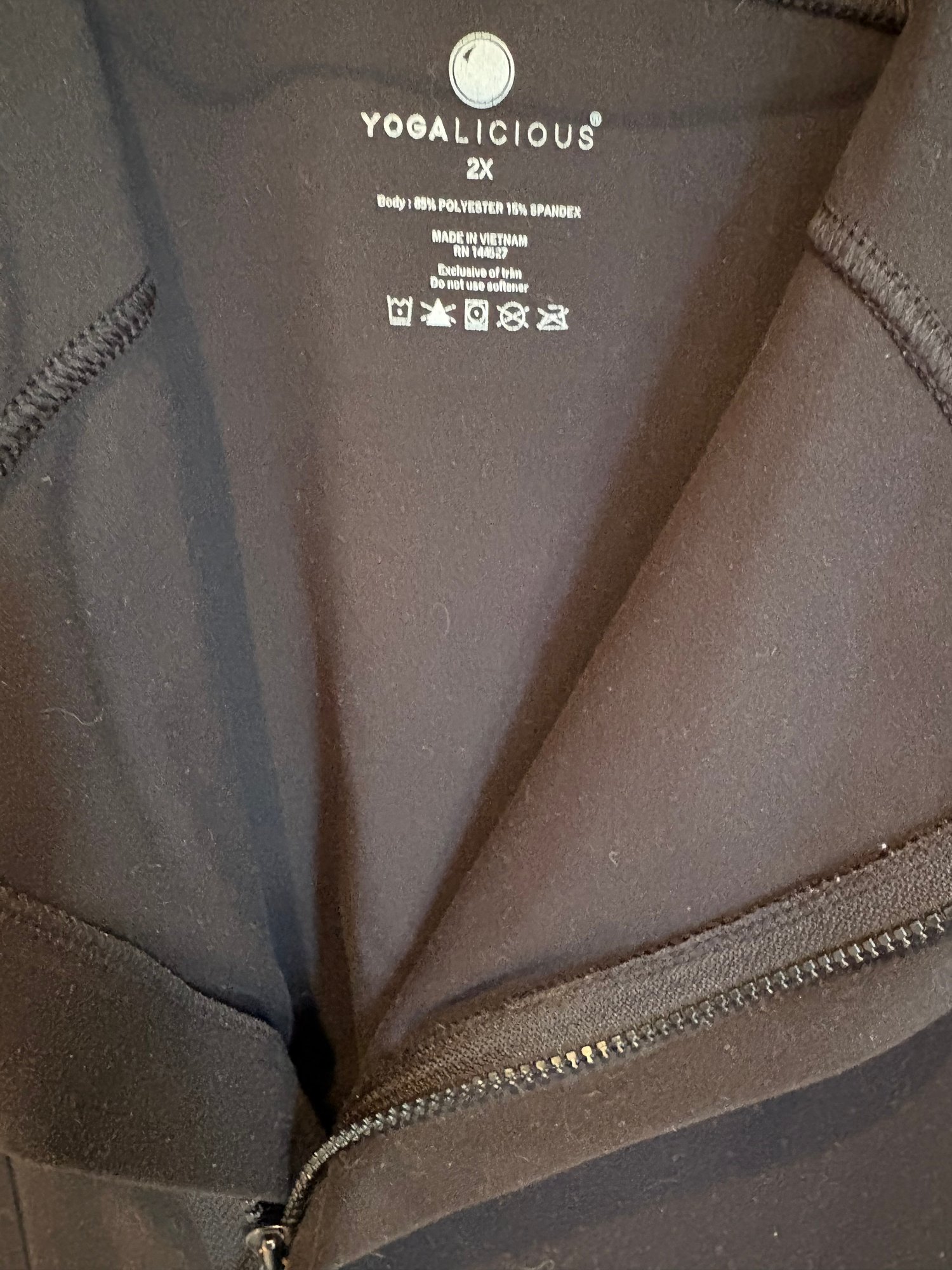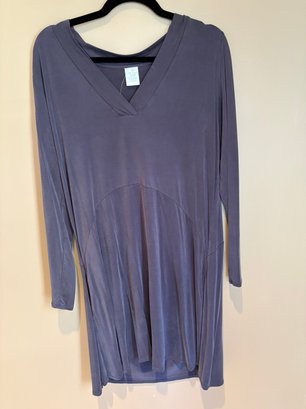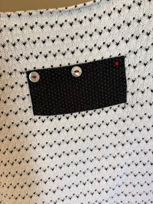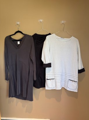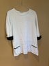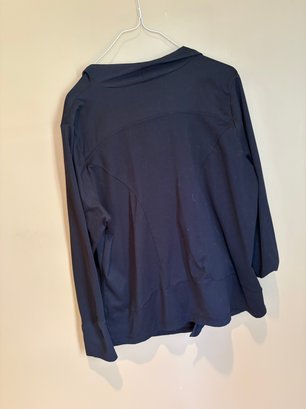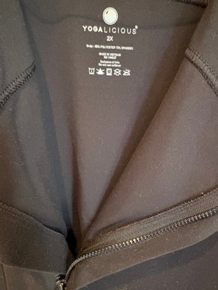 Yogolicious 2X zip up workout top gray dress V-neck large Margaret Winters, white and black sweater with front pockets and button detail. There’s one button missing on the back.