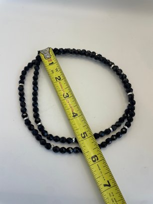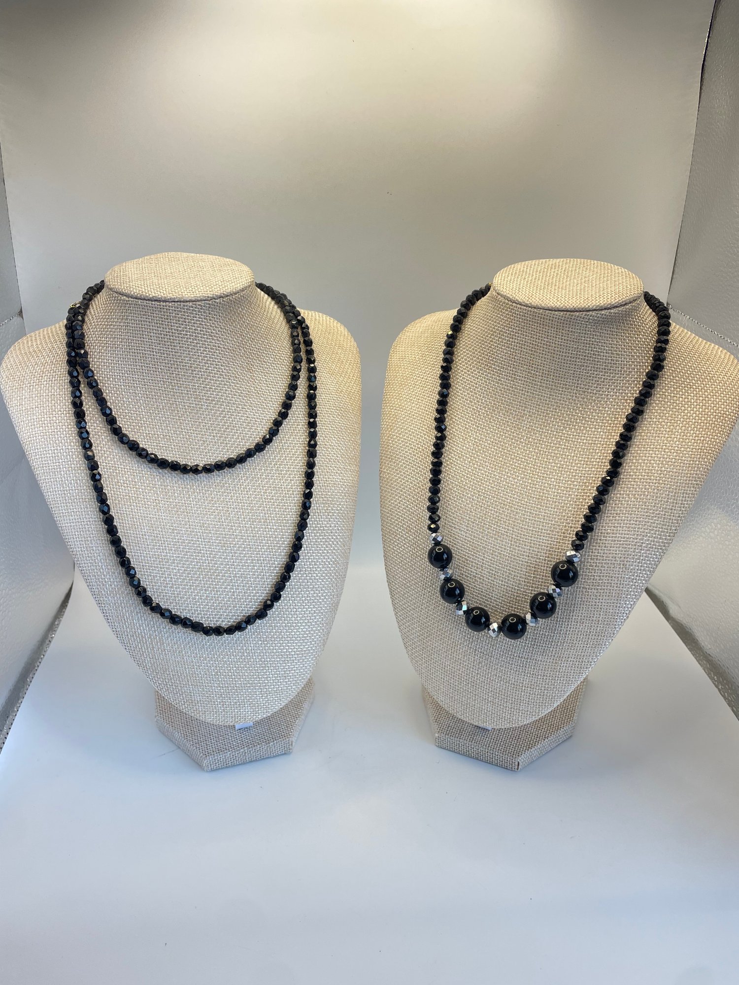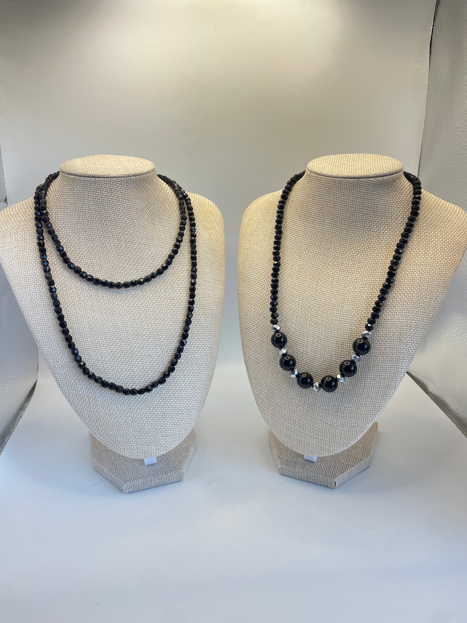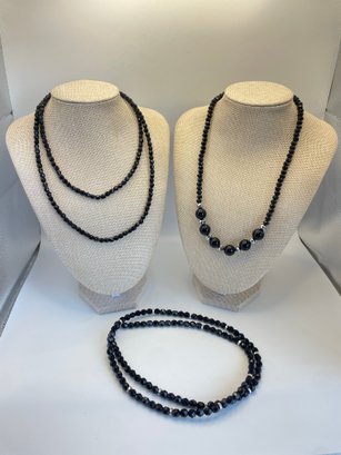 Lot of three costume black beaded and silvertone necklaces