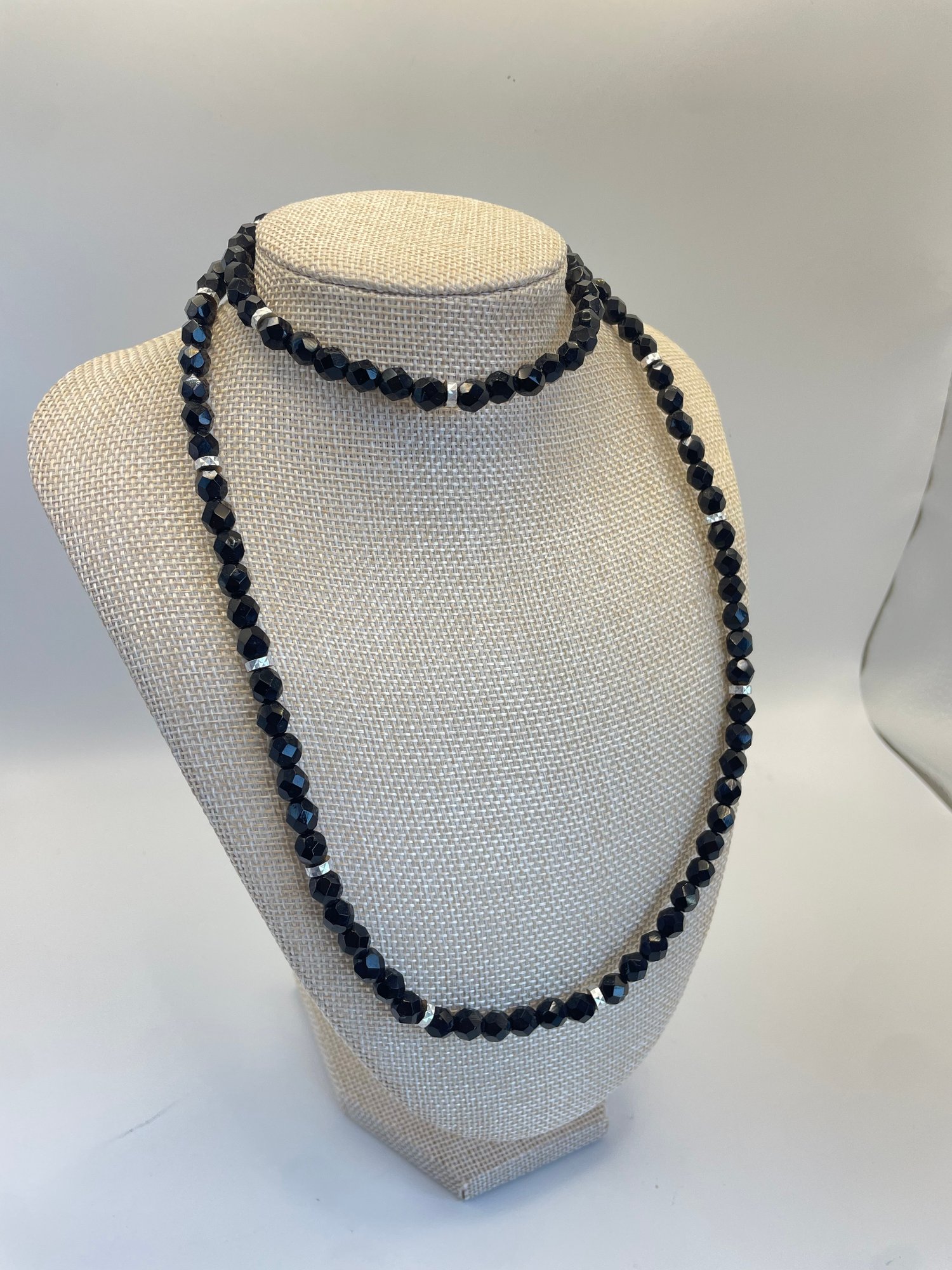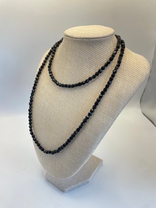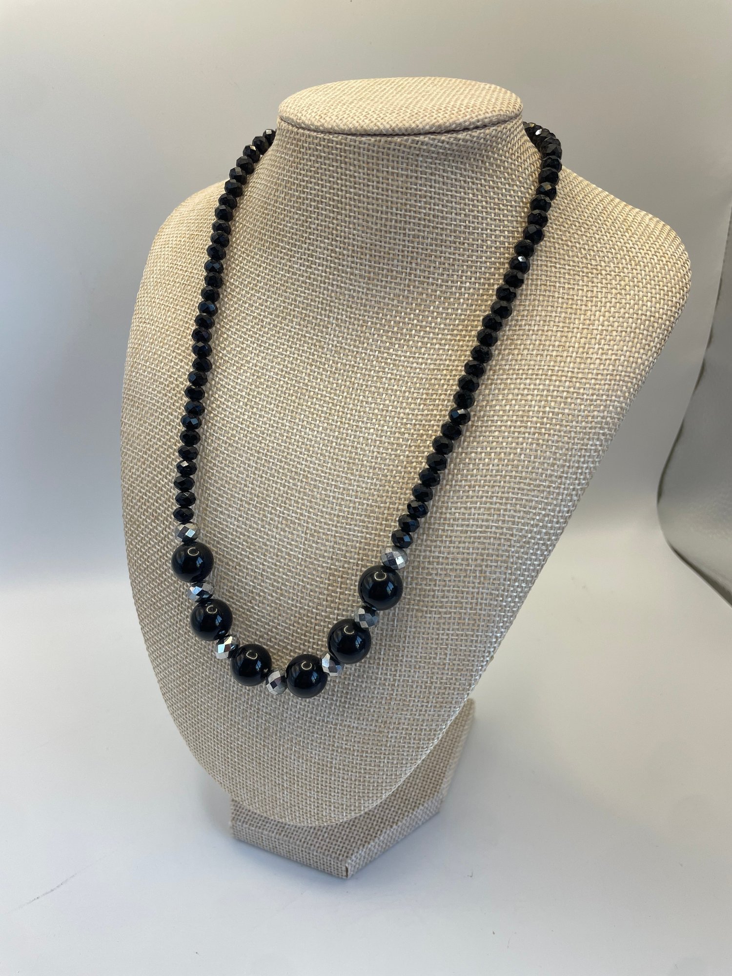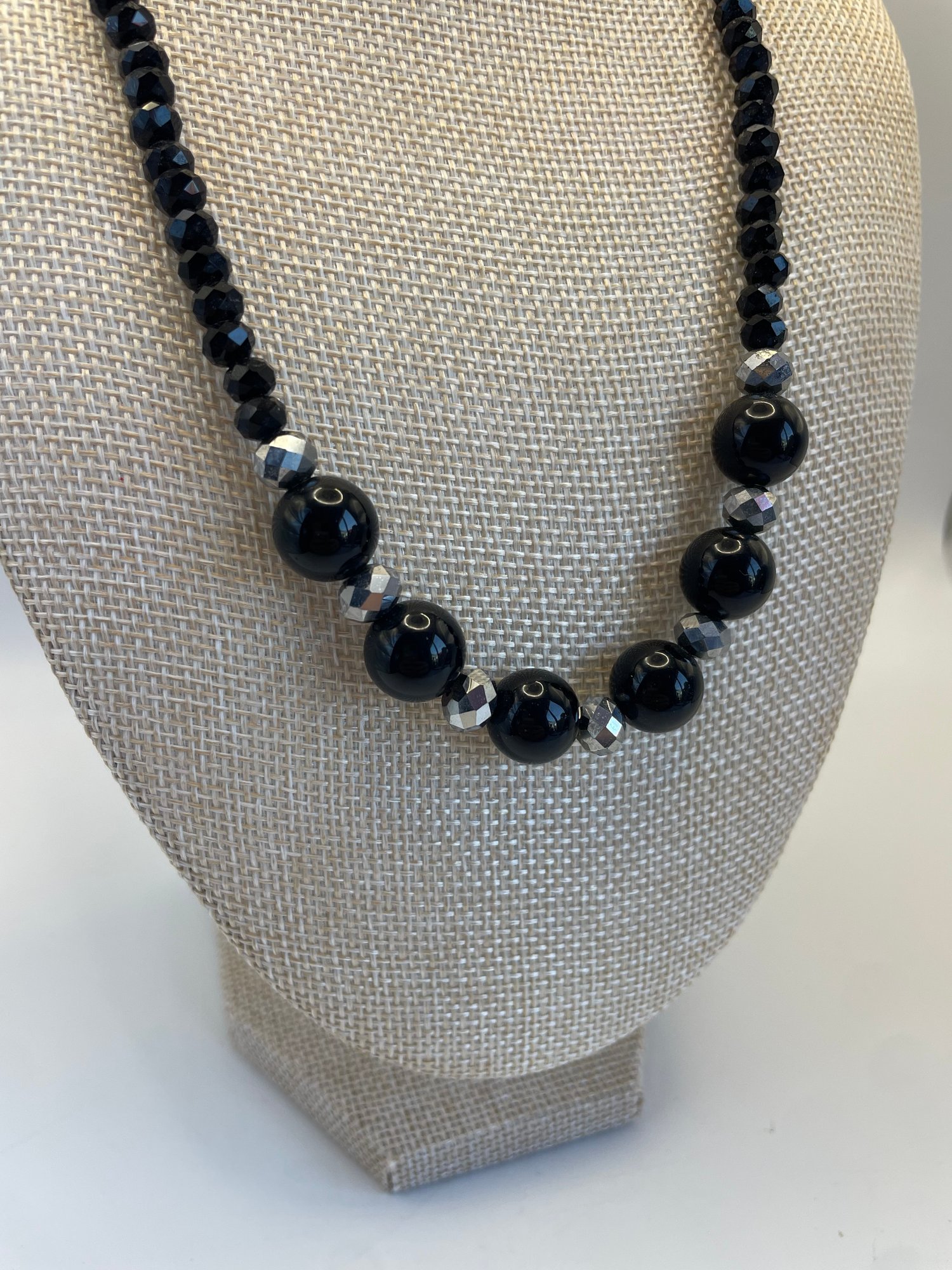Lot of three costume black beaded and silvertone necklaces