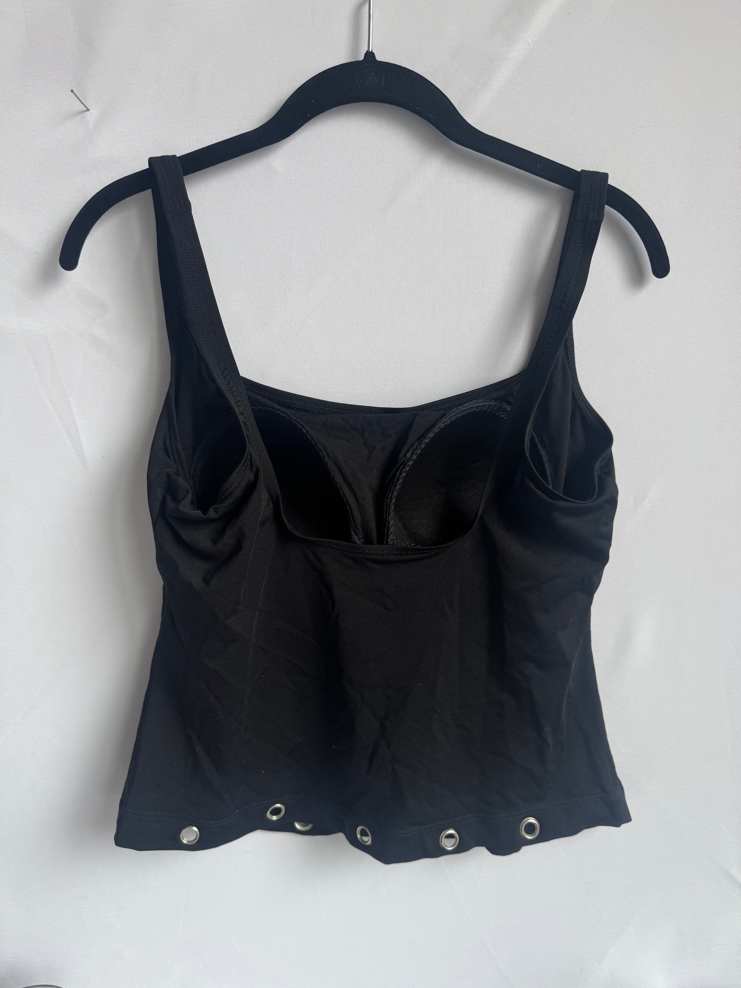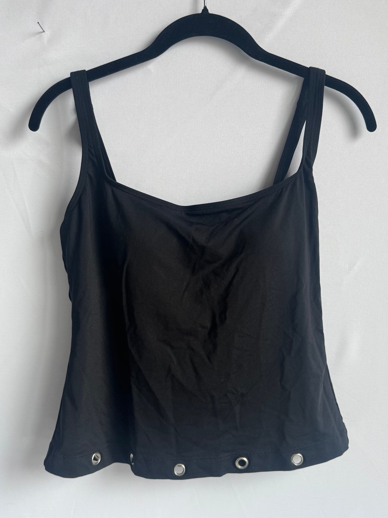 Style: Metal hole detailed, padded, black tank top