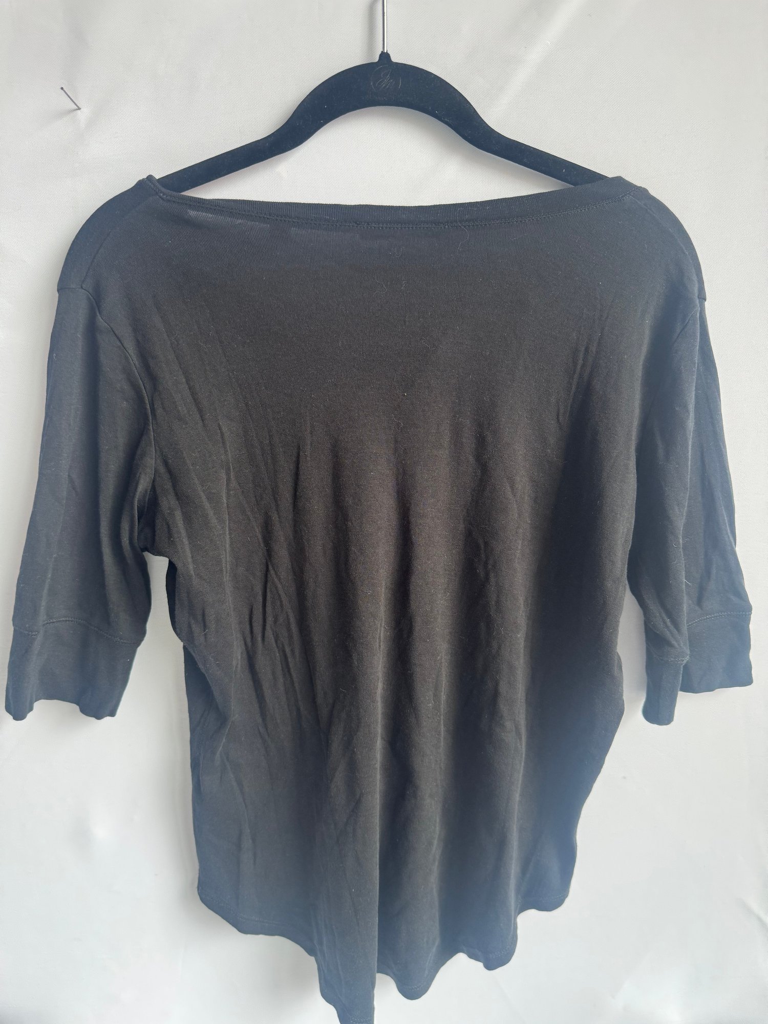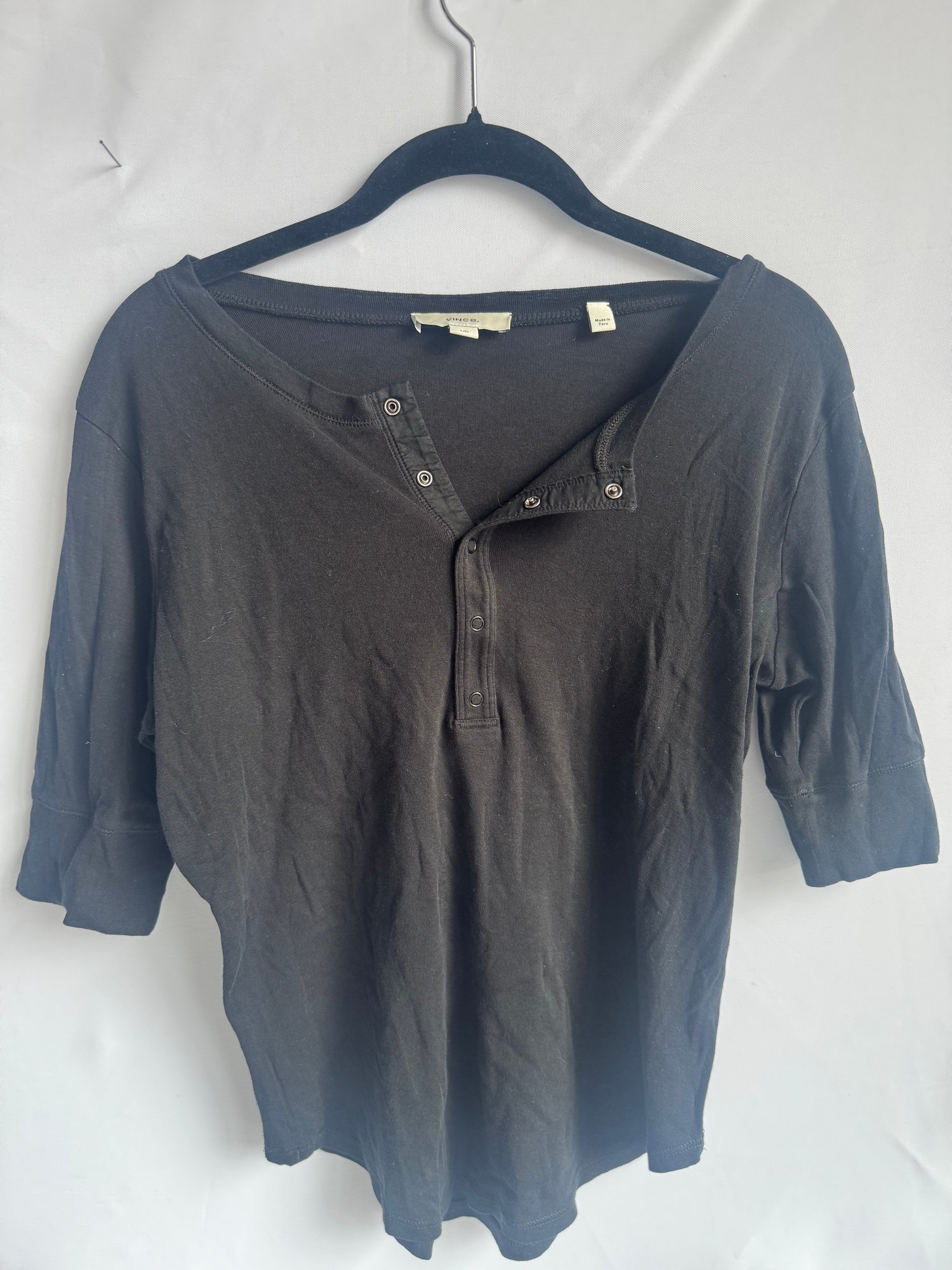 Style: 3/4 sleeve, Henley, black shirt