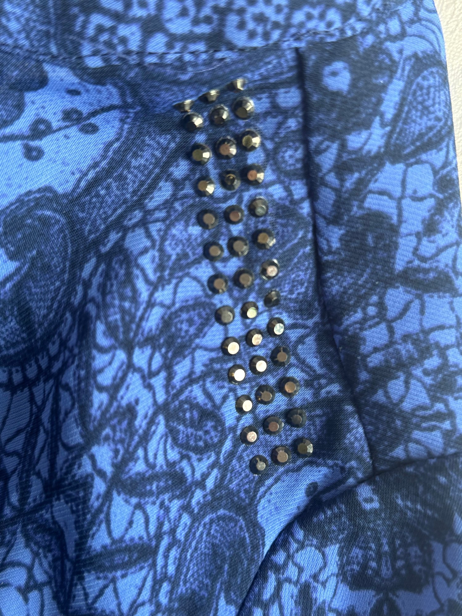 Blue Pattern Blouse with stud details shoulders
