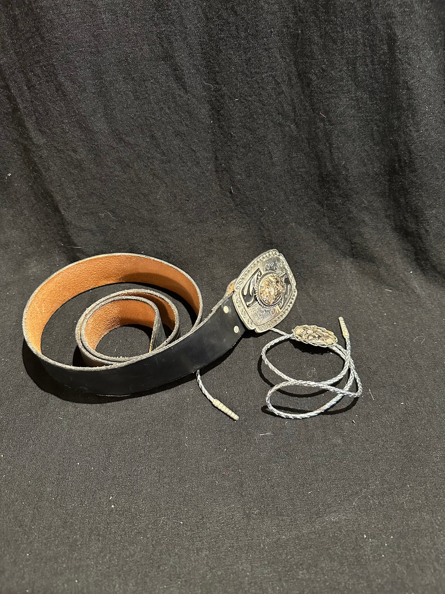 Bolo Tie, Belt And Buckle With Matching Fossil Stone
