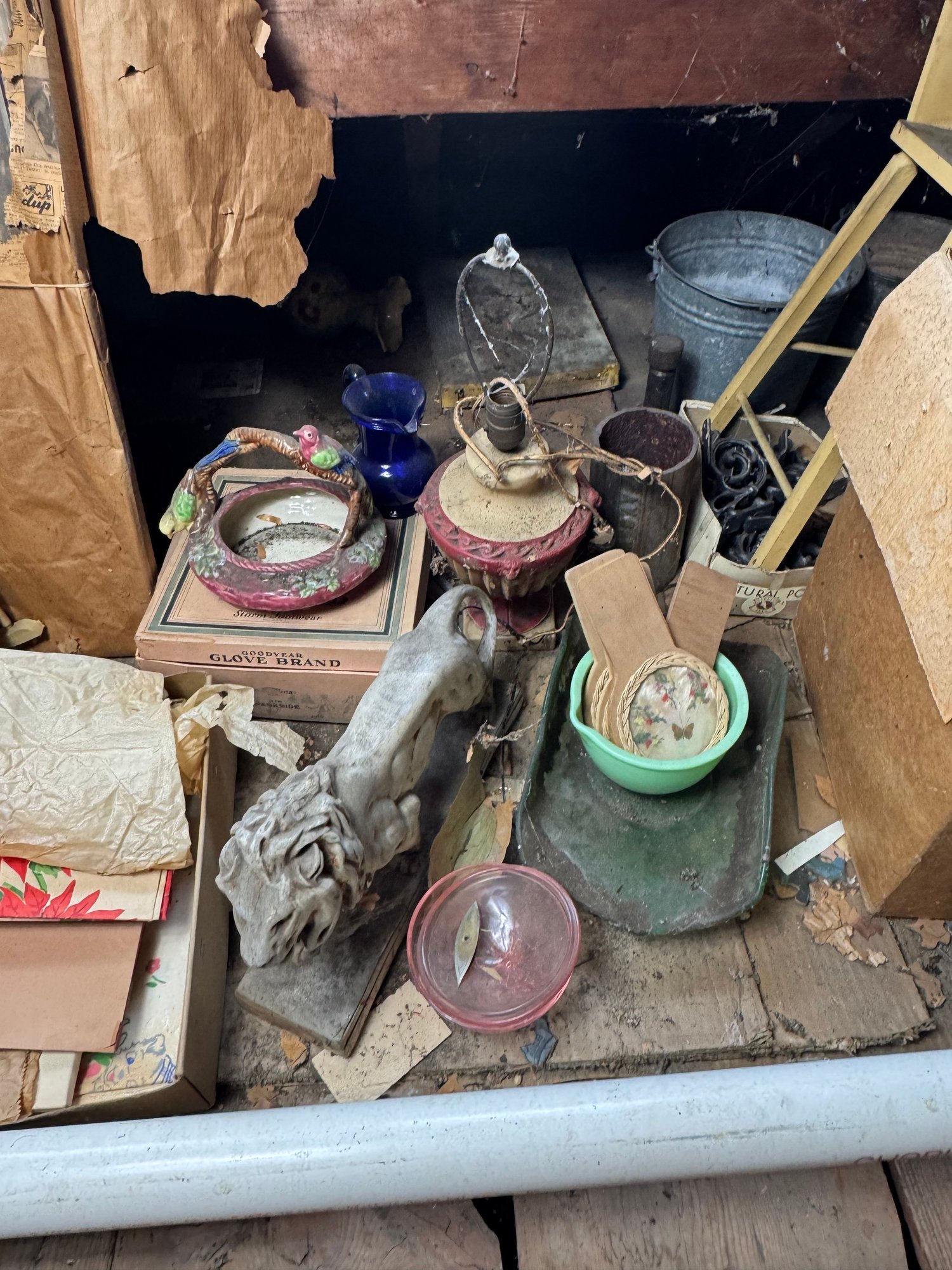 these items are located in the attic. the attic is VERY dusty & moldy. all items likely need a deep cleaning, some have damage. we recommend bringing a respirator with you upon pickup.