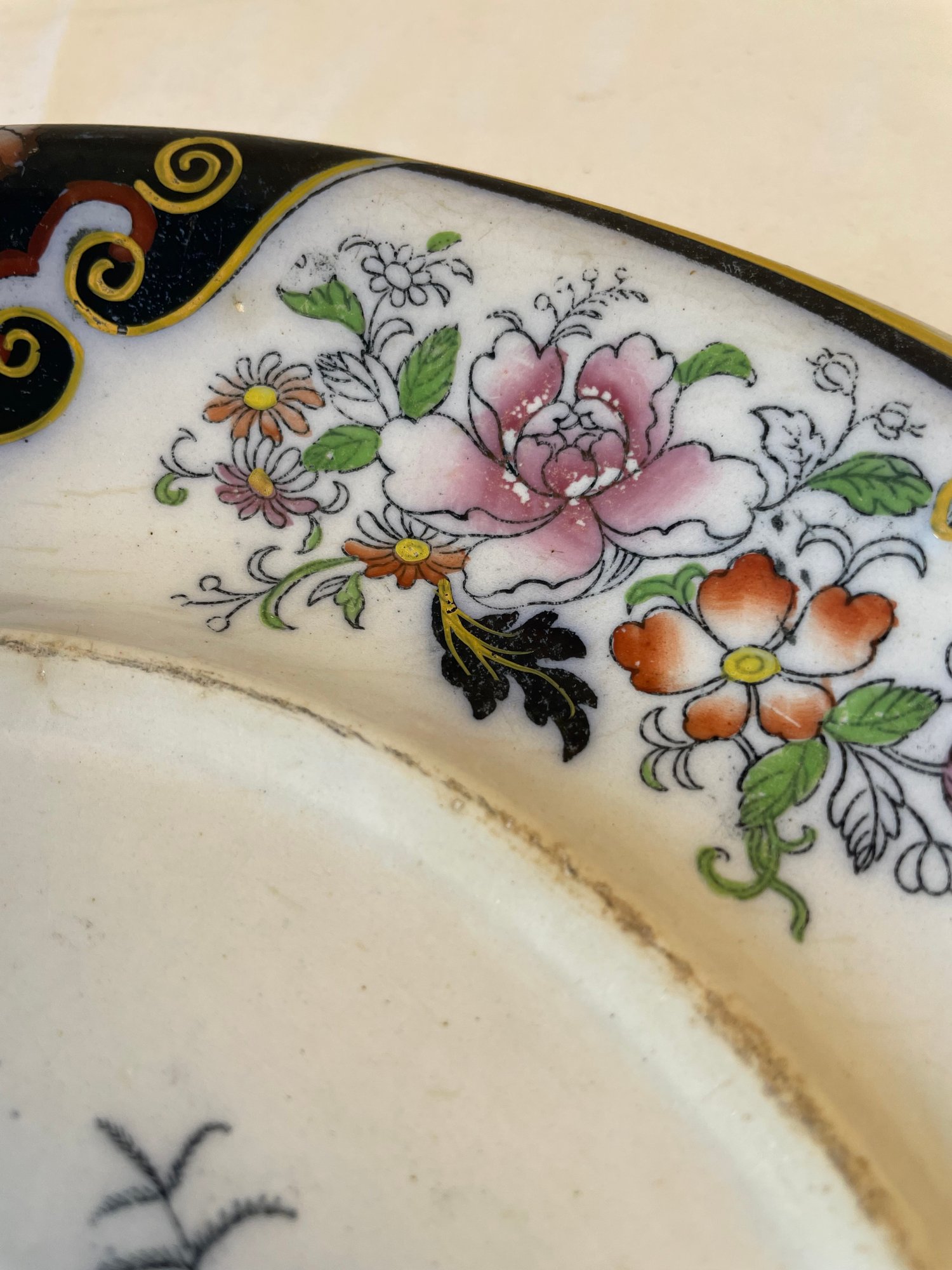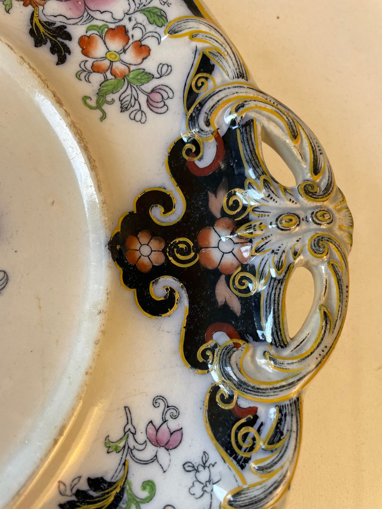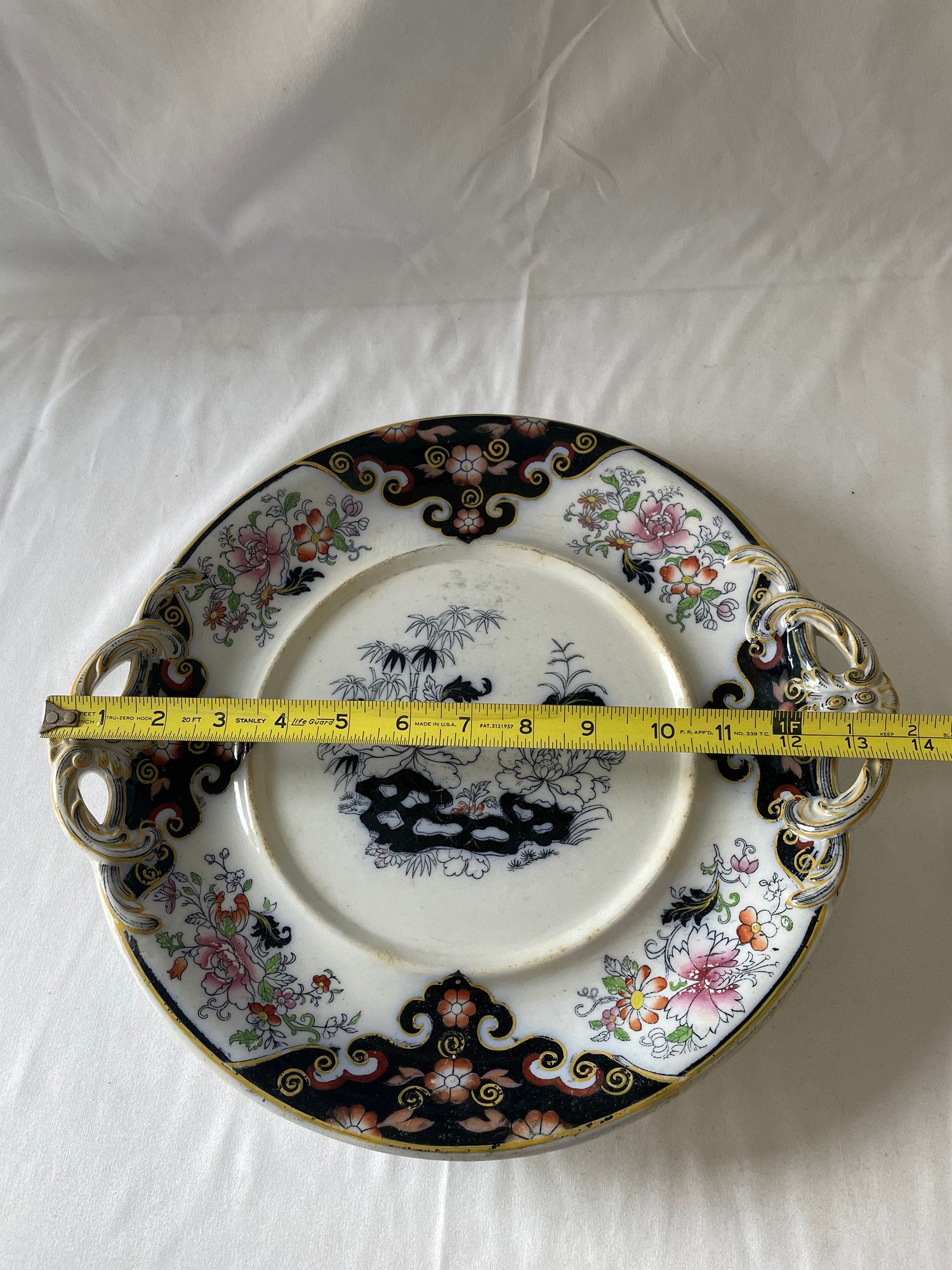 Vtg ceramic Borneo serving plate with gold accents
