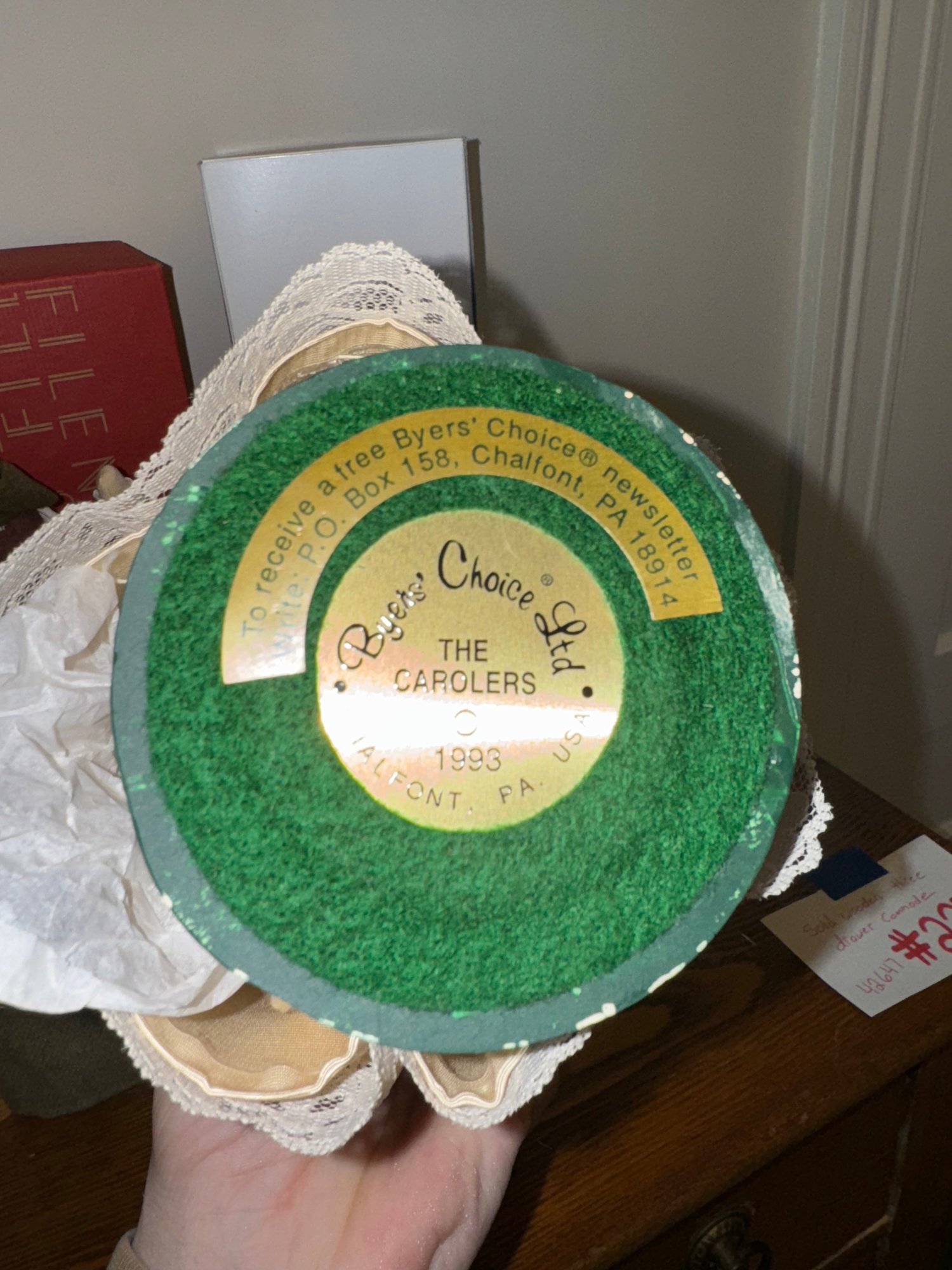 includes four assorted byers choice caroler figurines