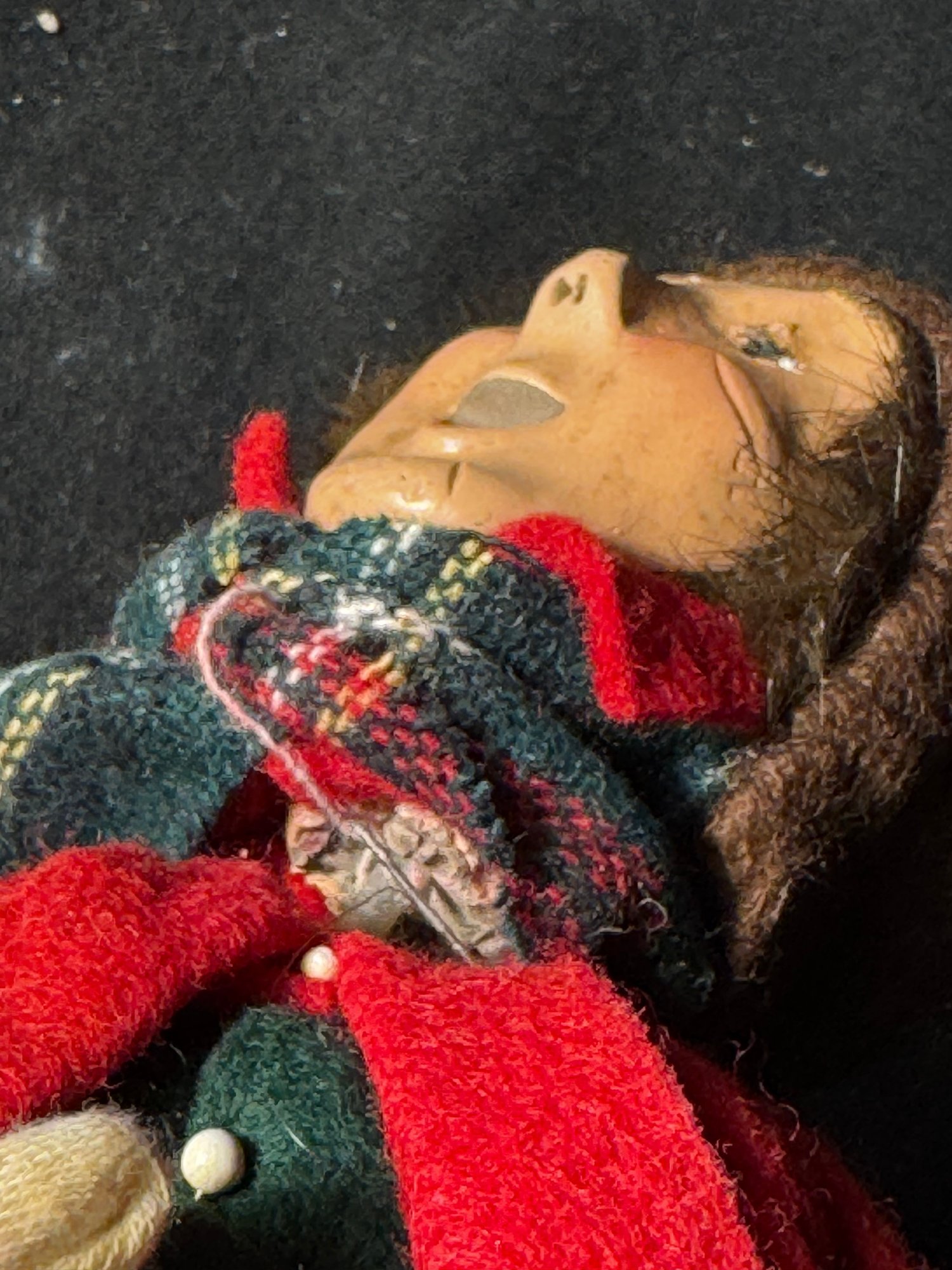 the head has some damage, lifts from the body but is still attached. no issues if you leave it as it for display