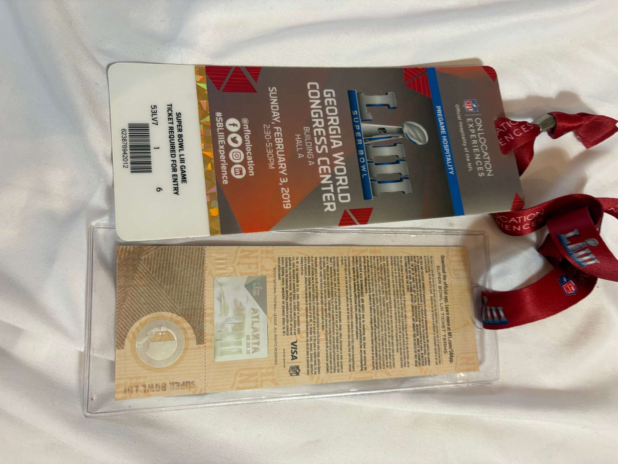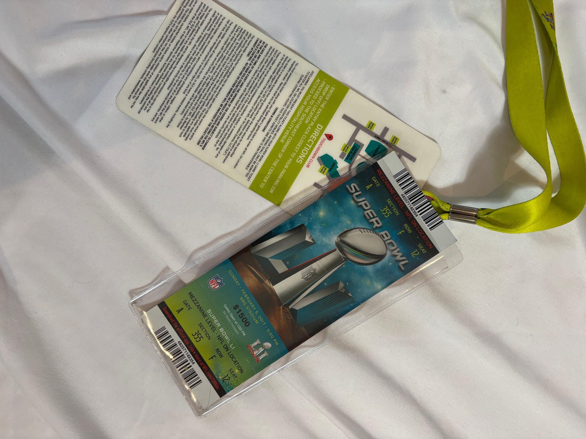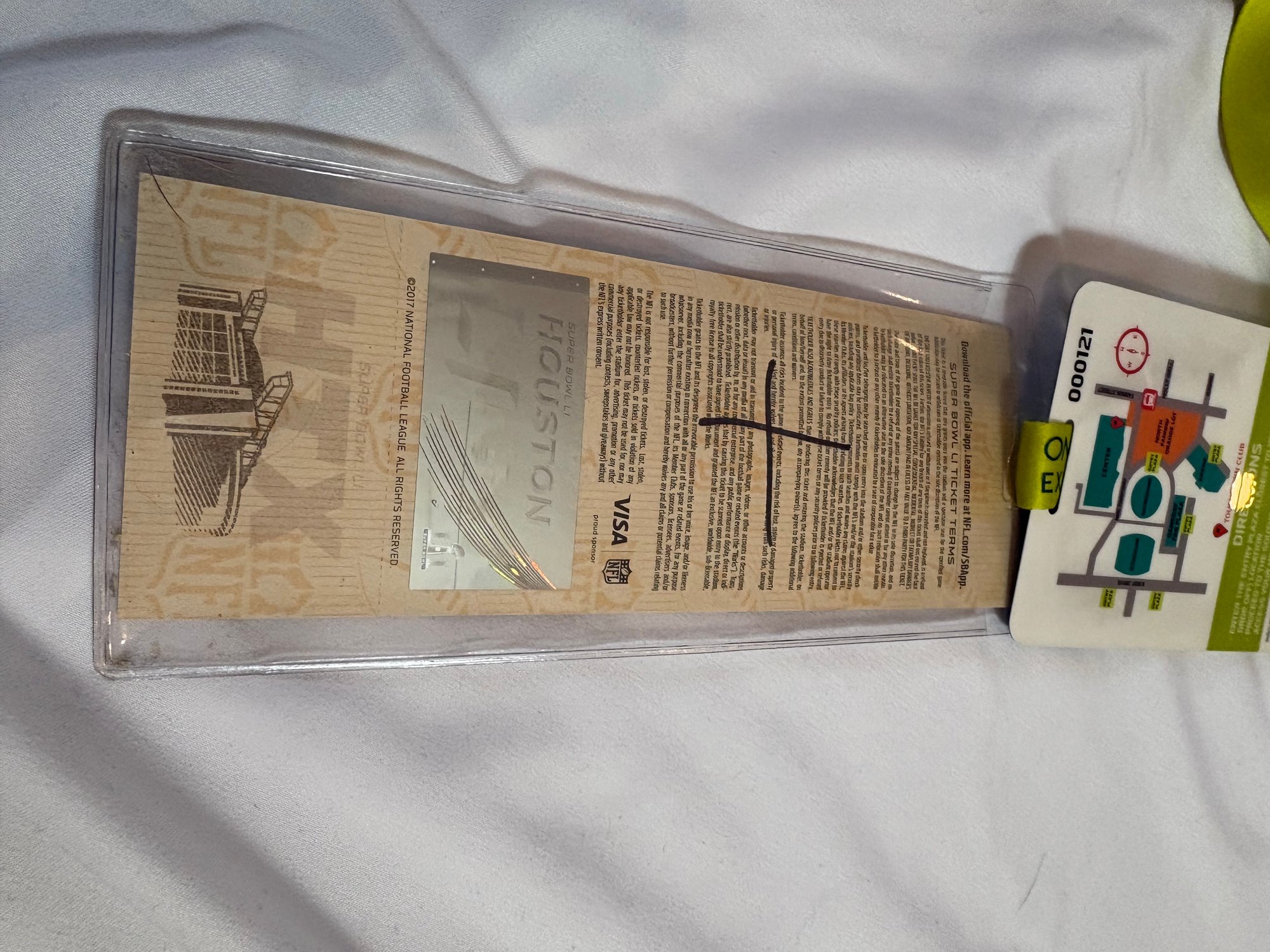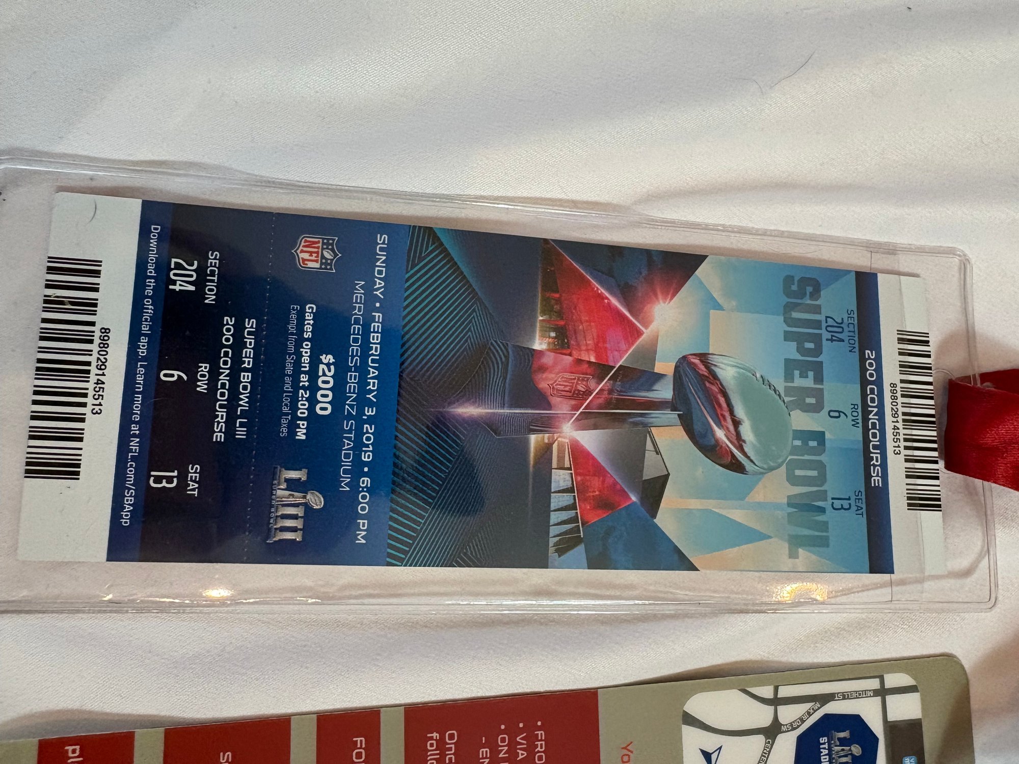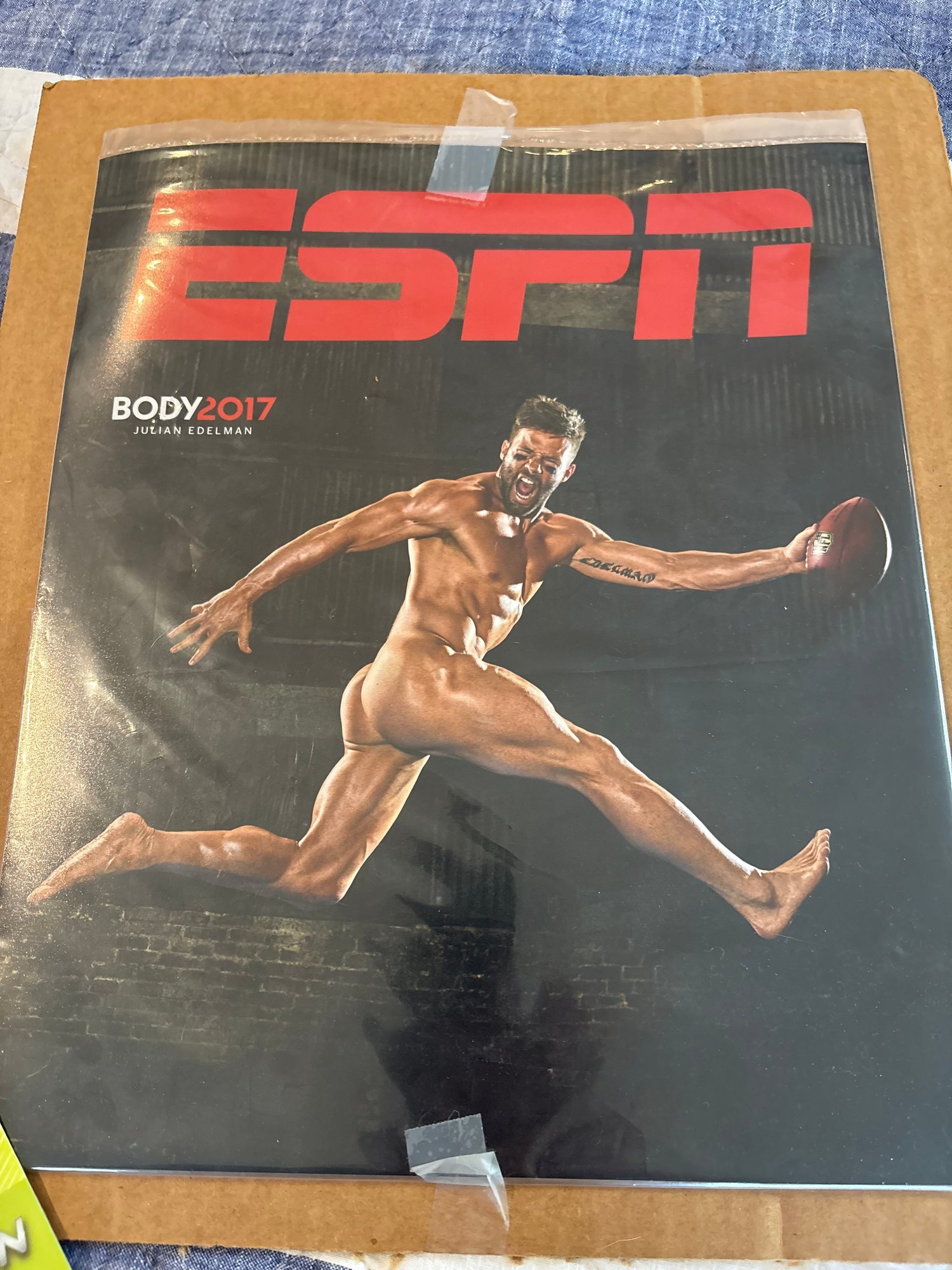 A photo of Edelman ESPN cover and two Super Bowl passes from 2017 and 2019