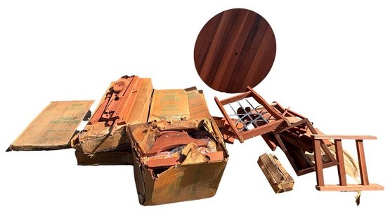 Notes: All boxes are falling apart, any upholstered cushions are severely damaged from mice. Not checked for completeness may be missing parts or hardware. Otherwise they have never been used or setup