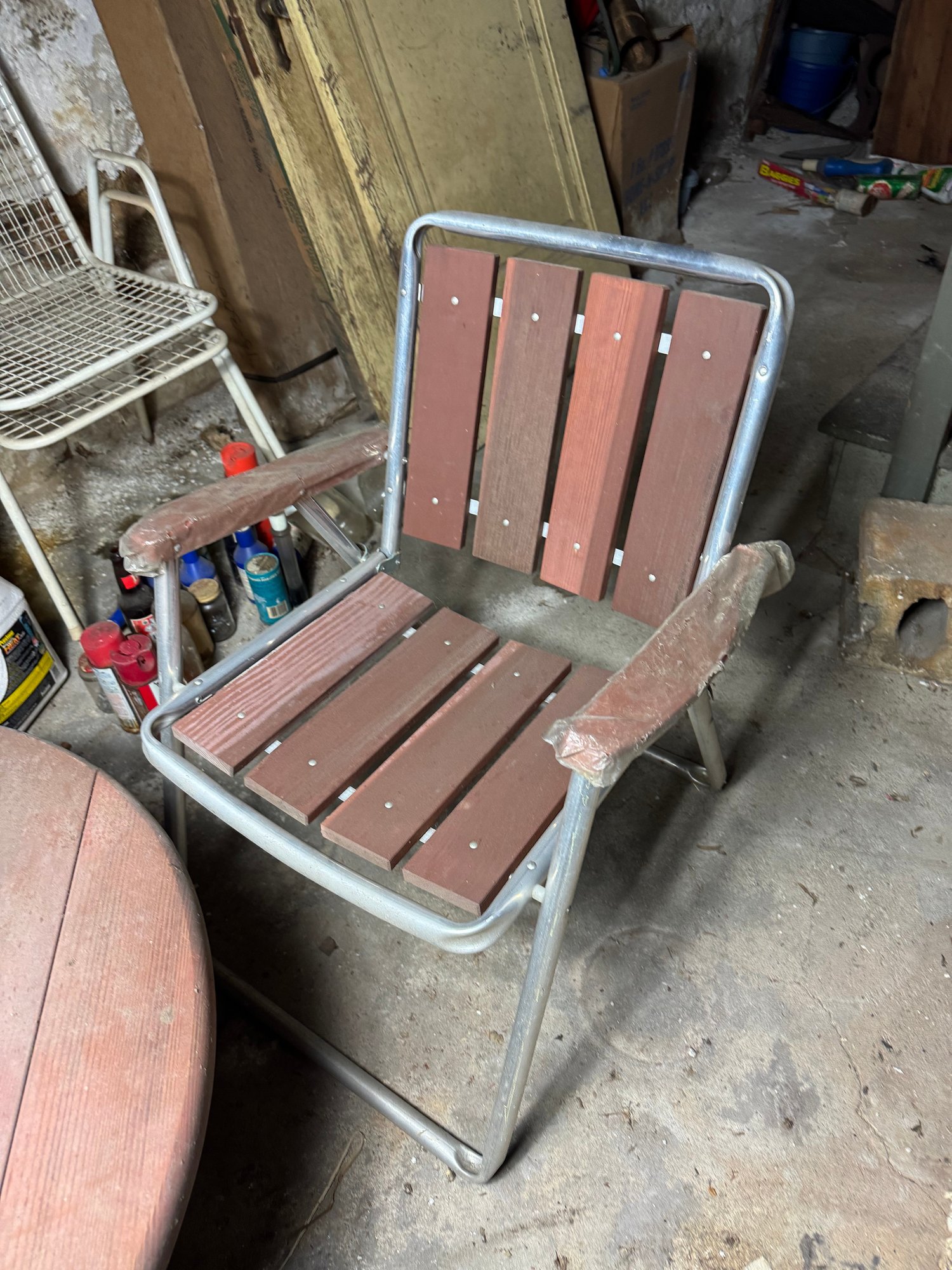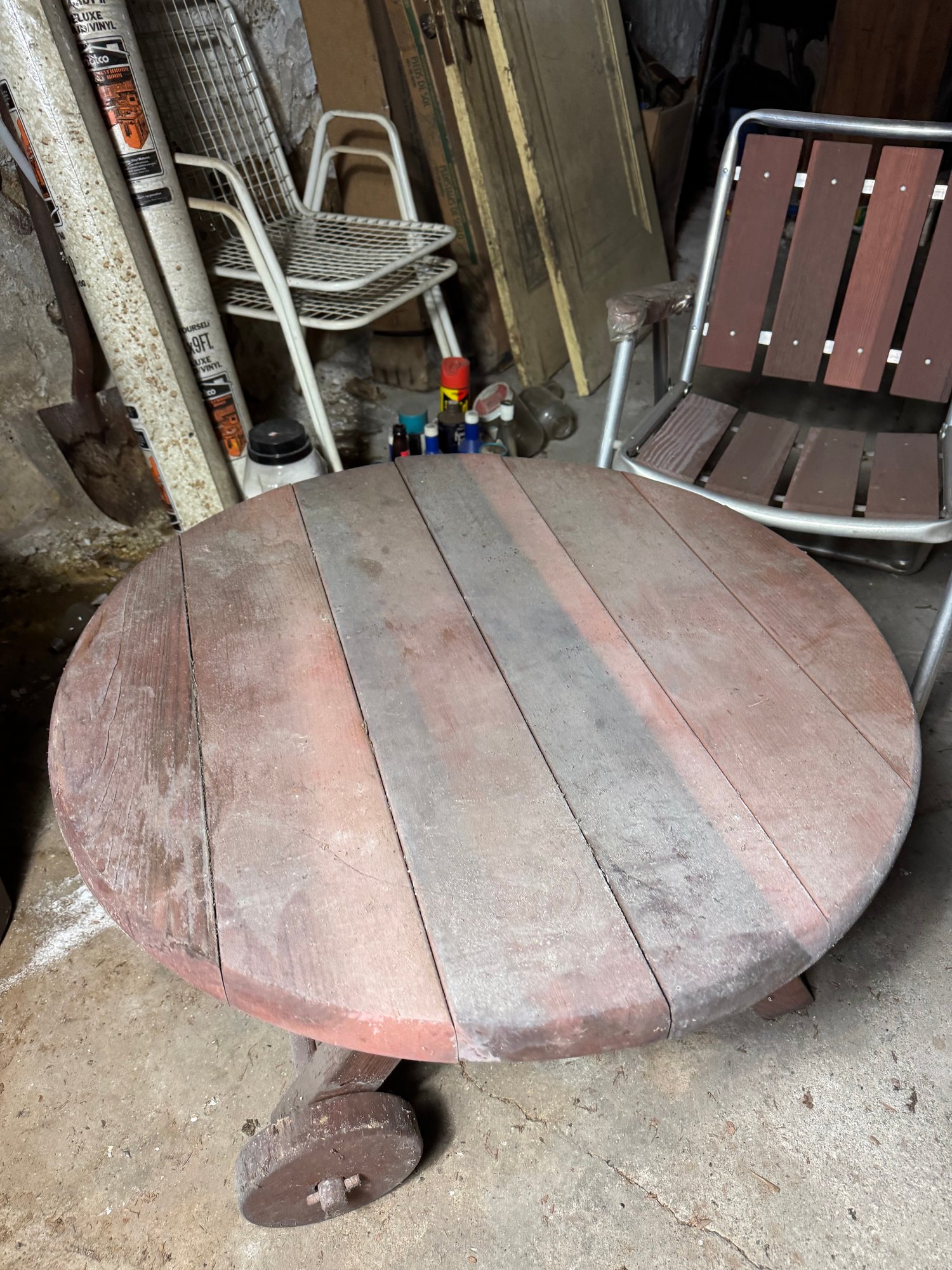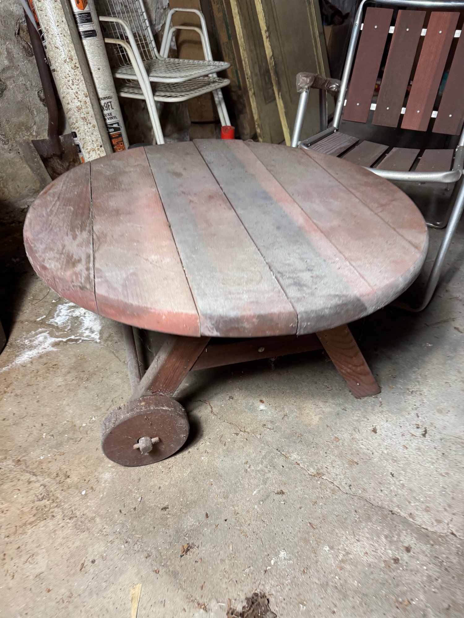 table is slightly wobbly, approximately 32” diameter