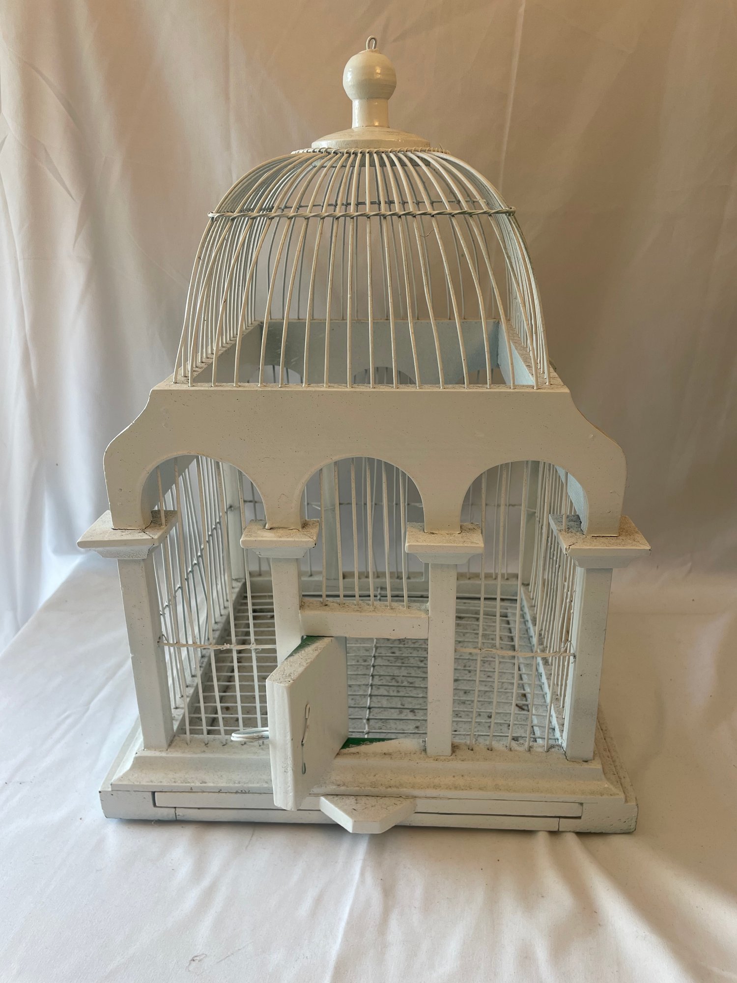 • Wooden decorative birdcage / home decor, painted white, good condition