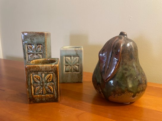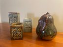 Set of 3 ceramic candlesticks/votives, glazed ceramic pear