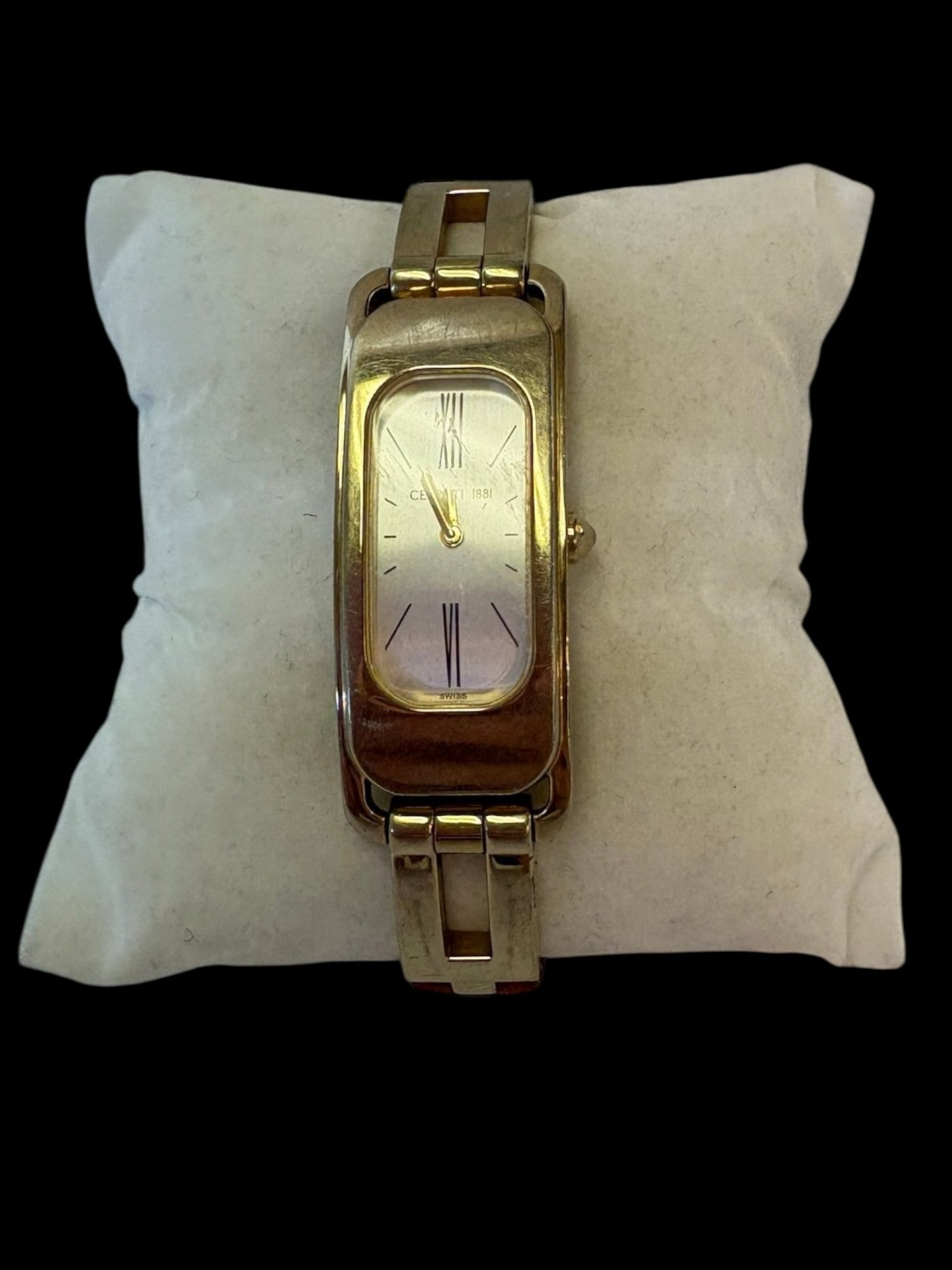 Ladies watch, leather band, gold tone. Water resistant to 30M, stainless steel back.