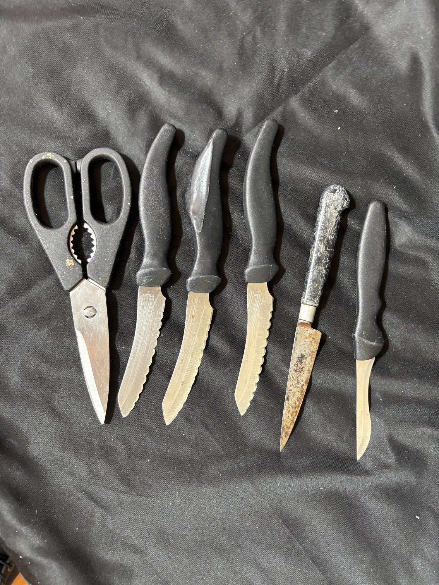 Notes: One knife has a melted damaged handle