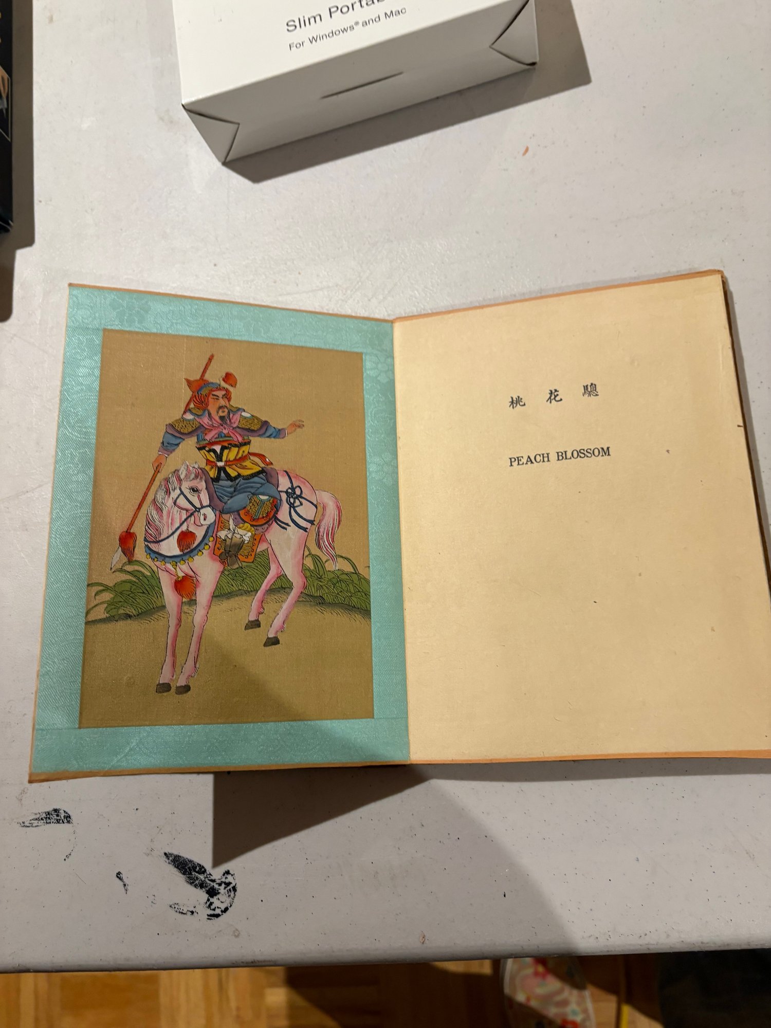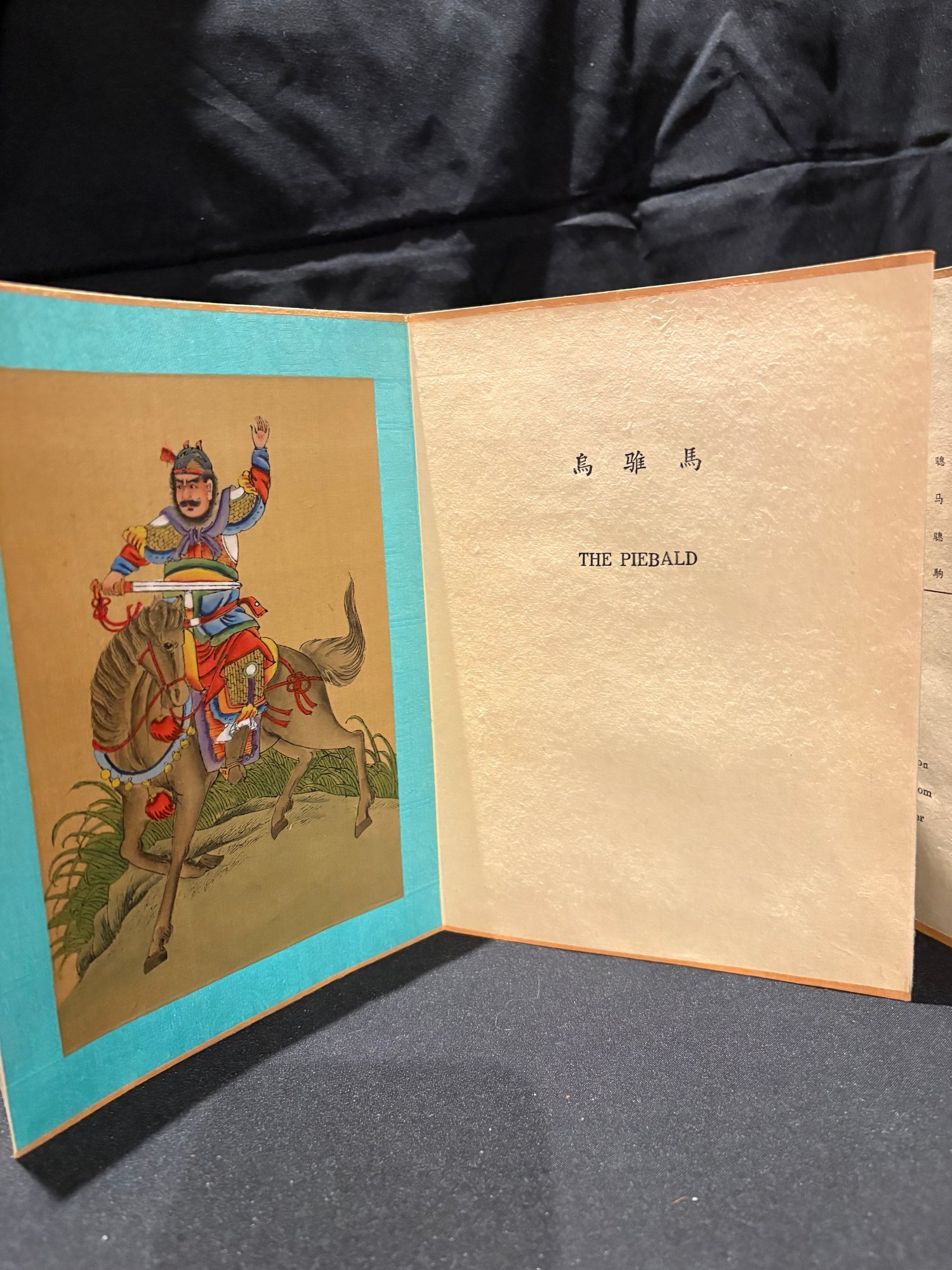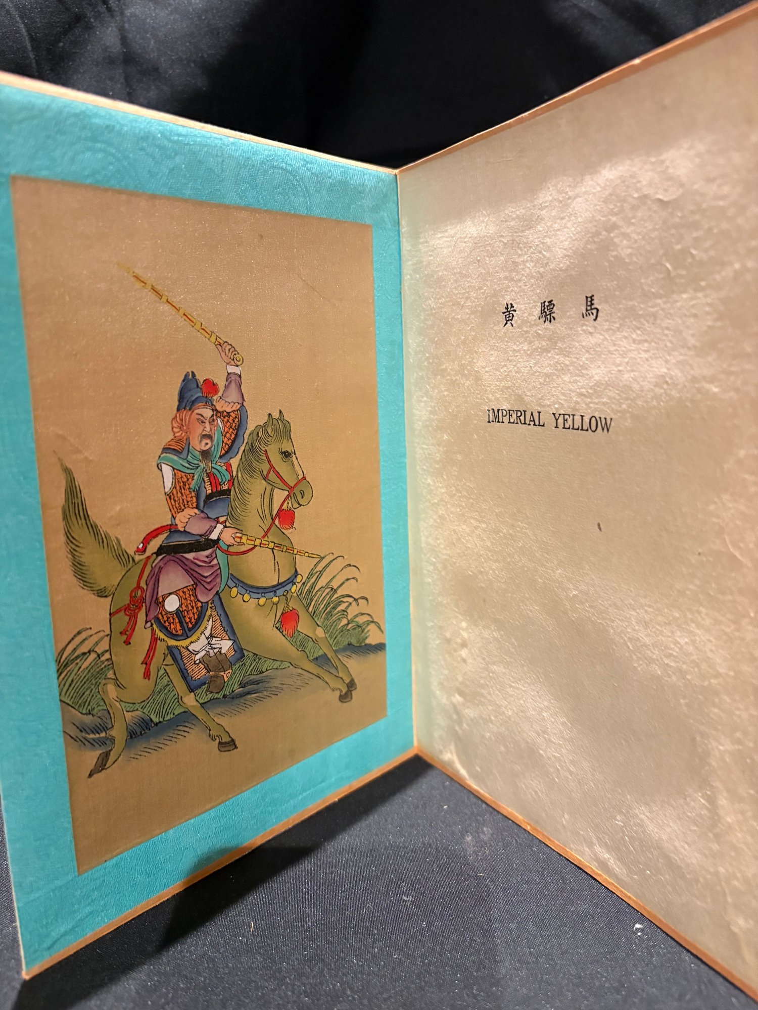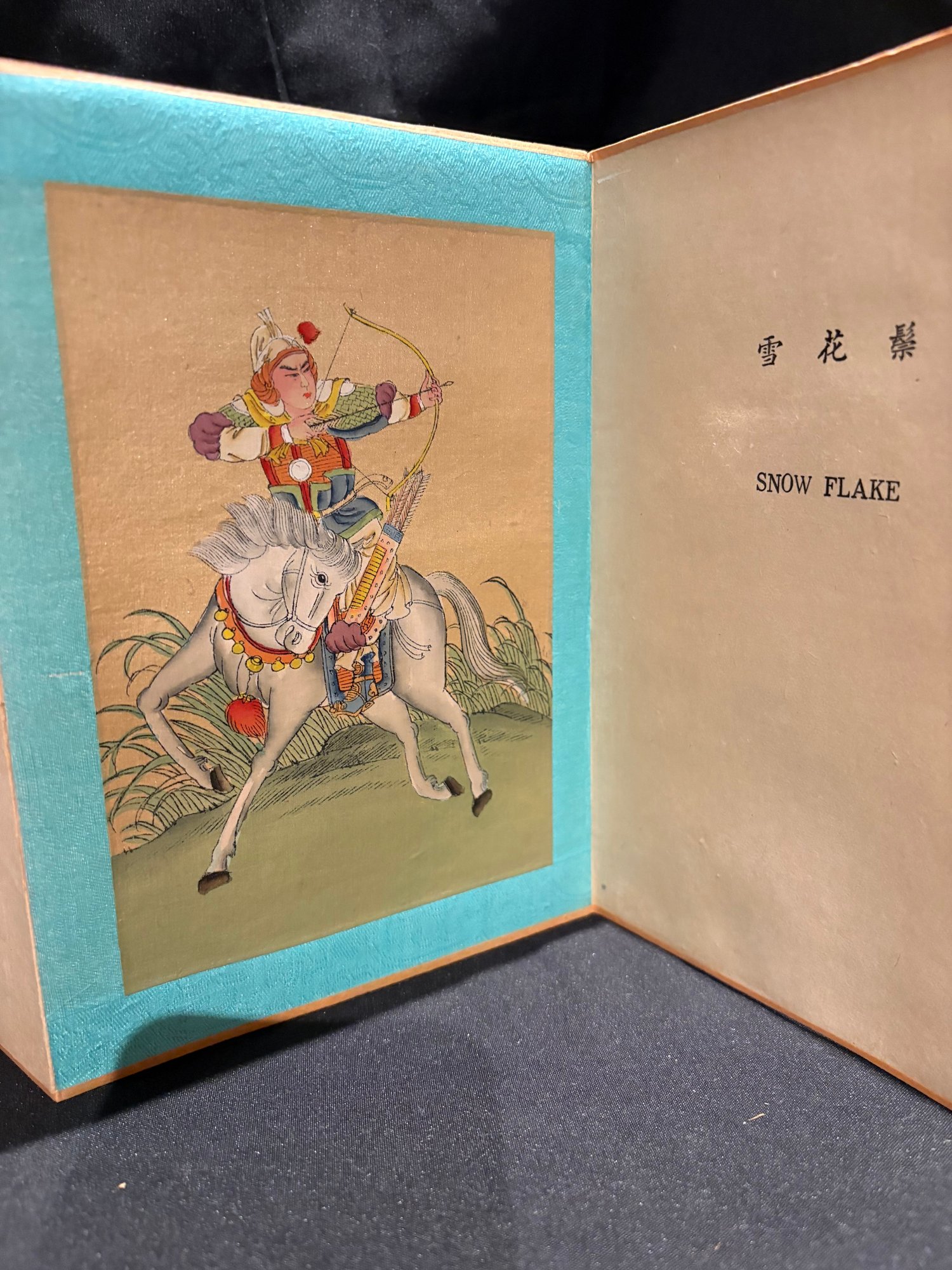 Antique hand painted Chinese. Eight Noble Steeds accordion book with silk and fabric.