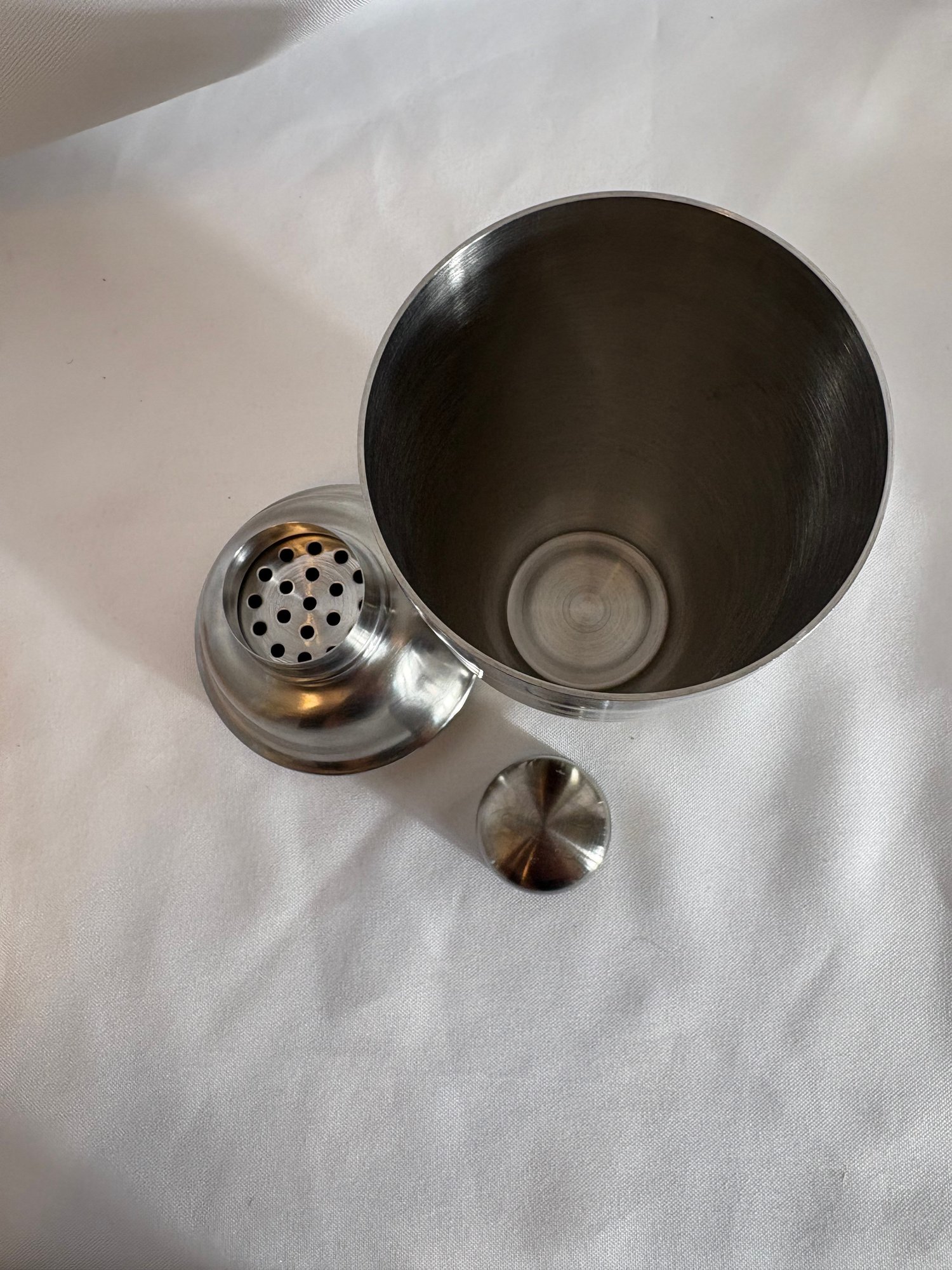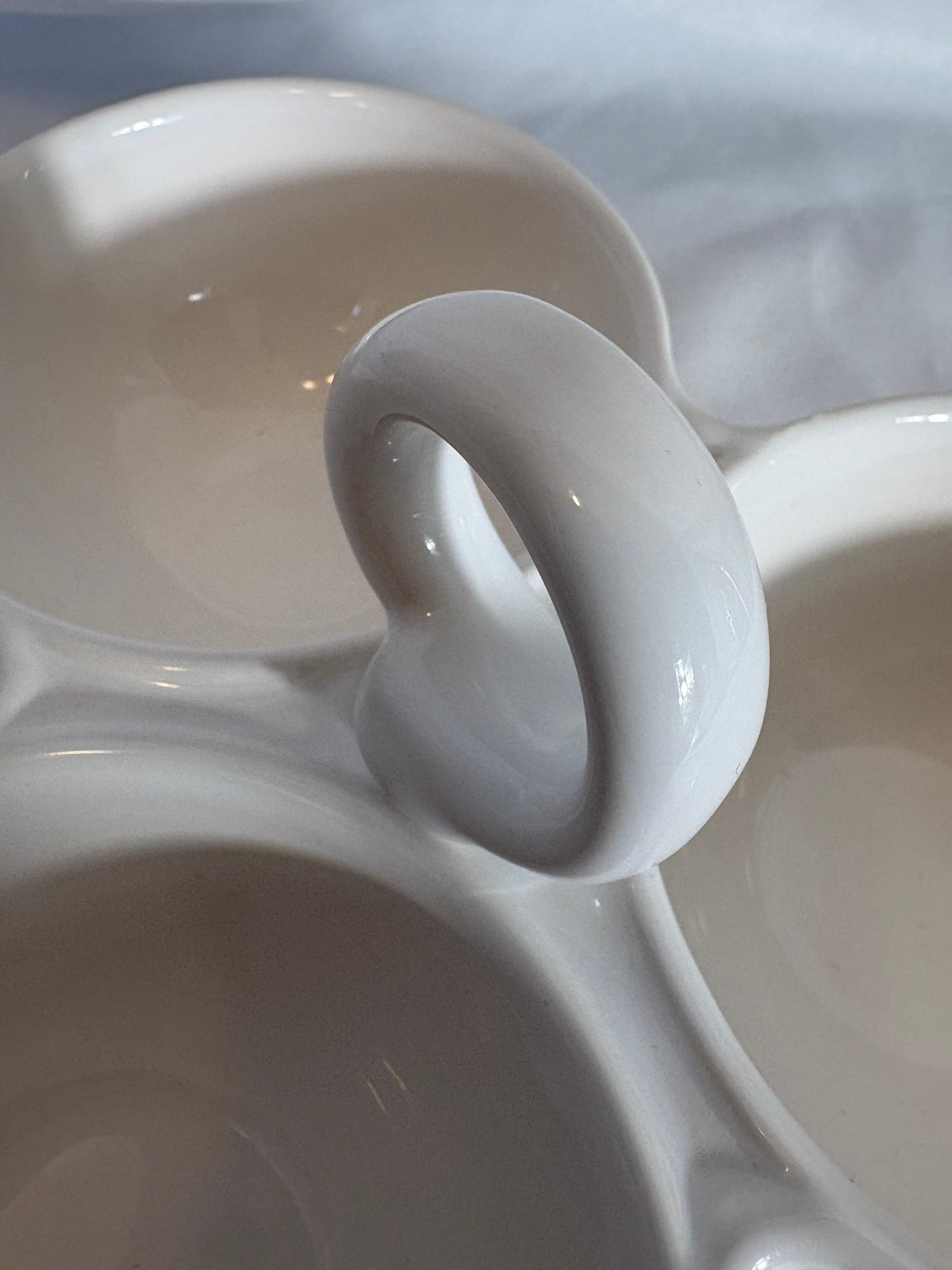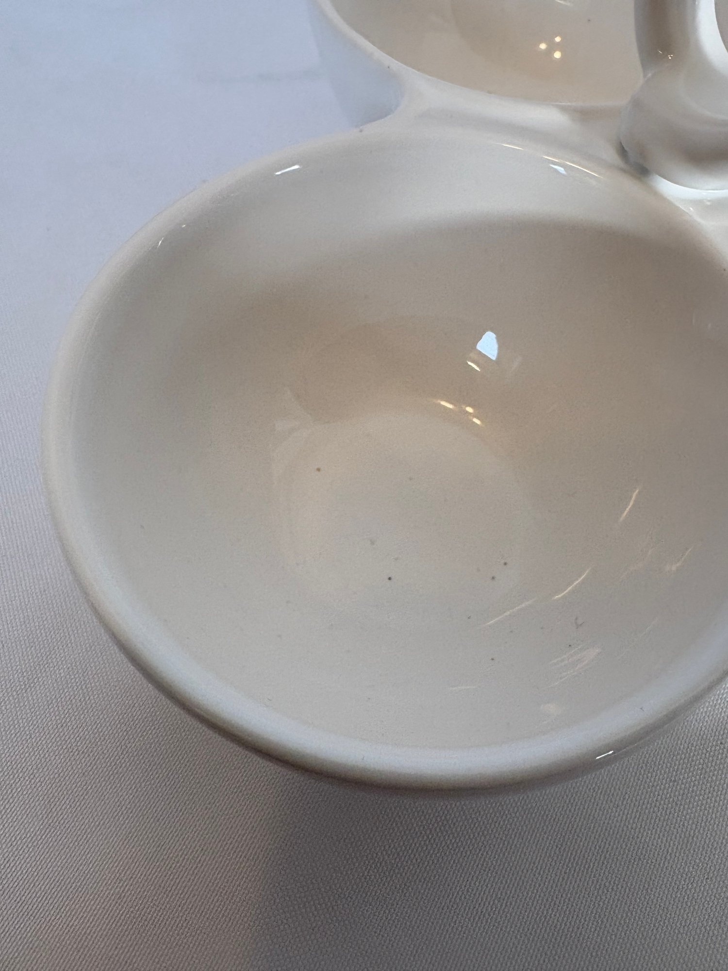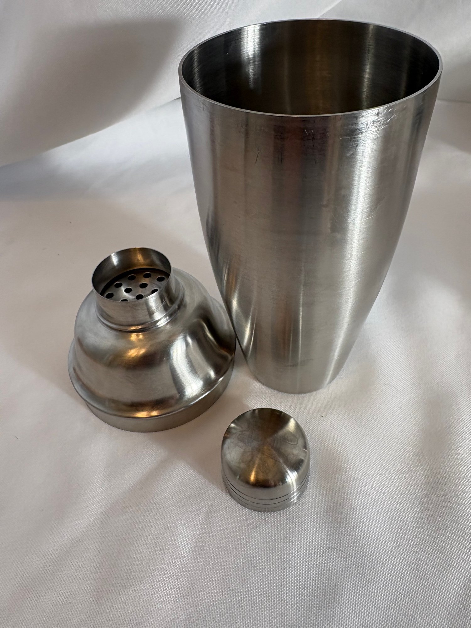 Four items there’s a Nantucket hot plate a made in Portugal white three container dip with the handle cocktail shaker and a Cuisinart chopper hand chopper
