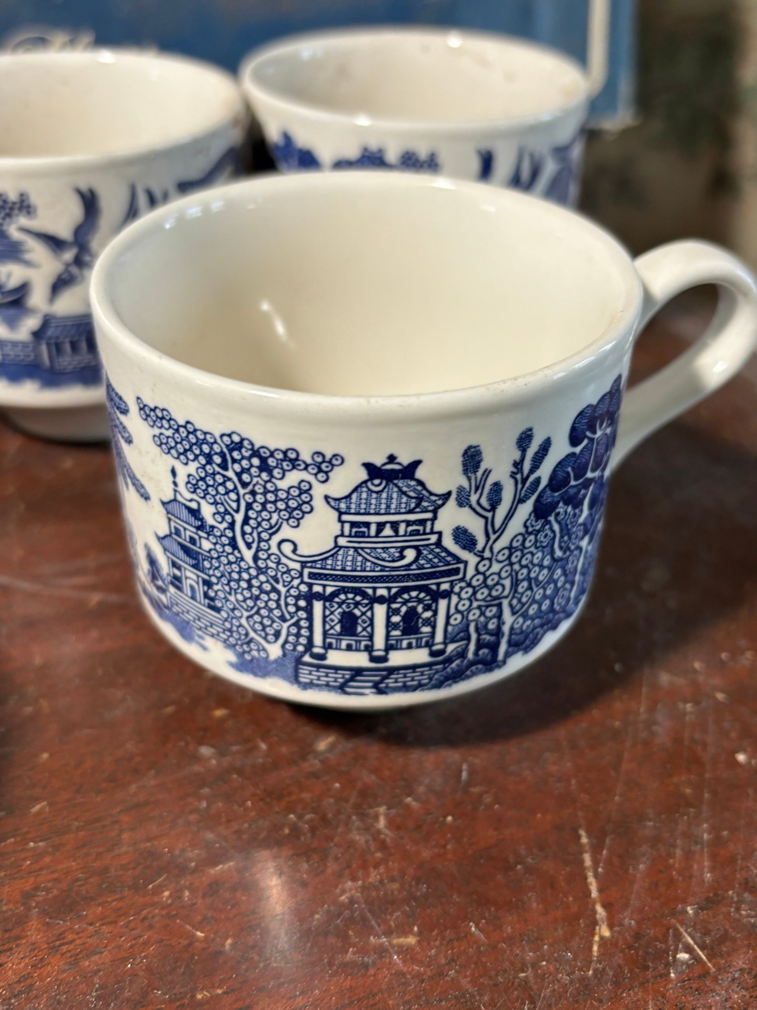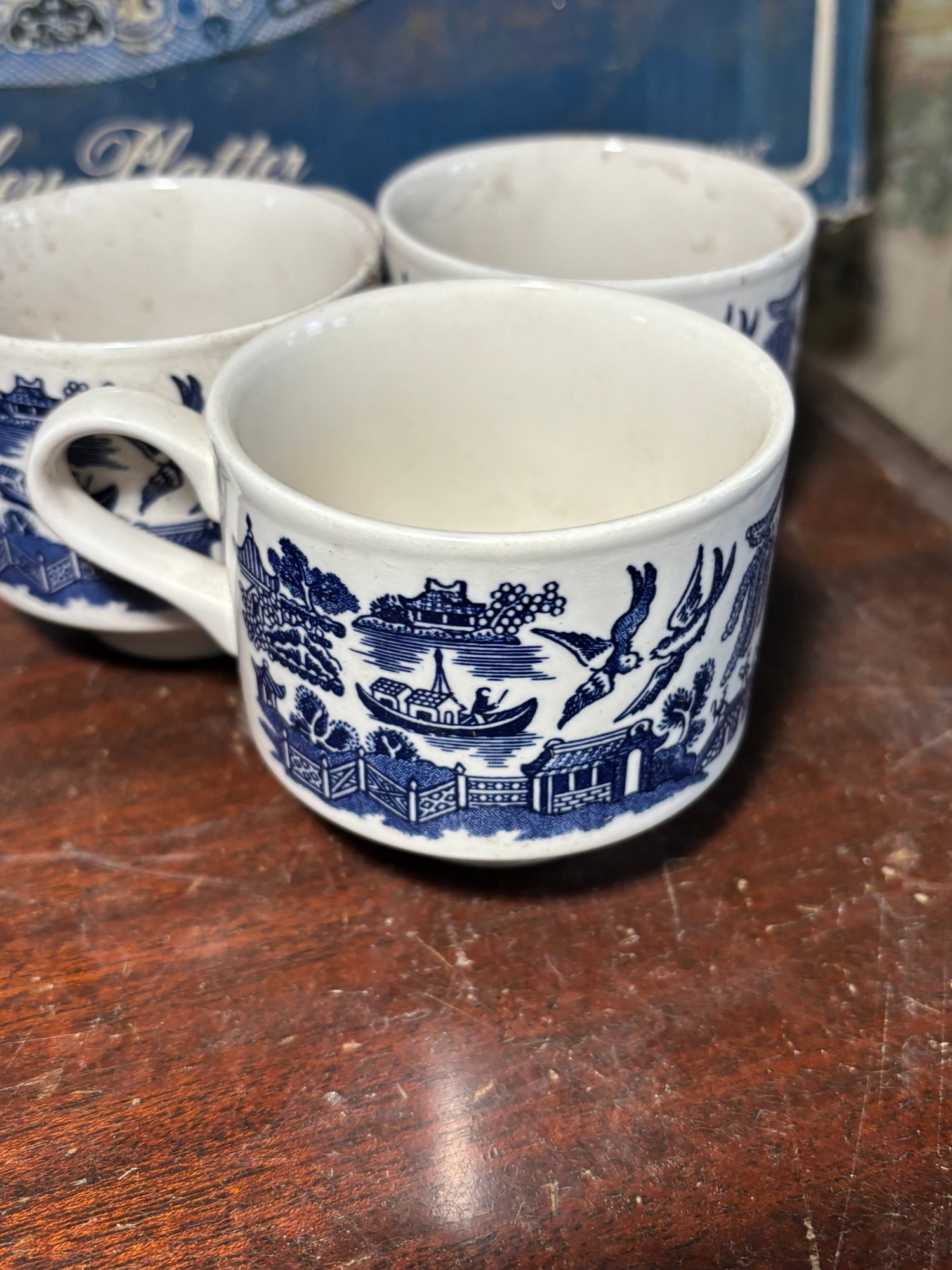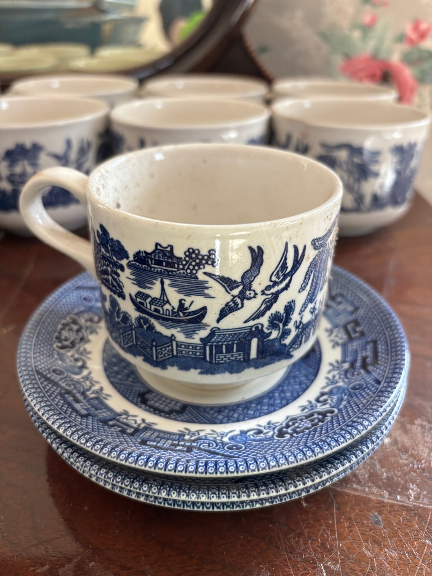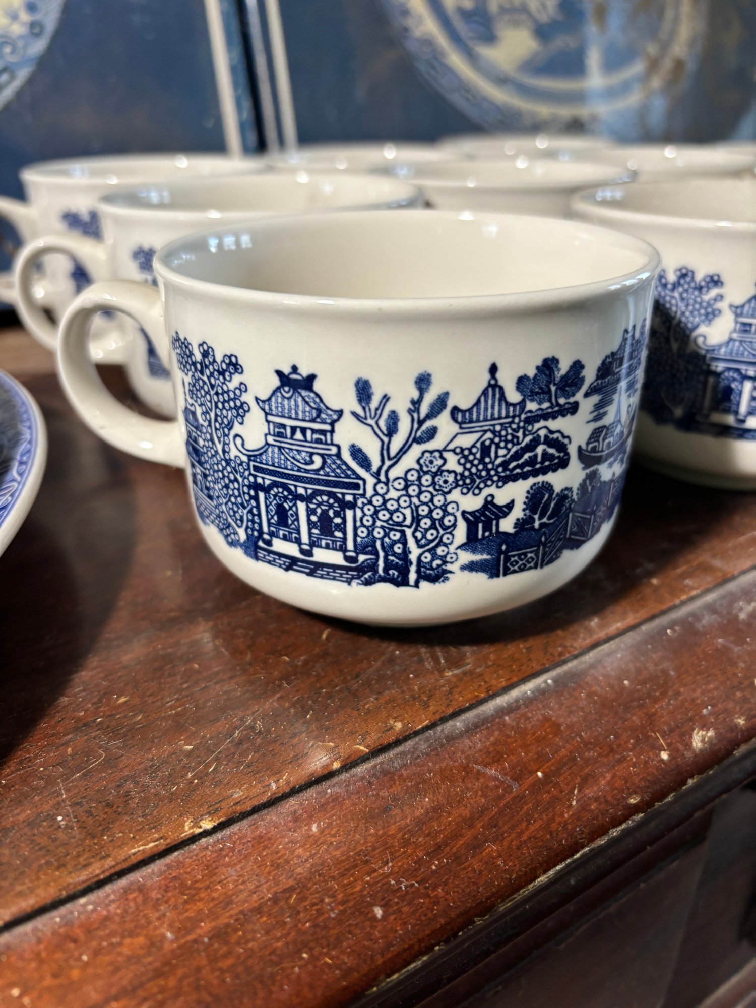 Includes 2 turkey platers, a large plate, 3 dinner plates, 3 saucers, 11 mugs, 3 cups
