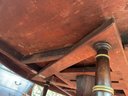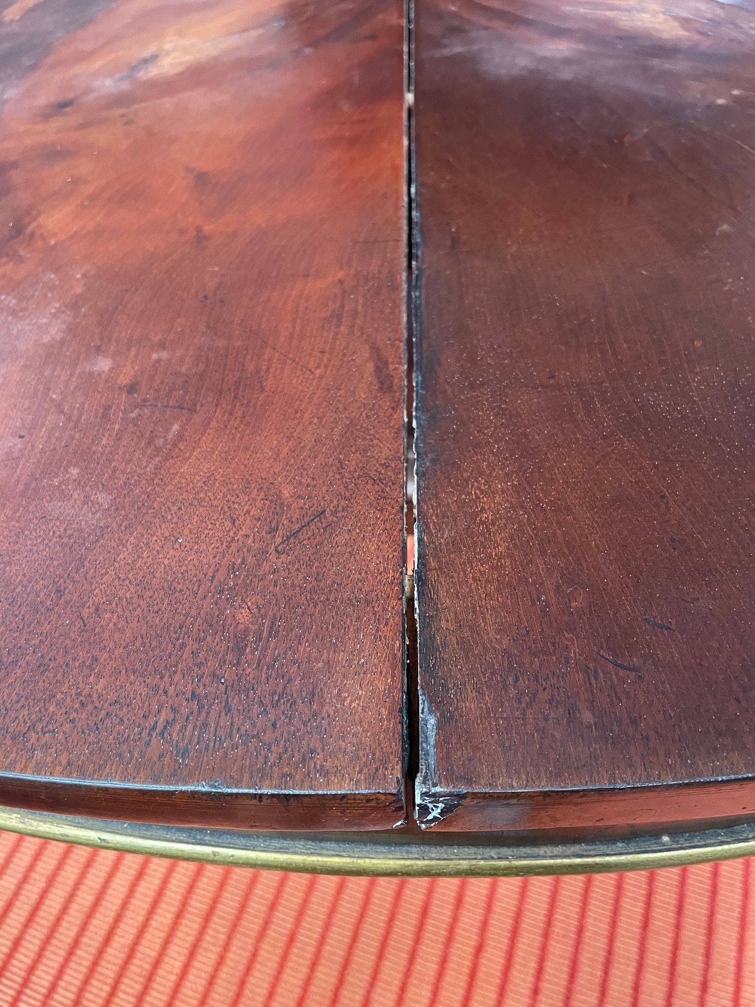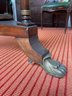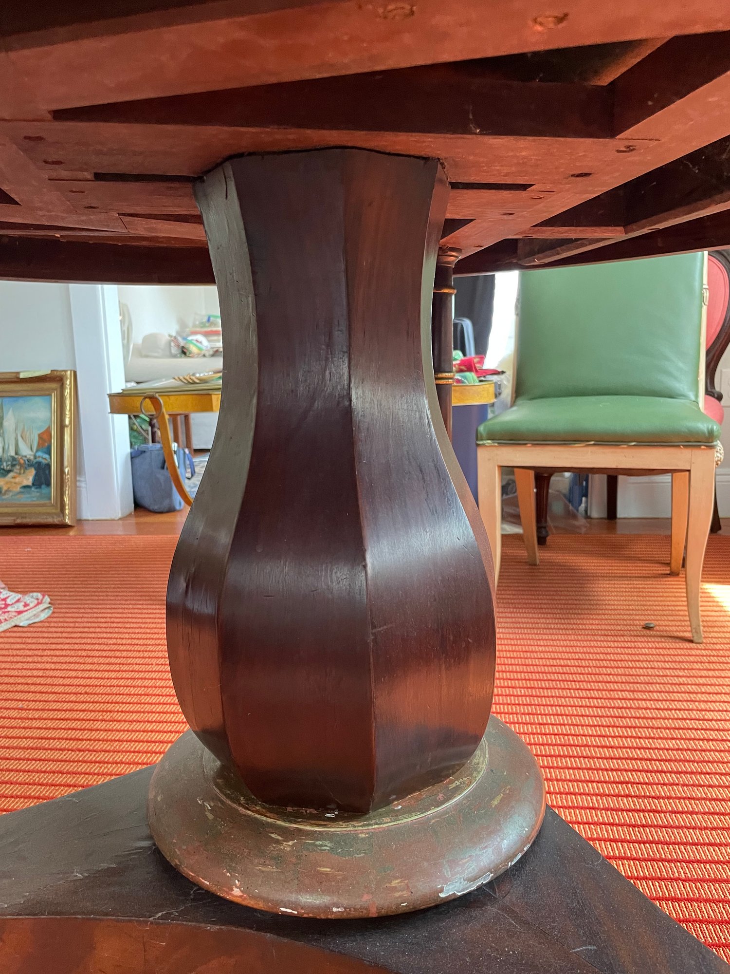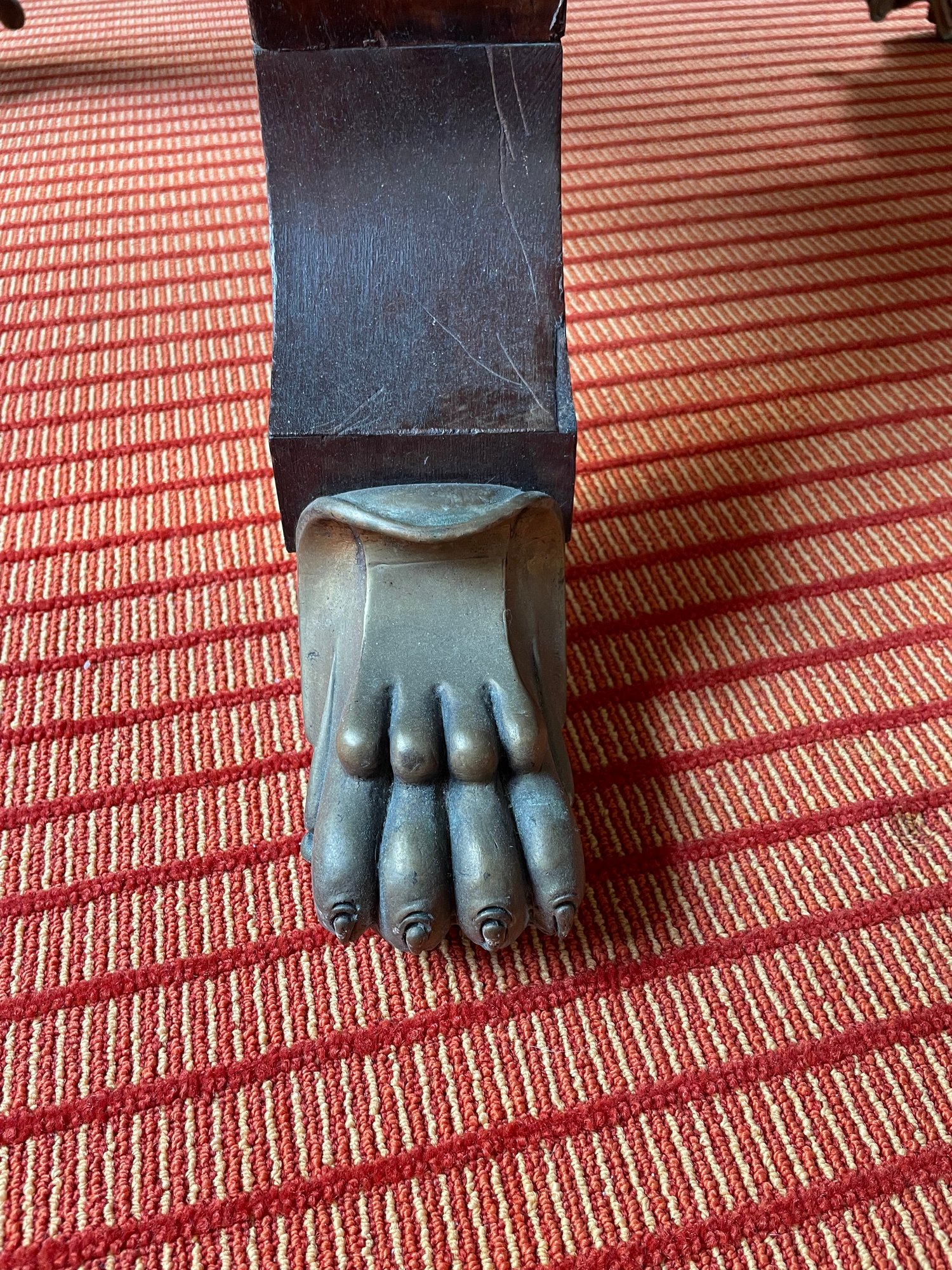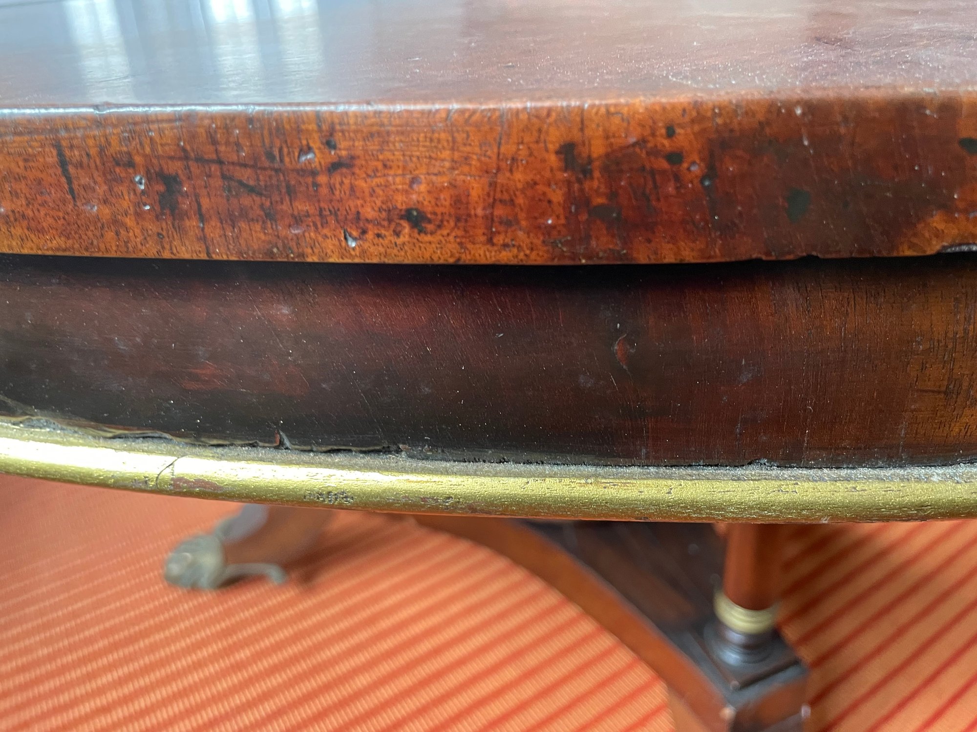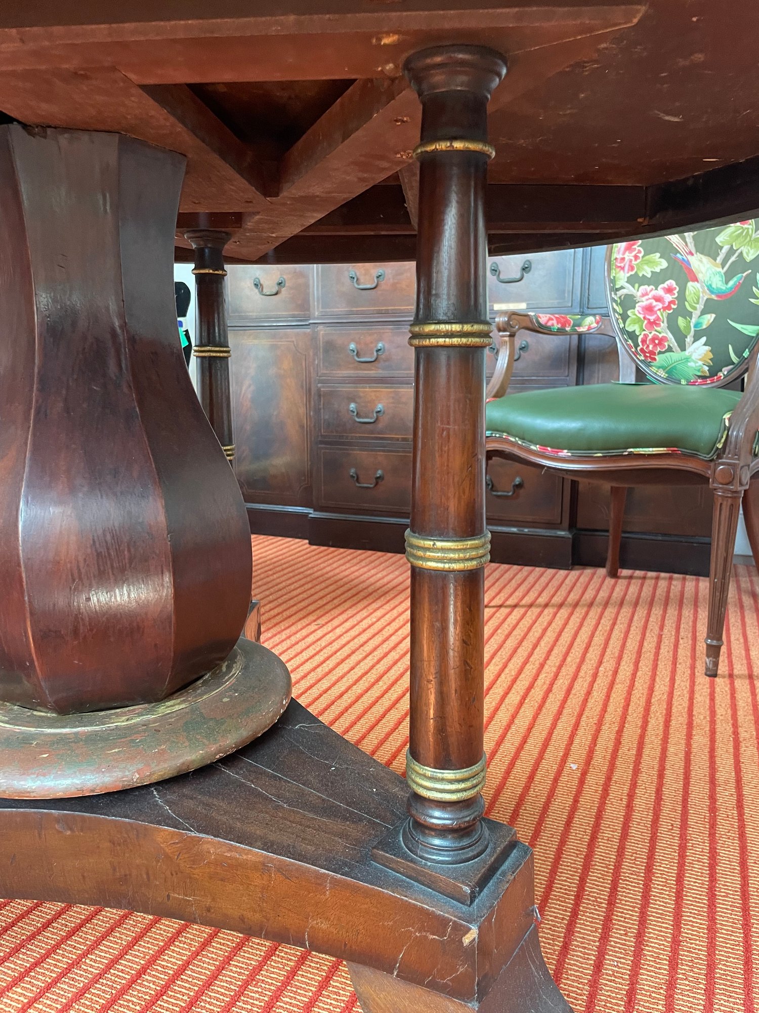 Pedestal table, 3 legs on wheels, solid brass claw feet