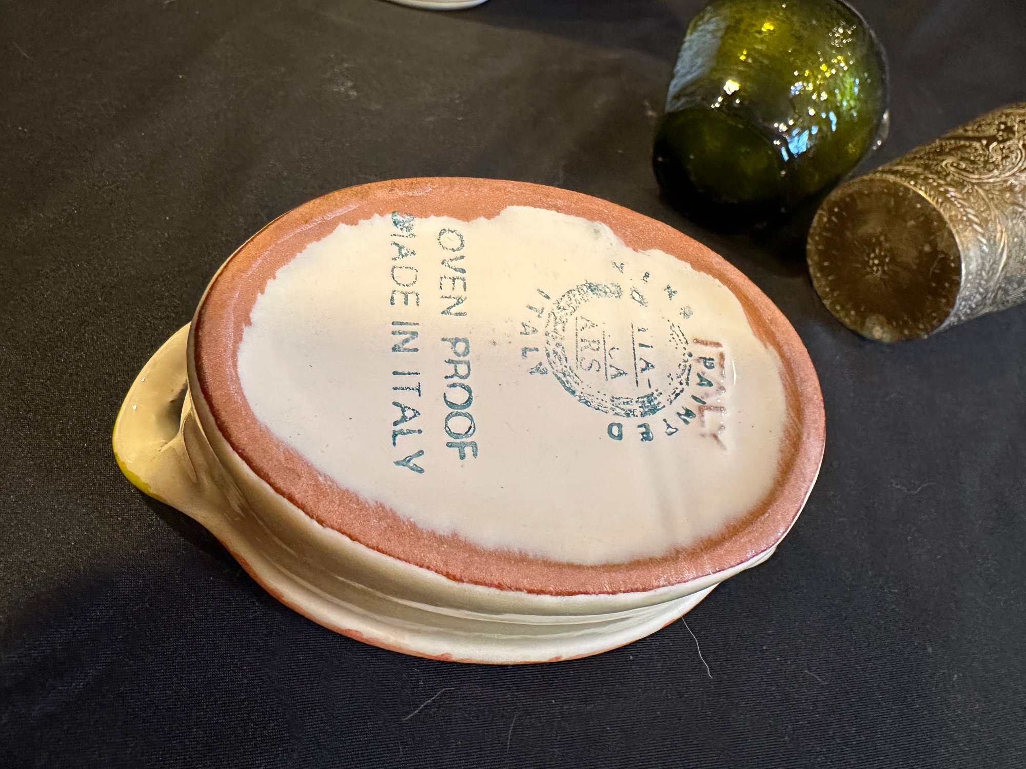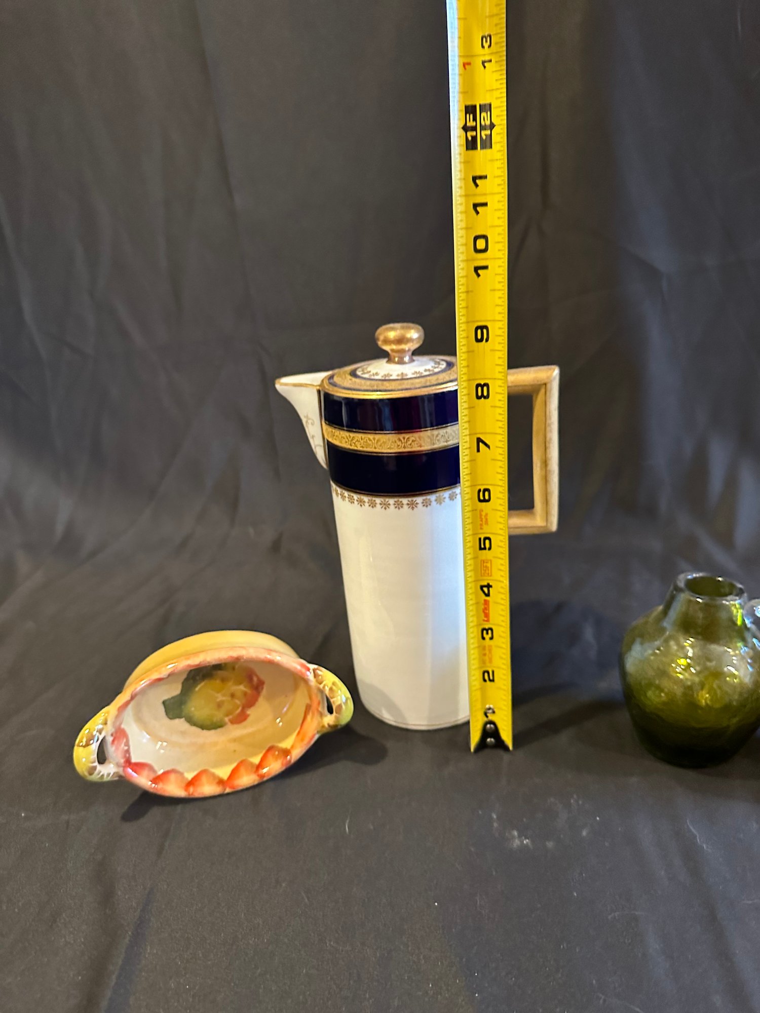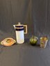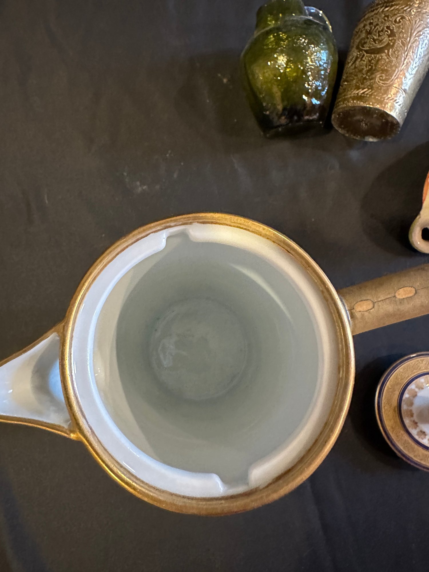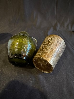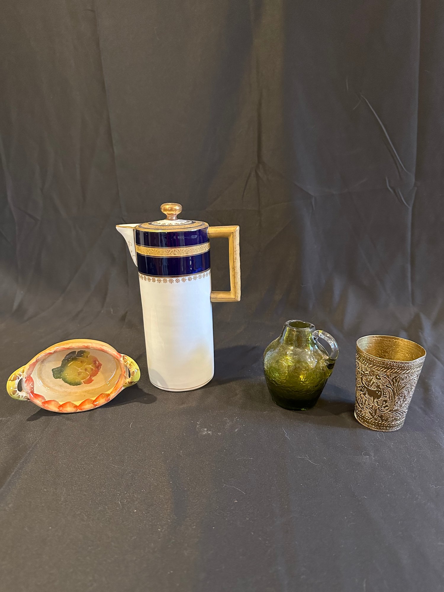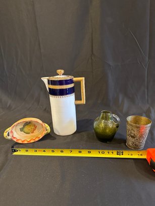 Coffee Pot Italian Dish Green Glass Brass Cup