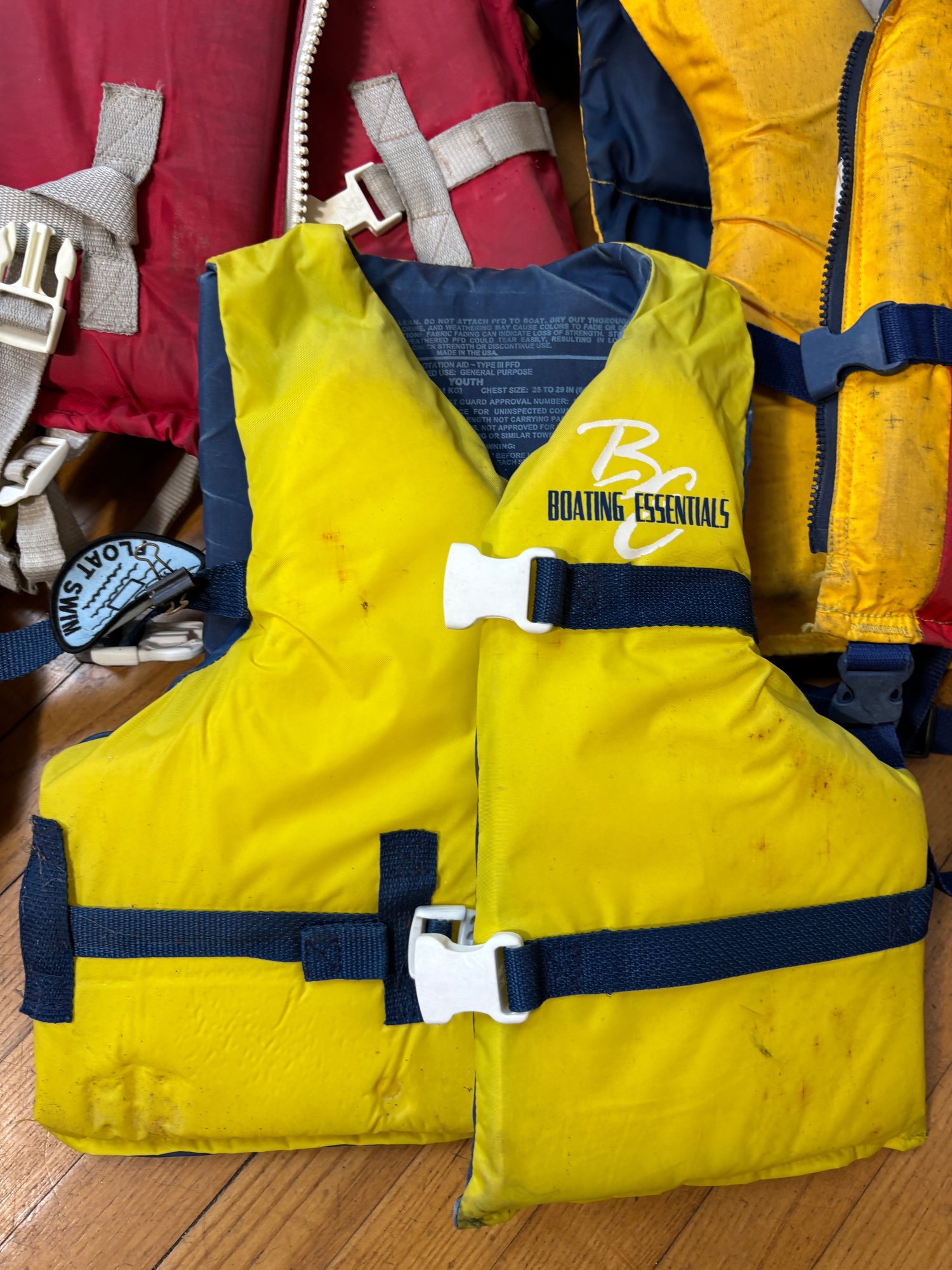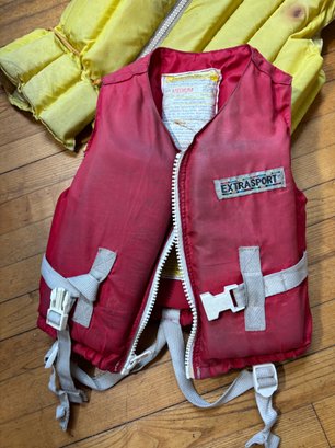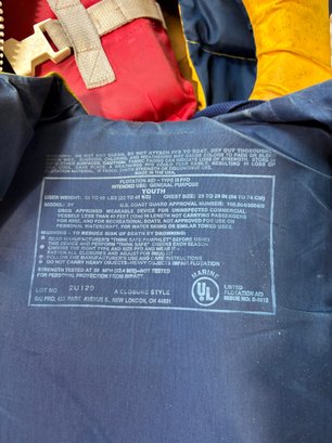 Includes 8 life jackets ranging from youth to adult sized, see photos.