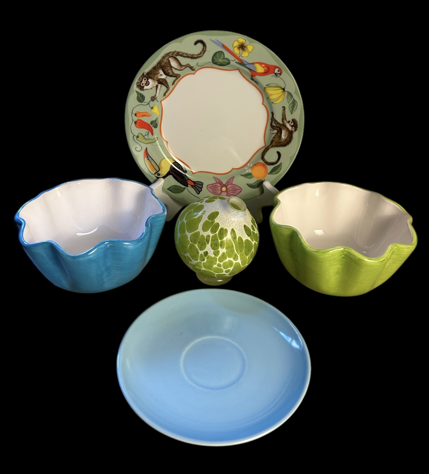 Colorful Dish Set Featuring Dotted Vase & Cooks Club Dishes (G)