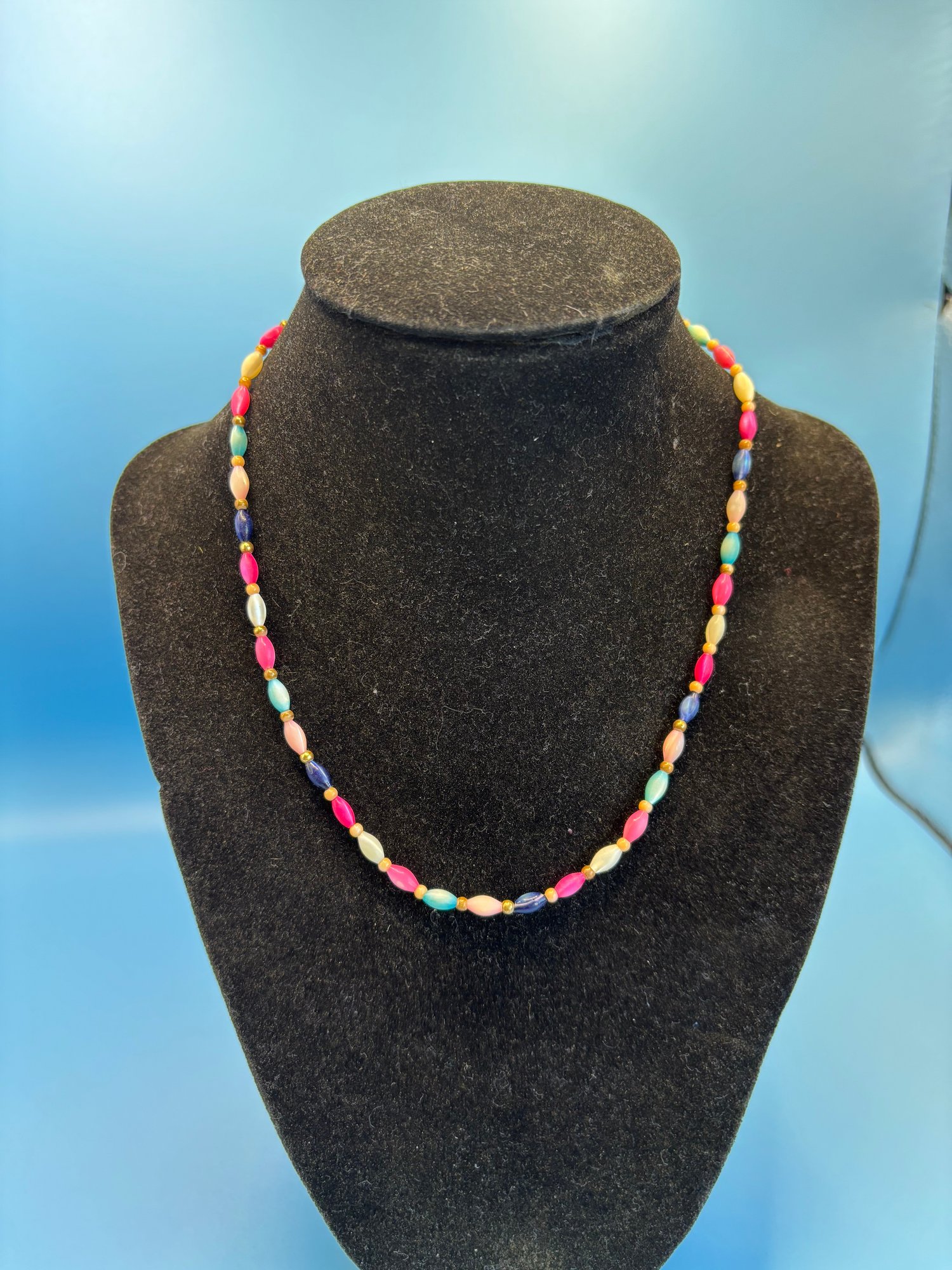 Beaded necklace with barrel clasp