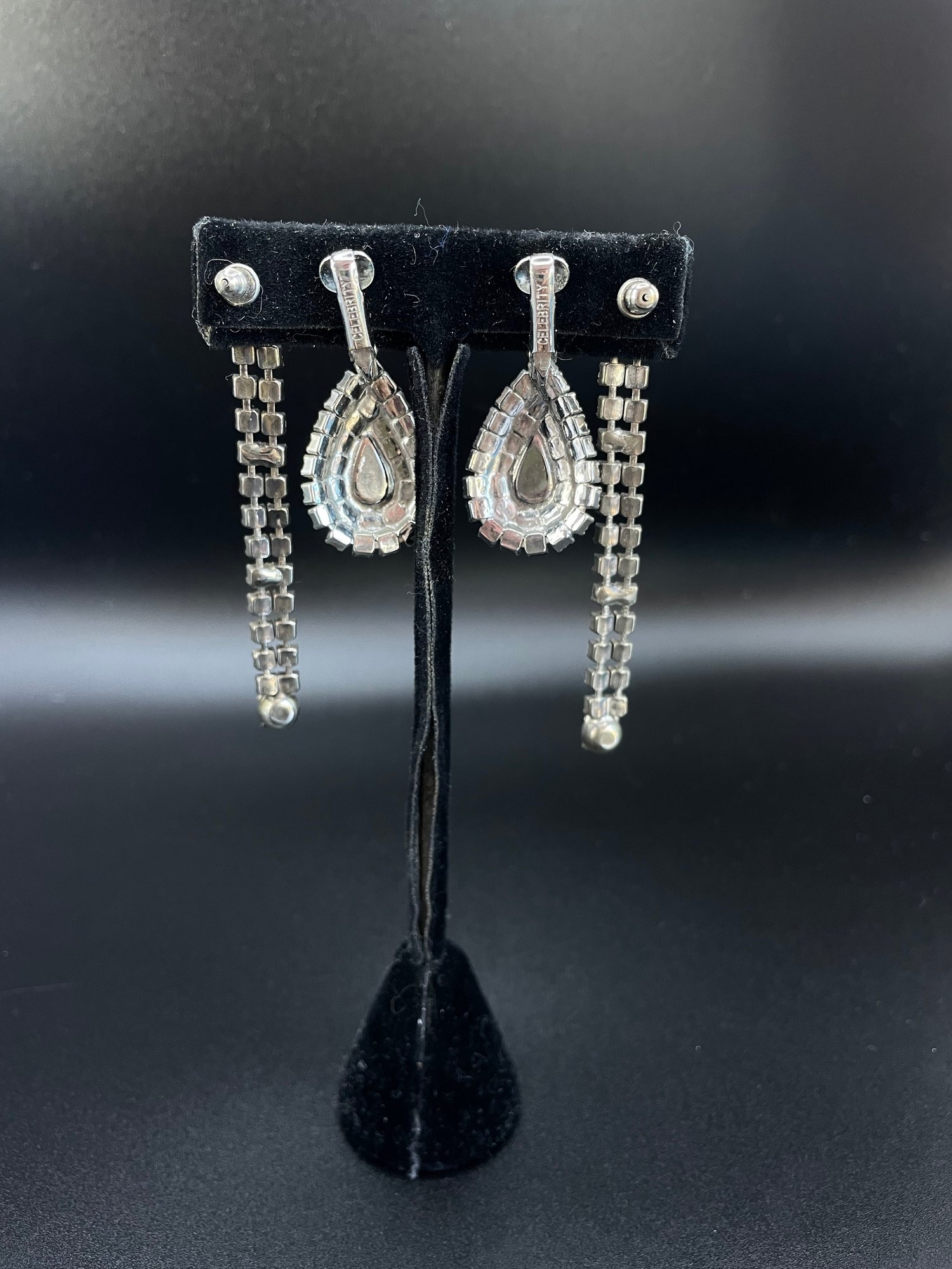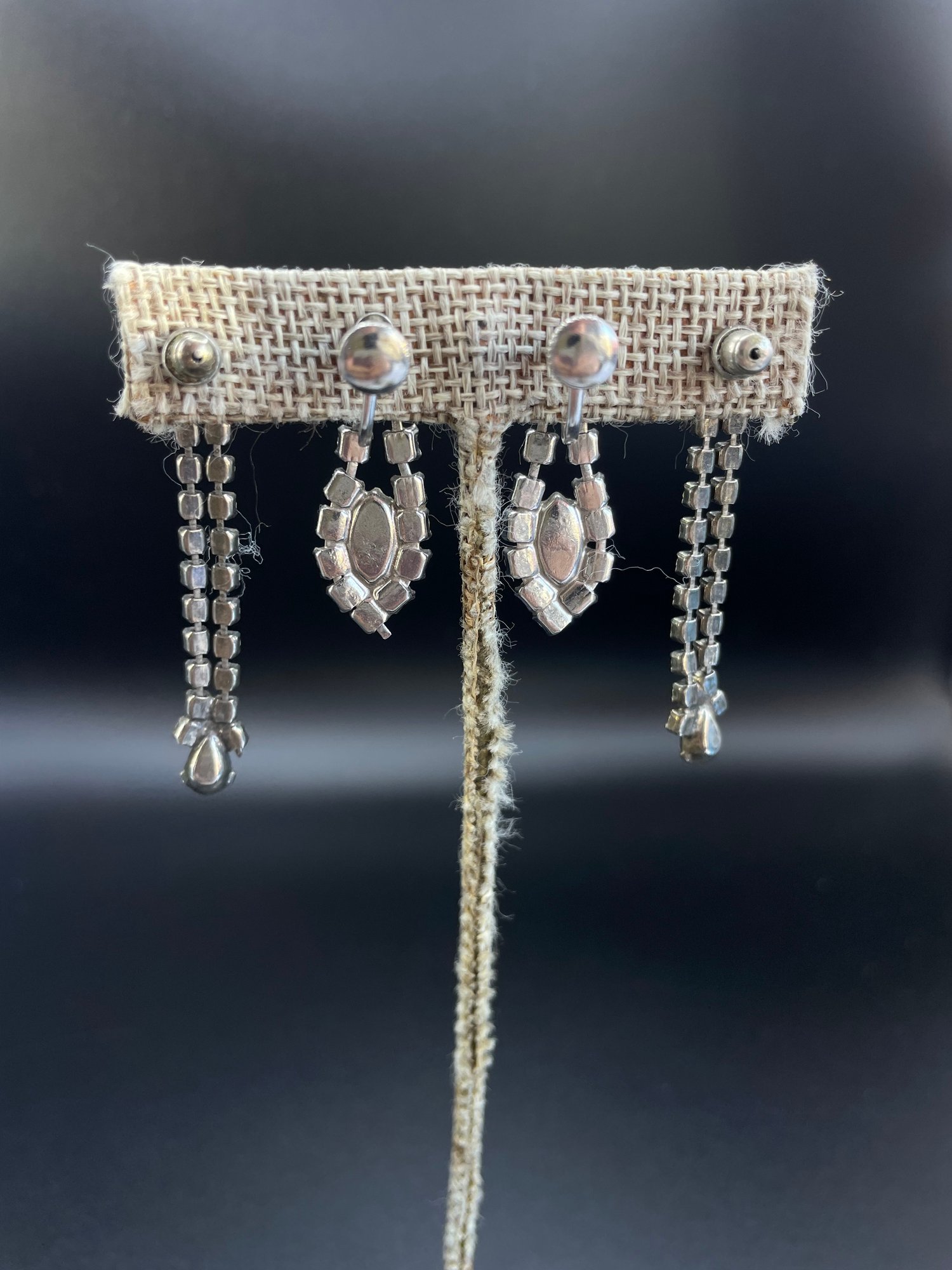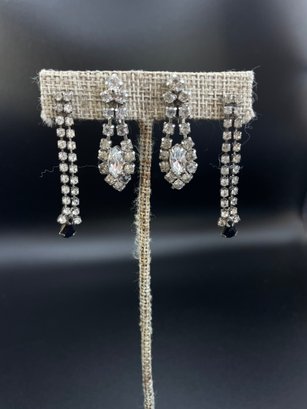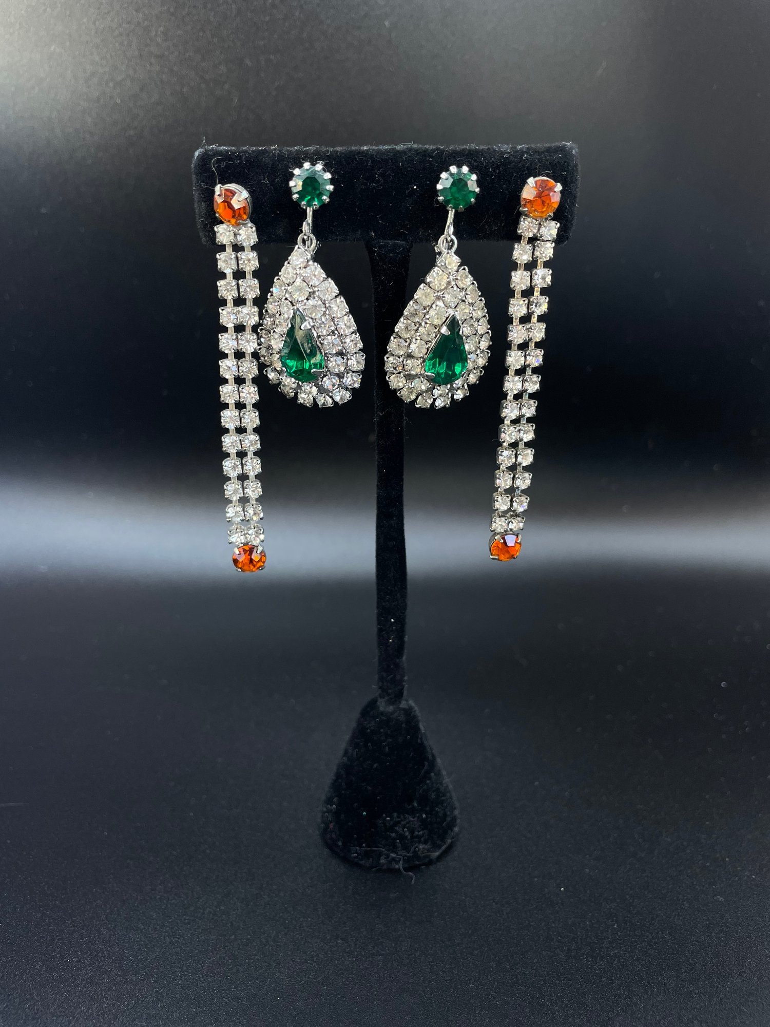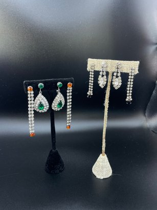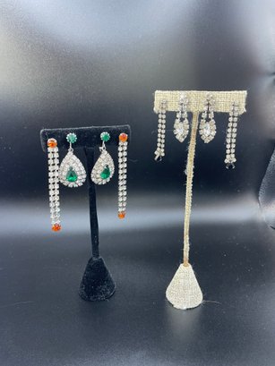 Four pairs of costume rhinestone earrings - two are clip ons