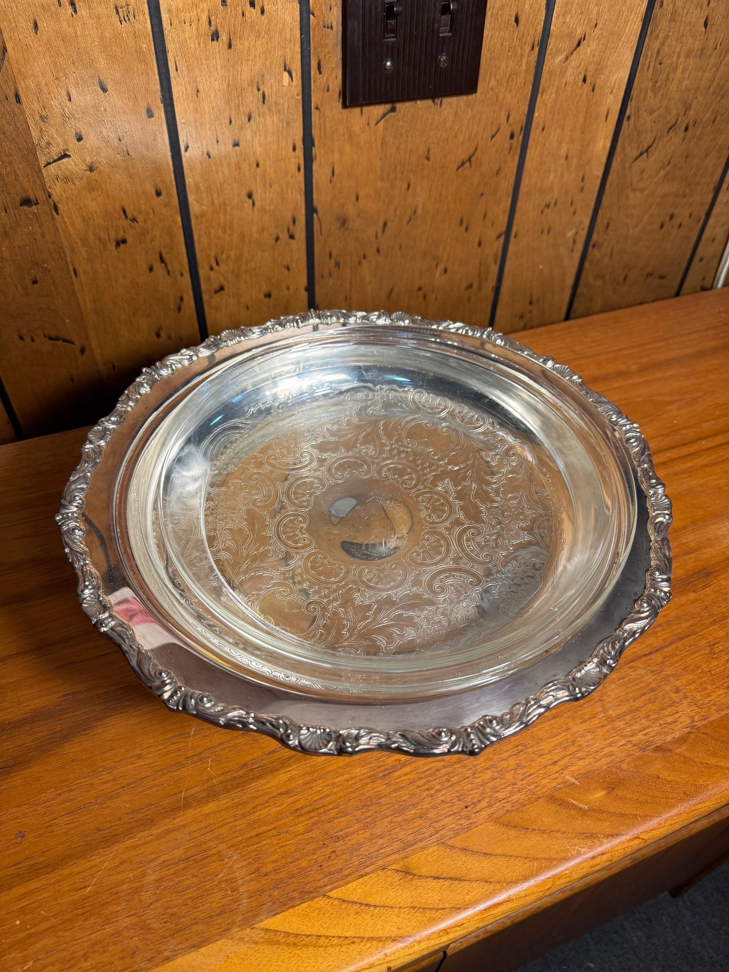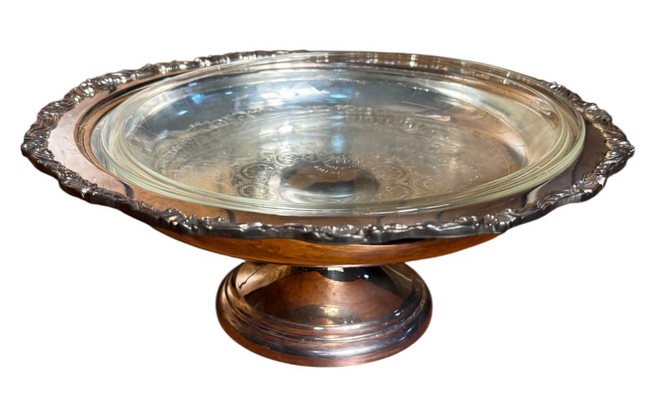silver plated compote with glass pyrex insert