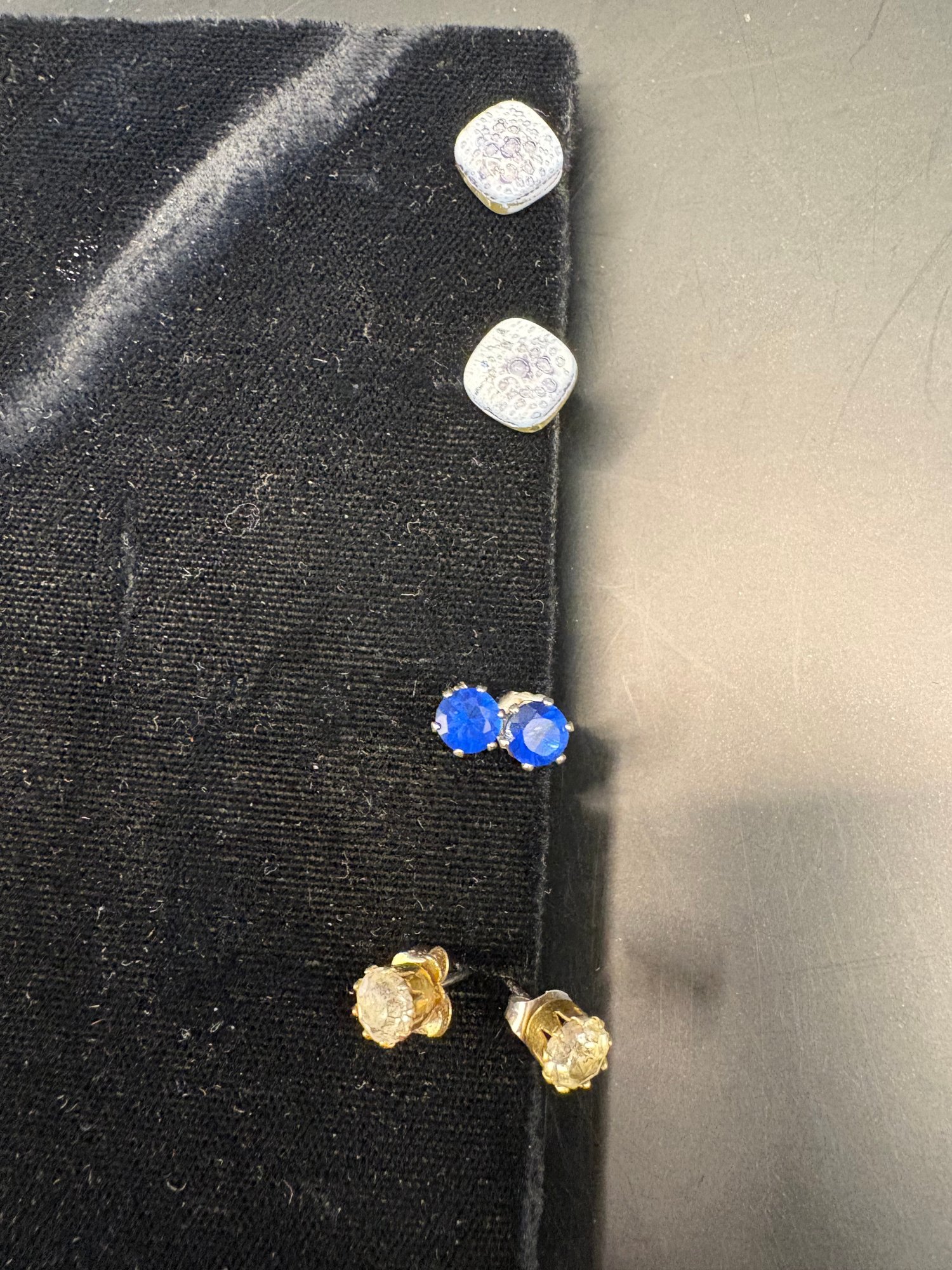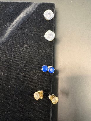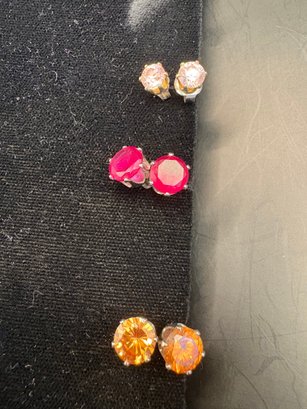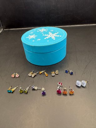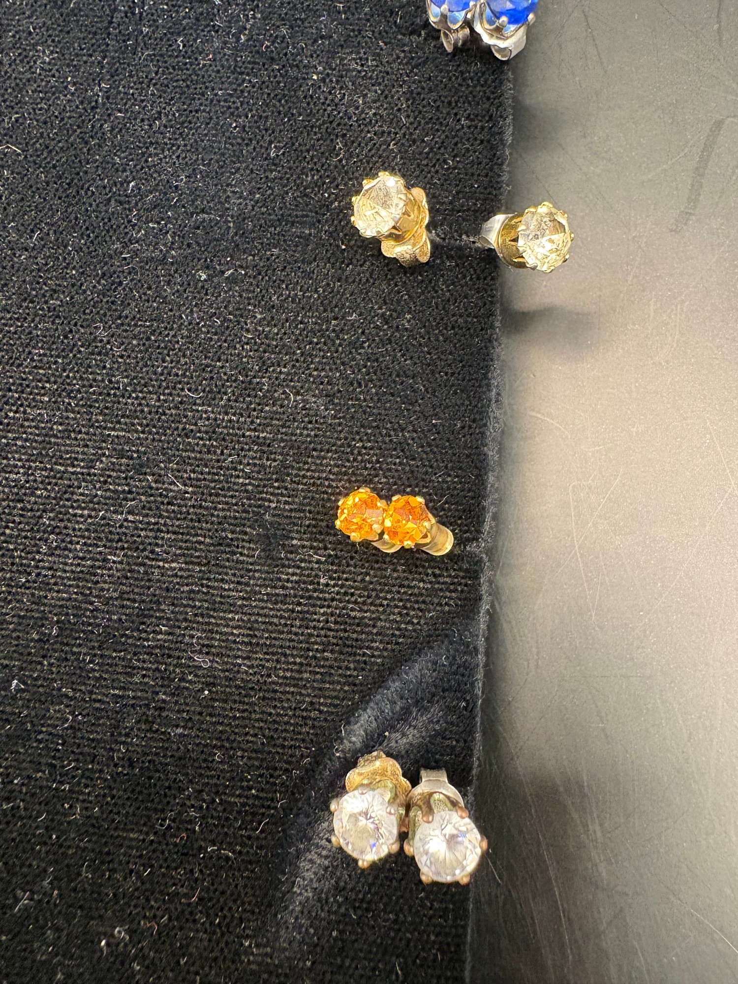 11 pairs of cubic zirconia, colorful, earrings, studs, some larger some smaller stainless steel posts